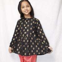 Kiddopanti brings to you the latest fashion clothes for your smart dressing young ones. These 3/4th Sleeve Printed Kurta Dress with Tassel Yoke & Legging Set is an ideal selection for your styl... -