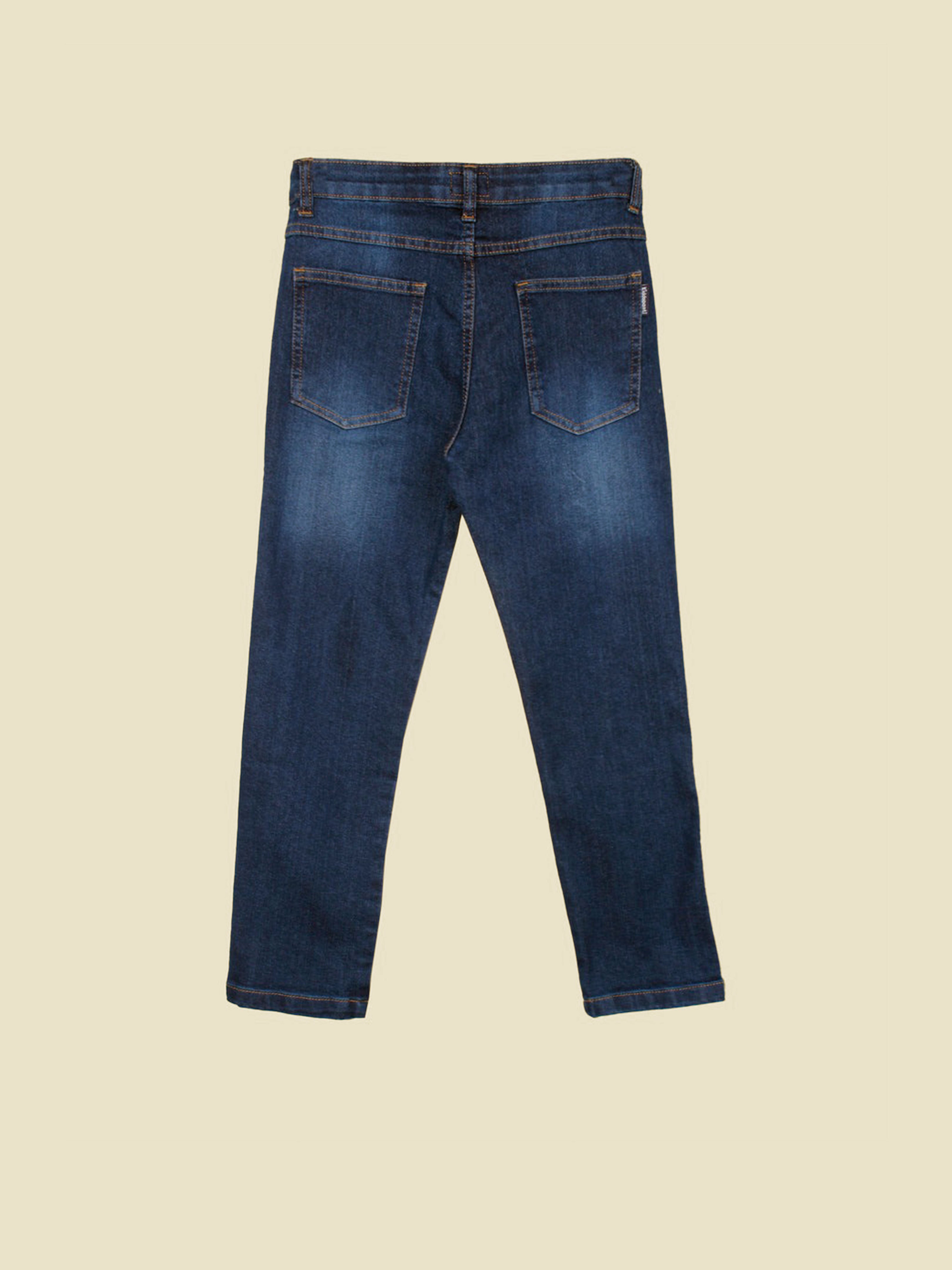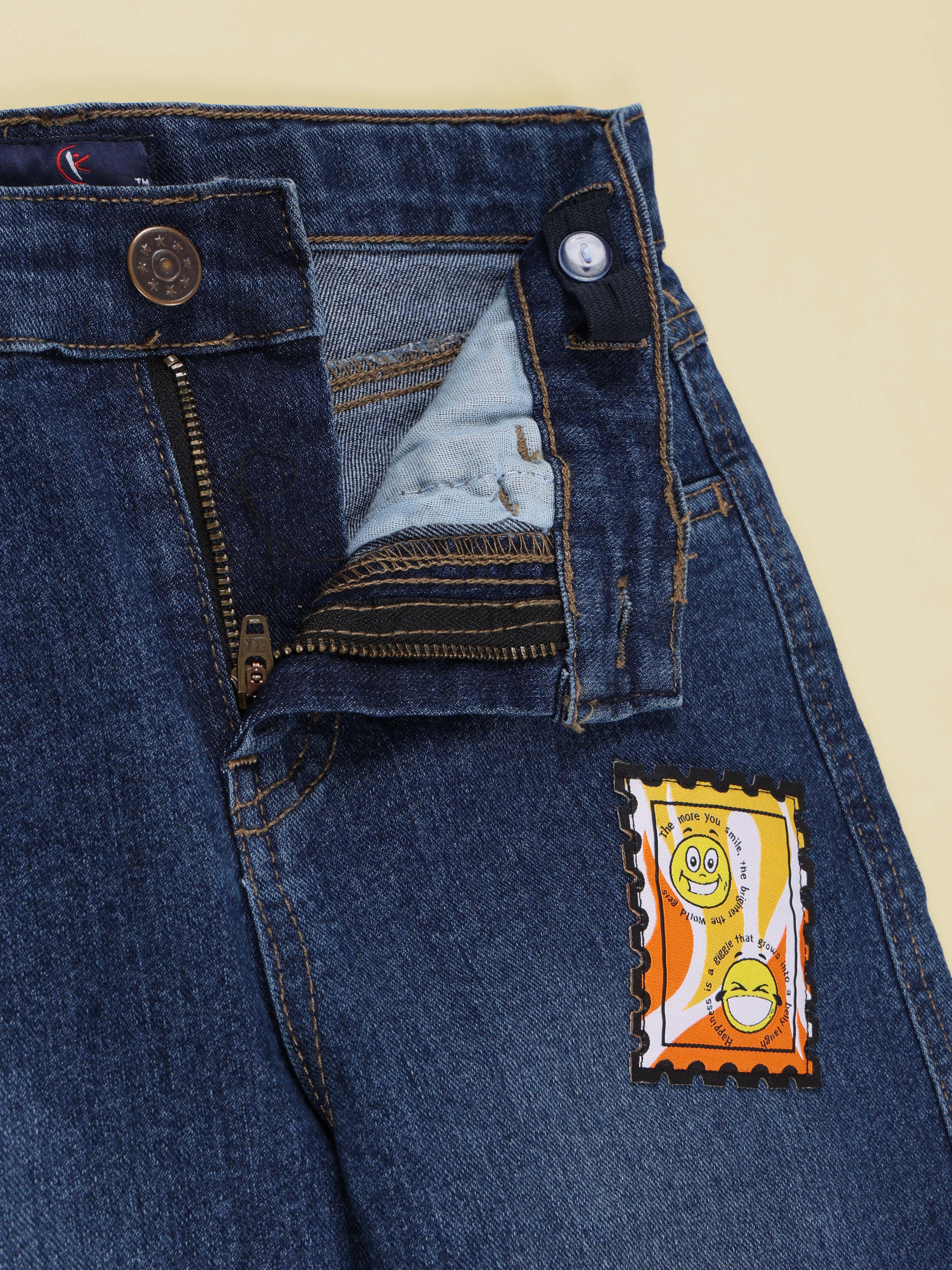 Kiddopanti Denim Woven Smiley Badge Regular Fit Denim Pant