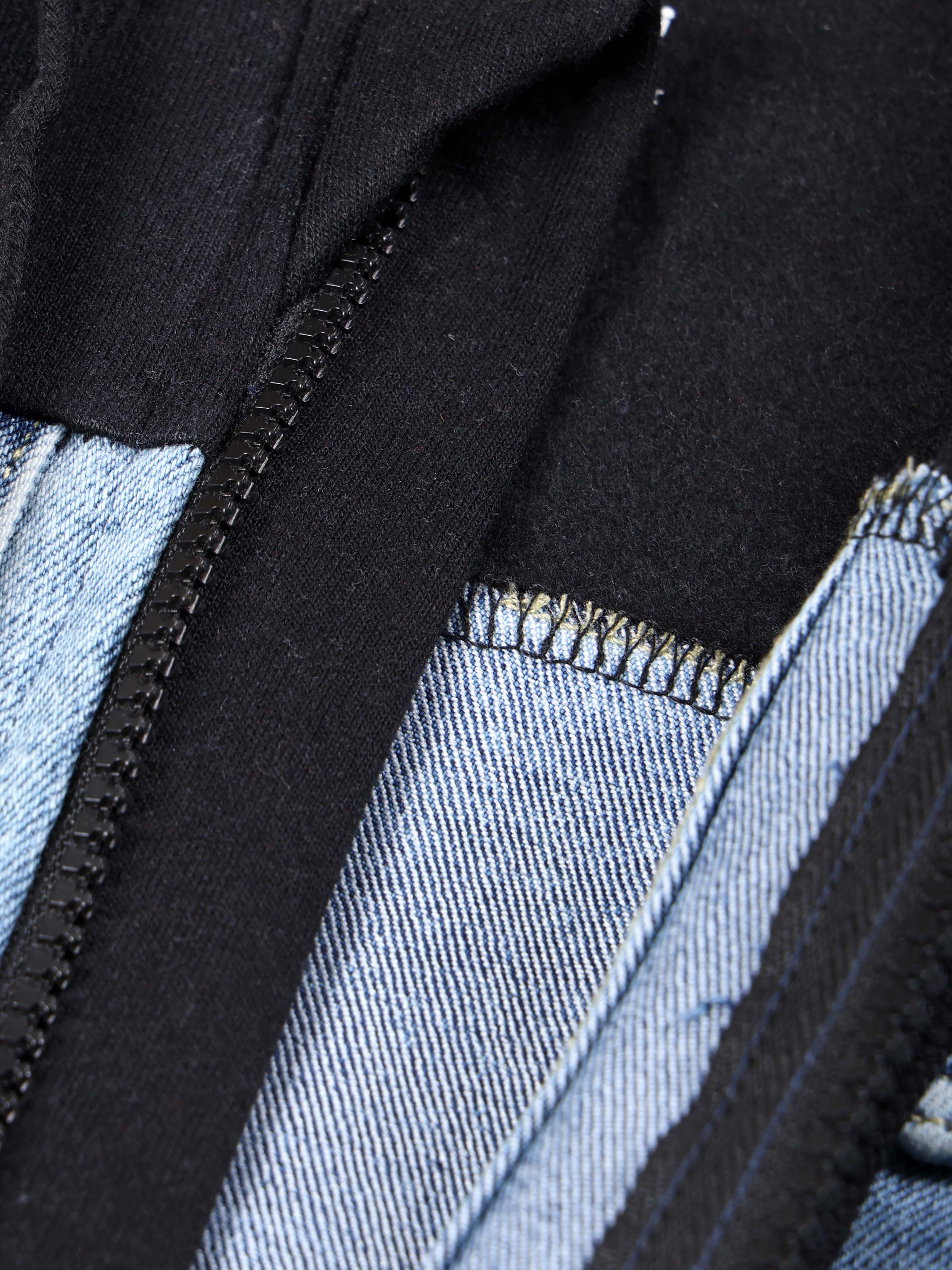Made from Cotton-Poly Fleece blend with Denim panel for a unique look