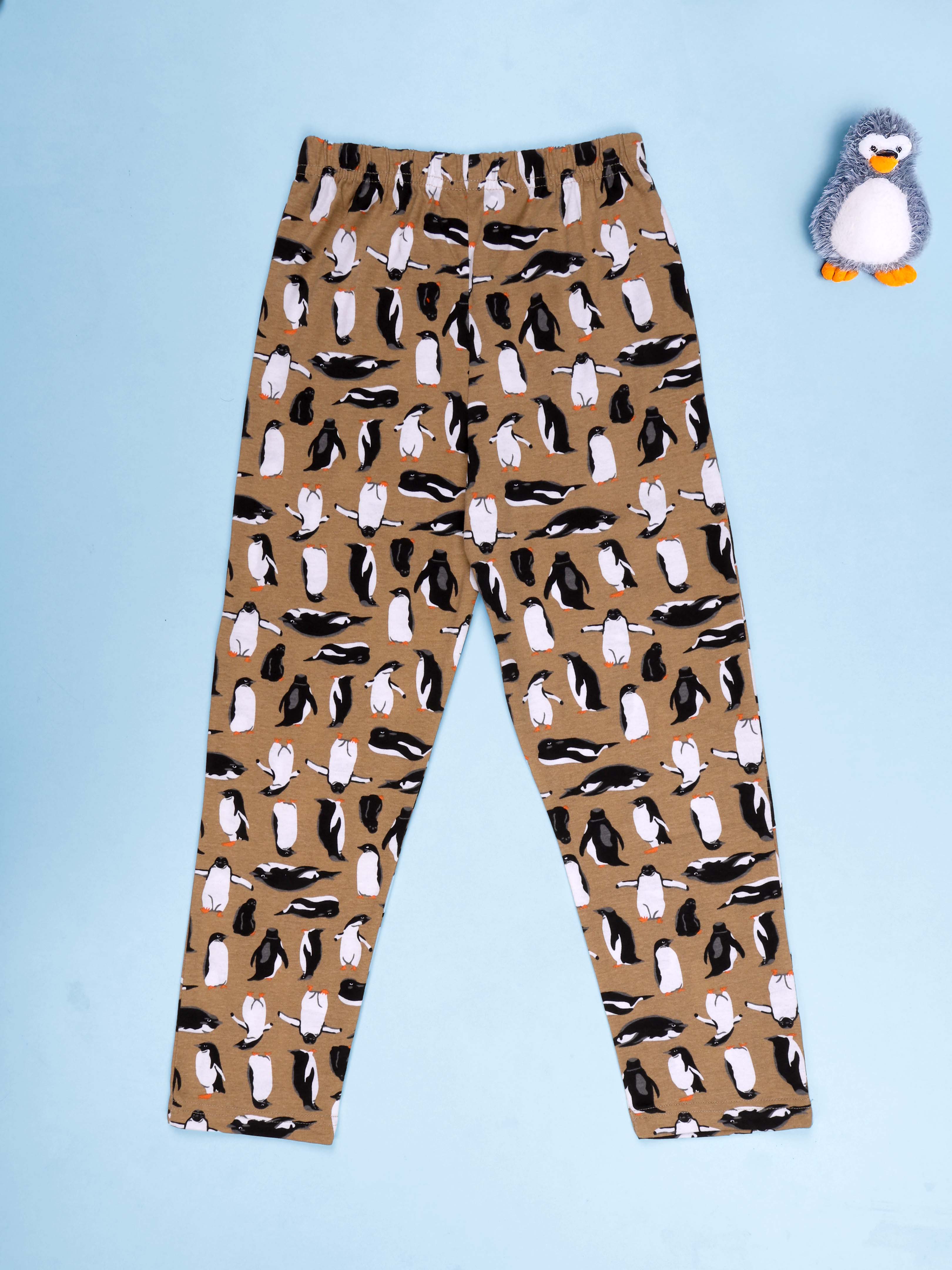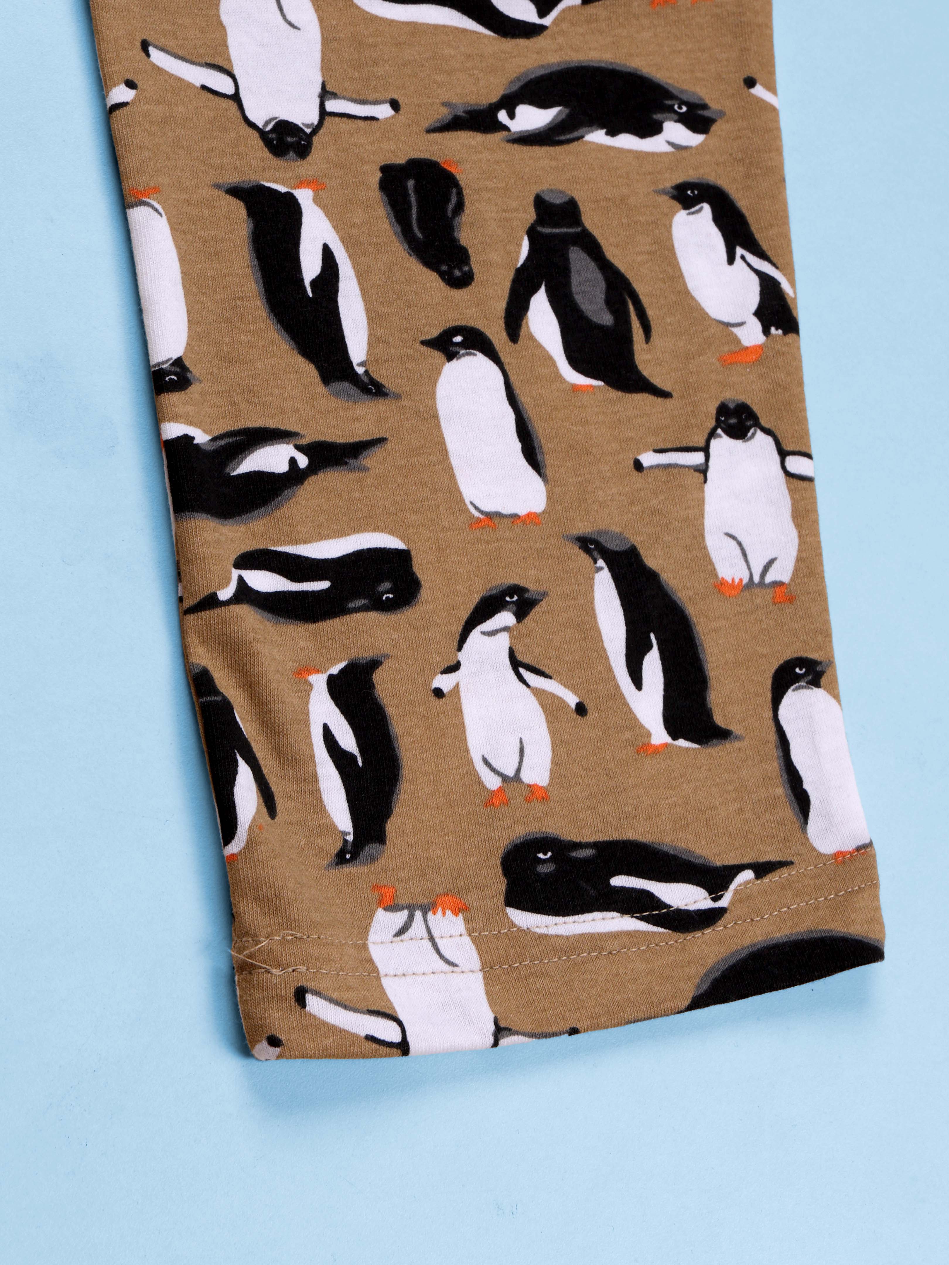Kiddopanti brings to you the latest fashion clothes for your smart dressing young ones. This AOP penguin printed Pyjama in Khaki Color is ideal selection for your style icon this season.