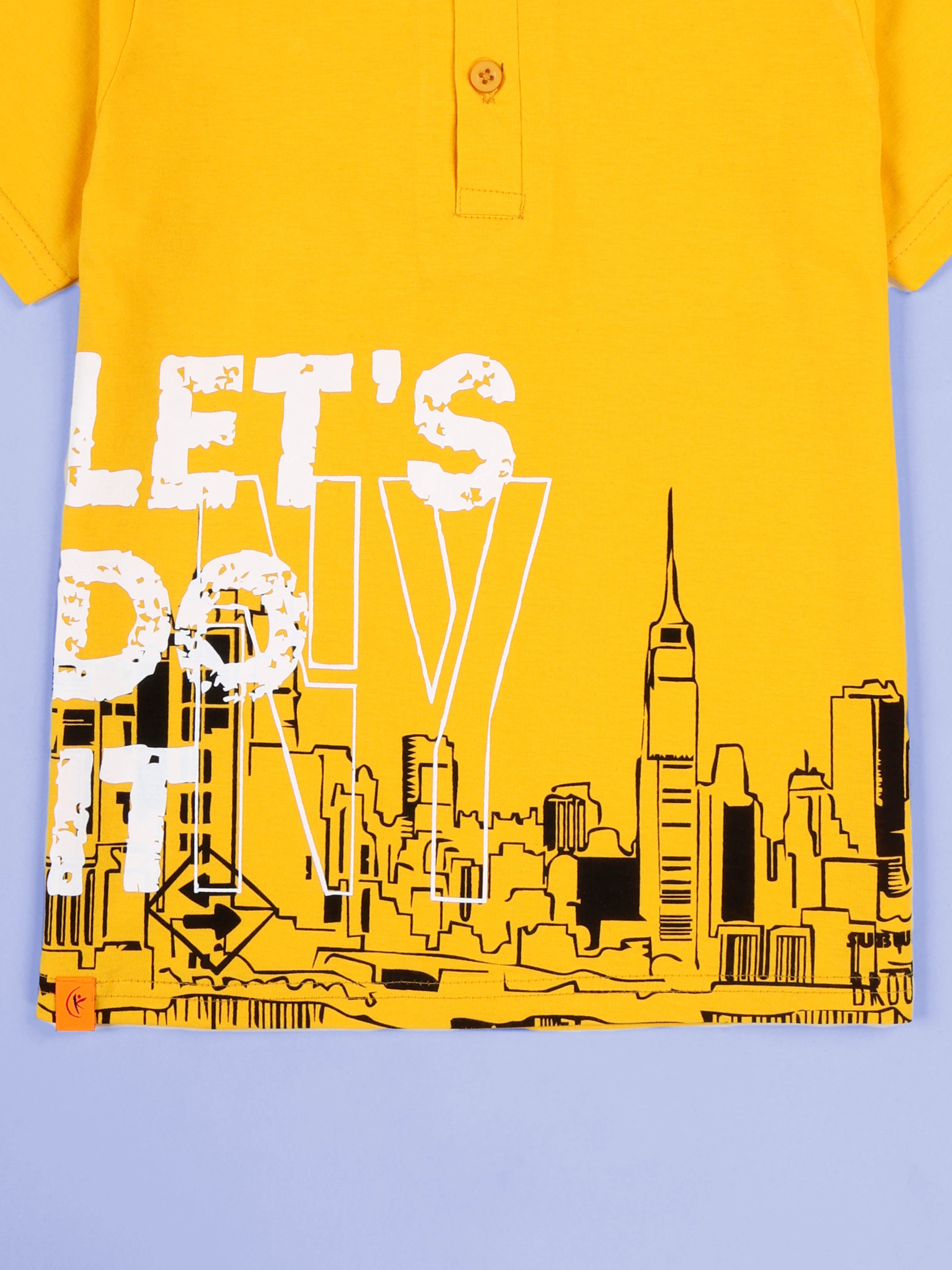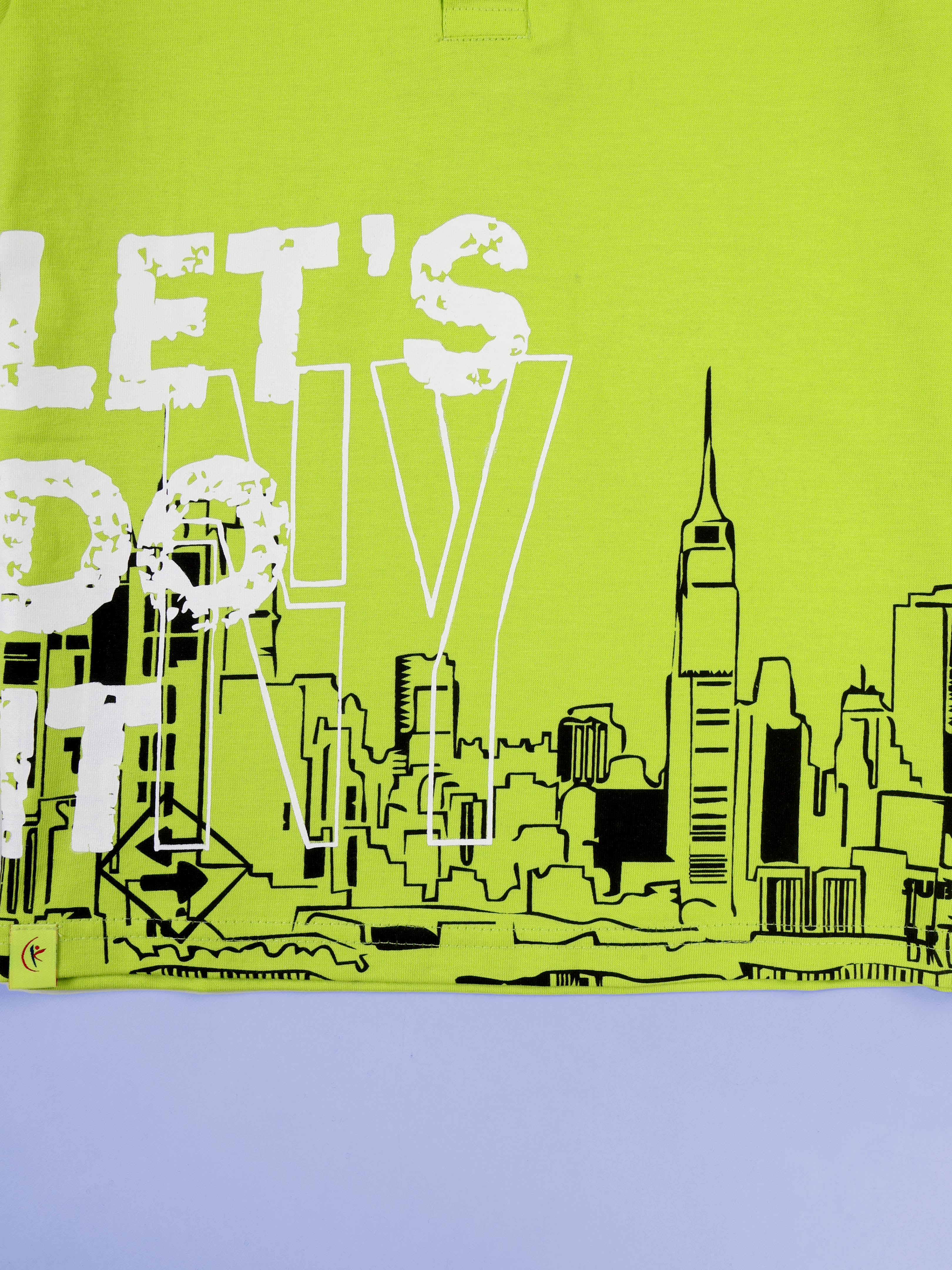 KiddoPanti Boys 100% Cotton "Lets Do It" City Graphic Printed Polo Tee