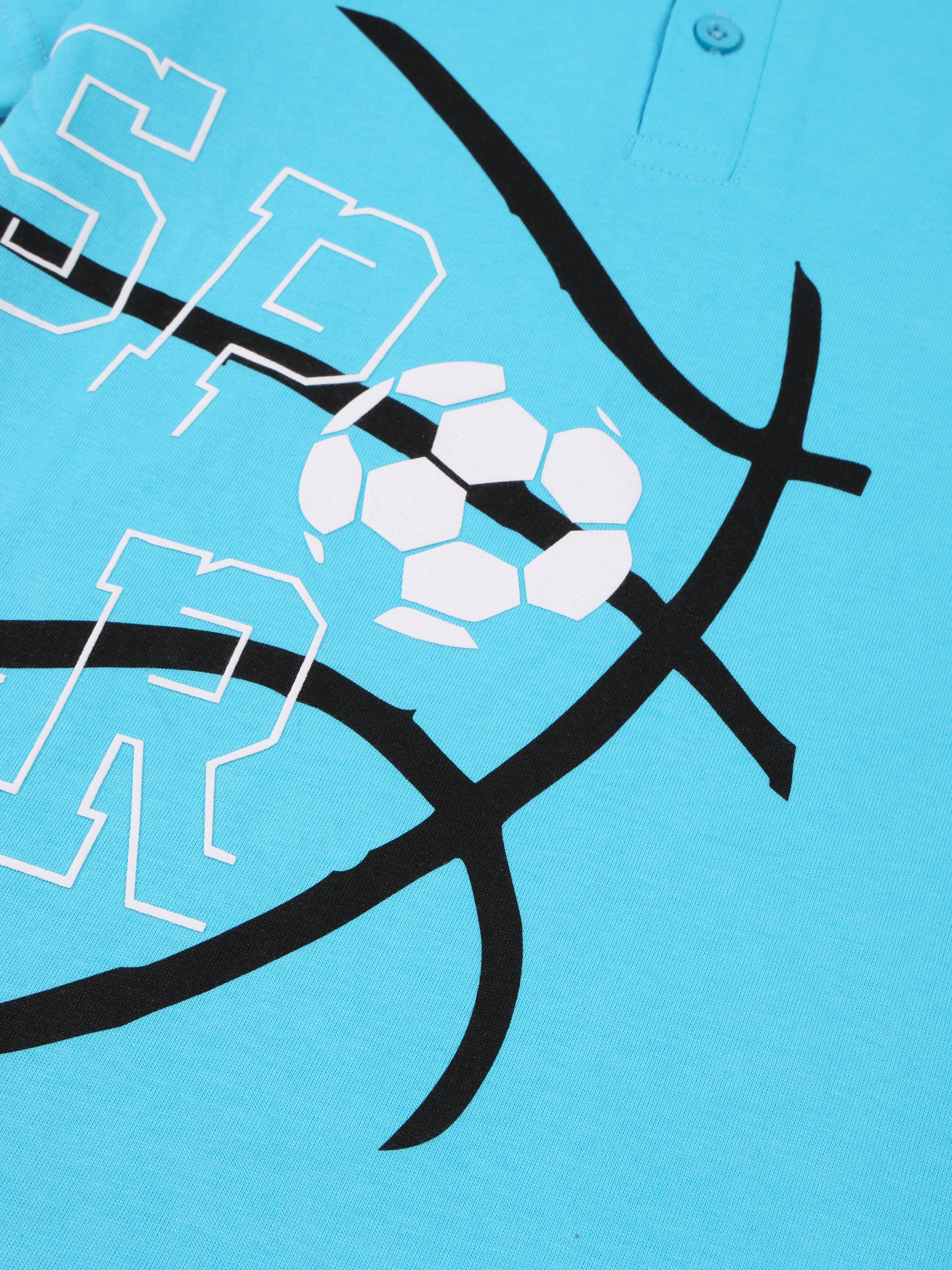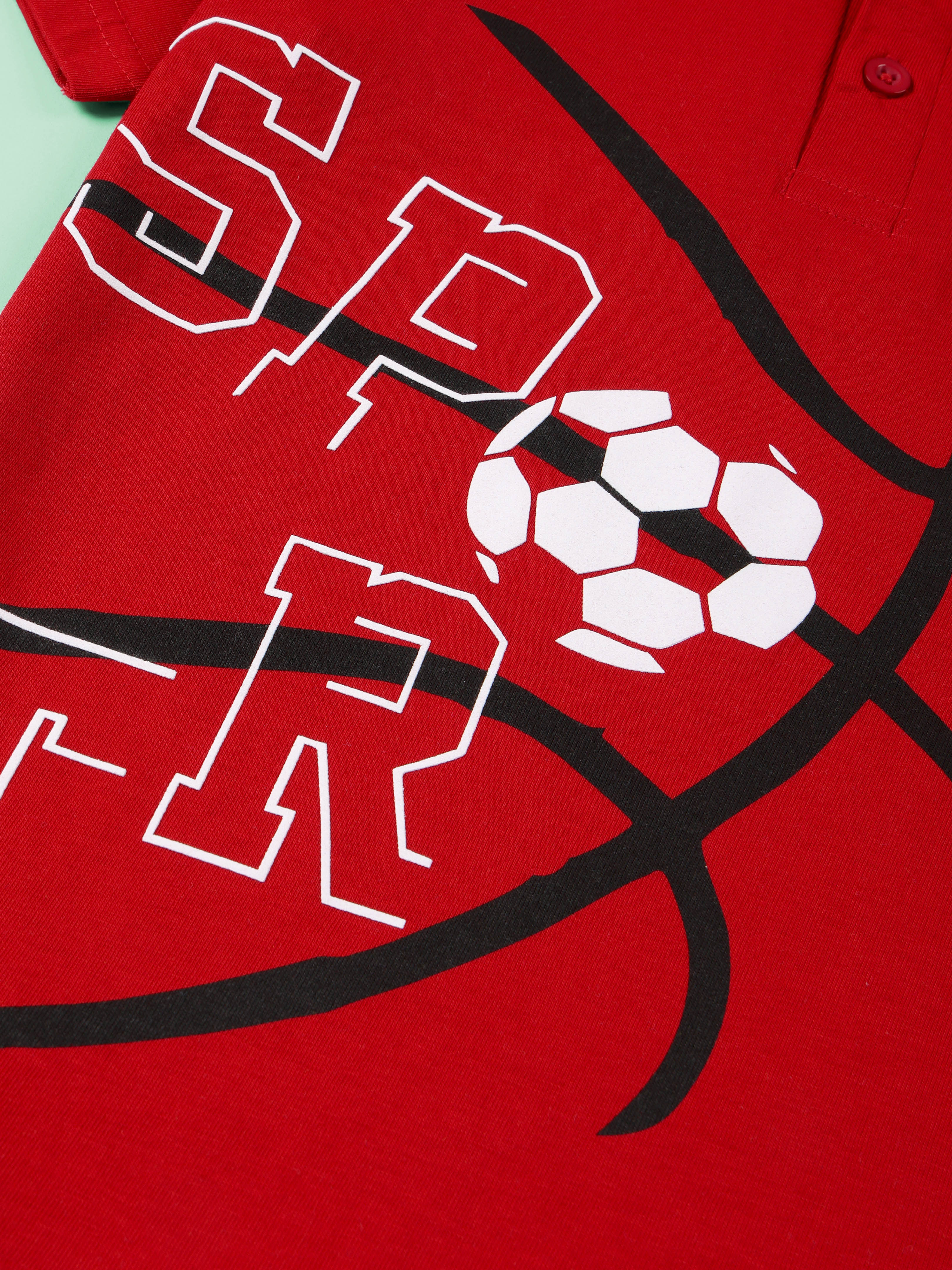 KiddoPanti Boys 100% Cotton Soccer Ball & Sport Graphic Printed Polo Tee