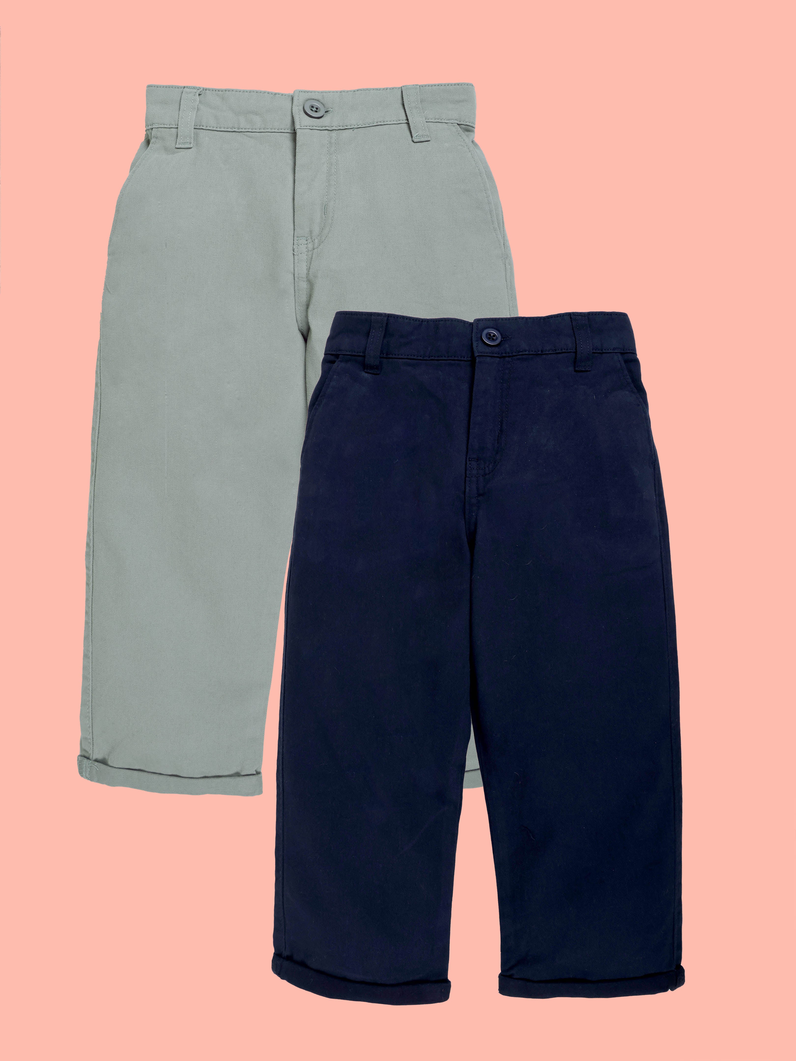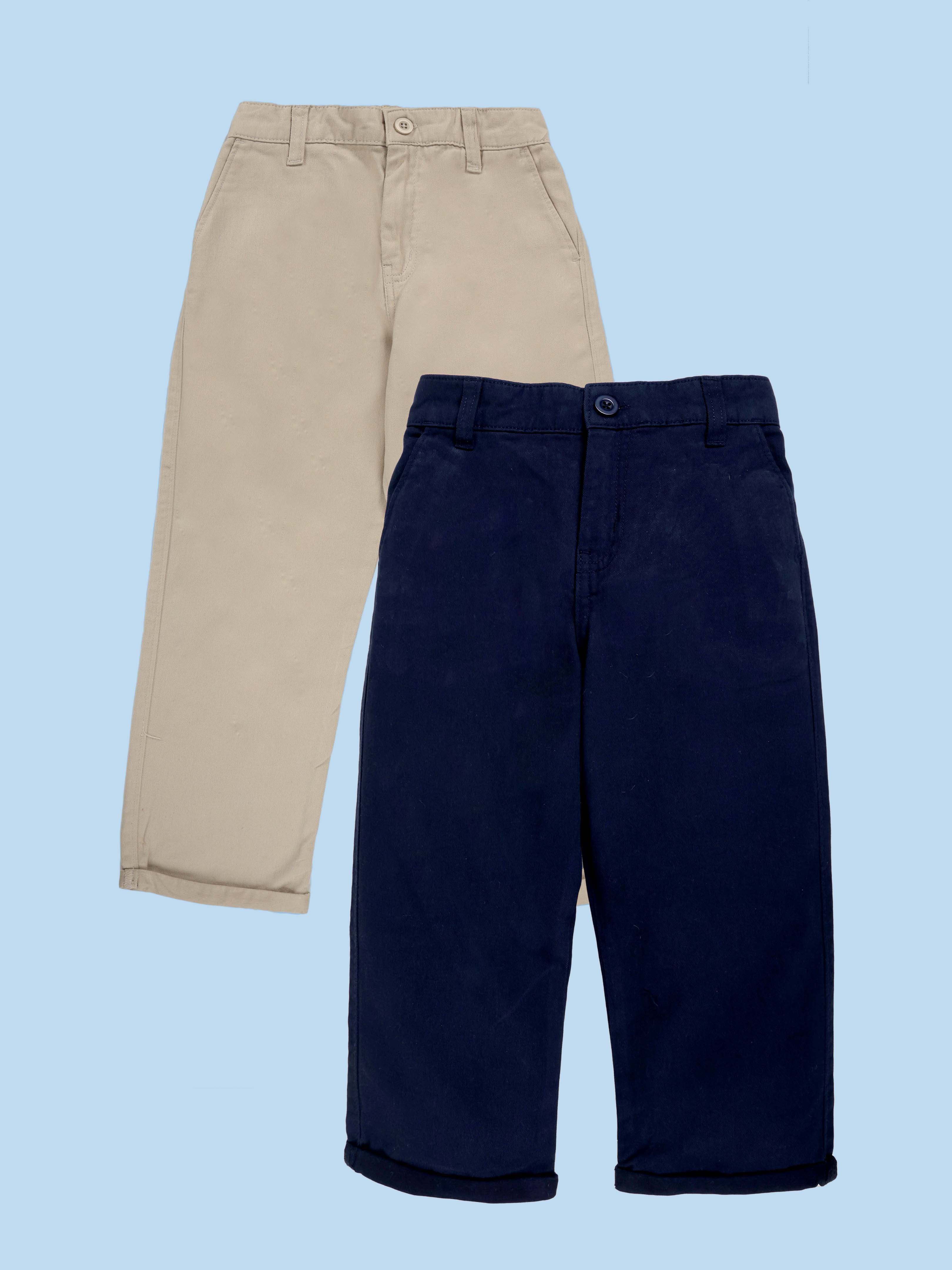 KiddoPanti Boys Cotton Twill Stright Fit Chinos Pants Pack of 2