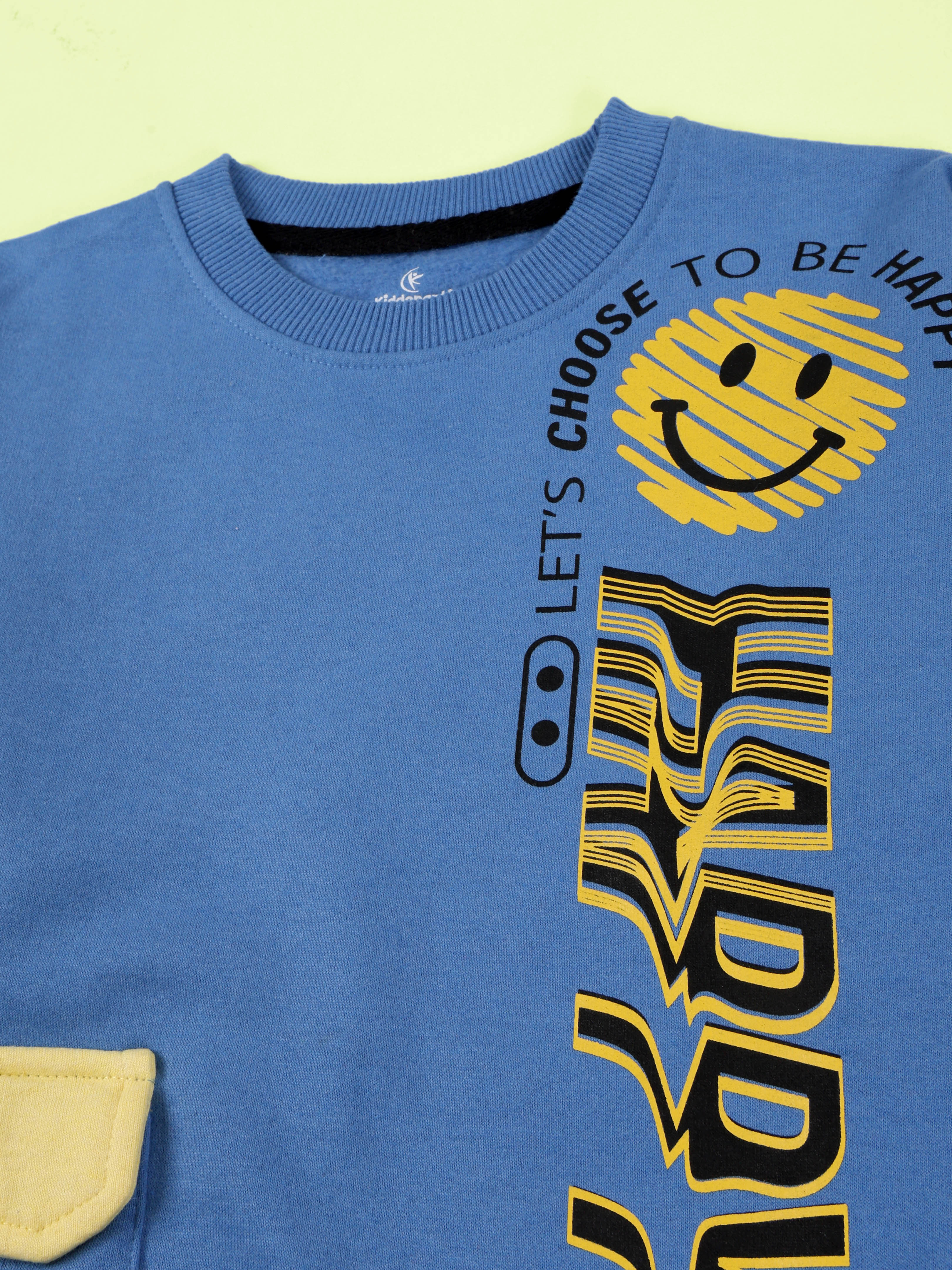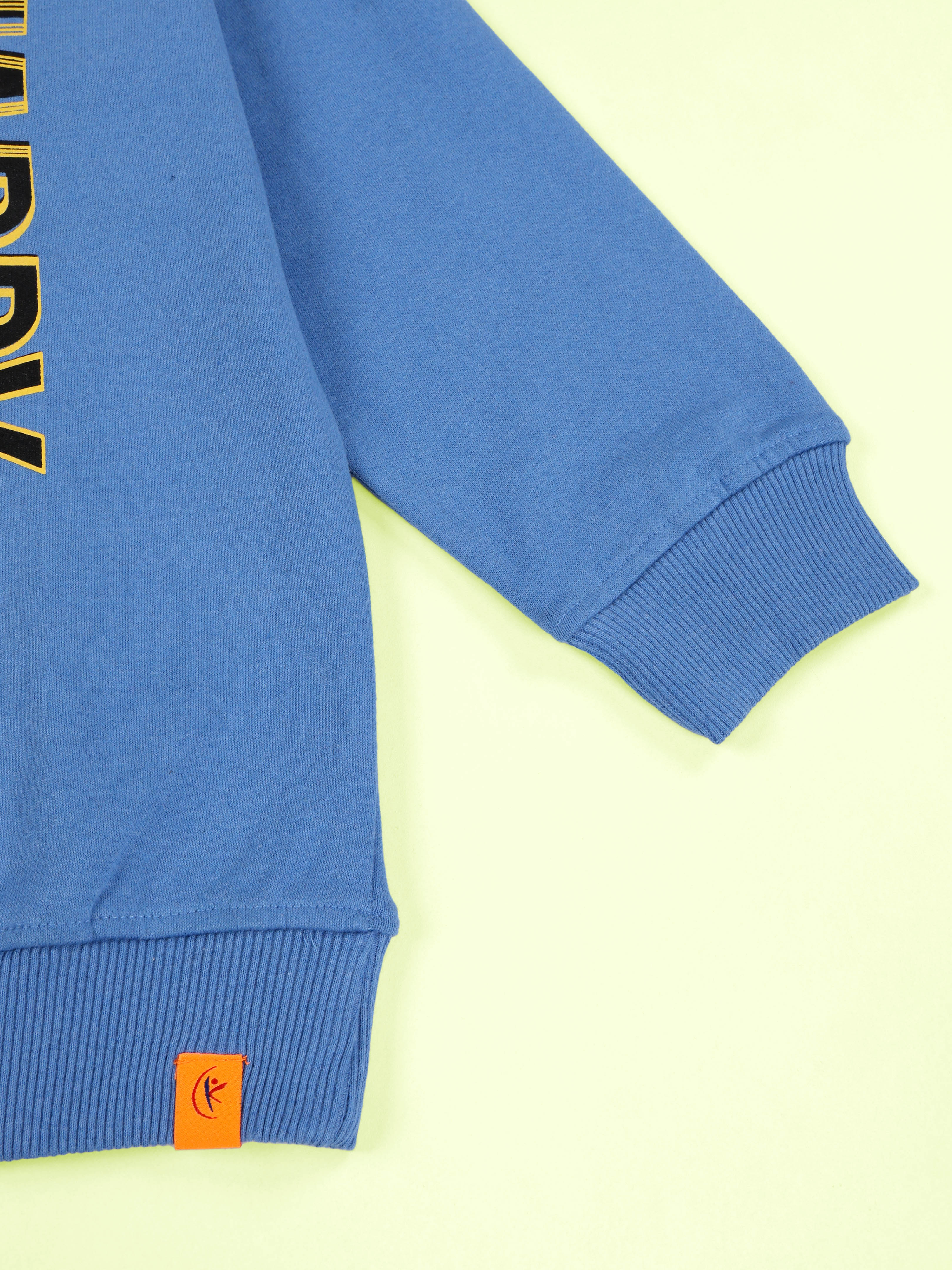 KiddoPanti Boys Cotton Fleece Graphic Printed Round Neck Full Sleeve Sweatshirt with Patch Pocket