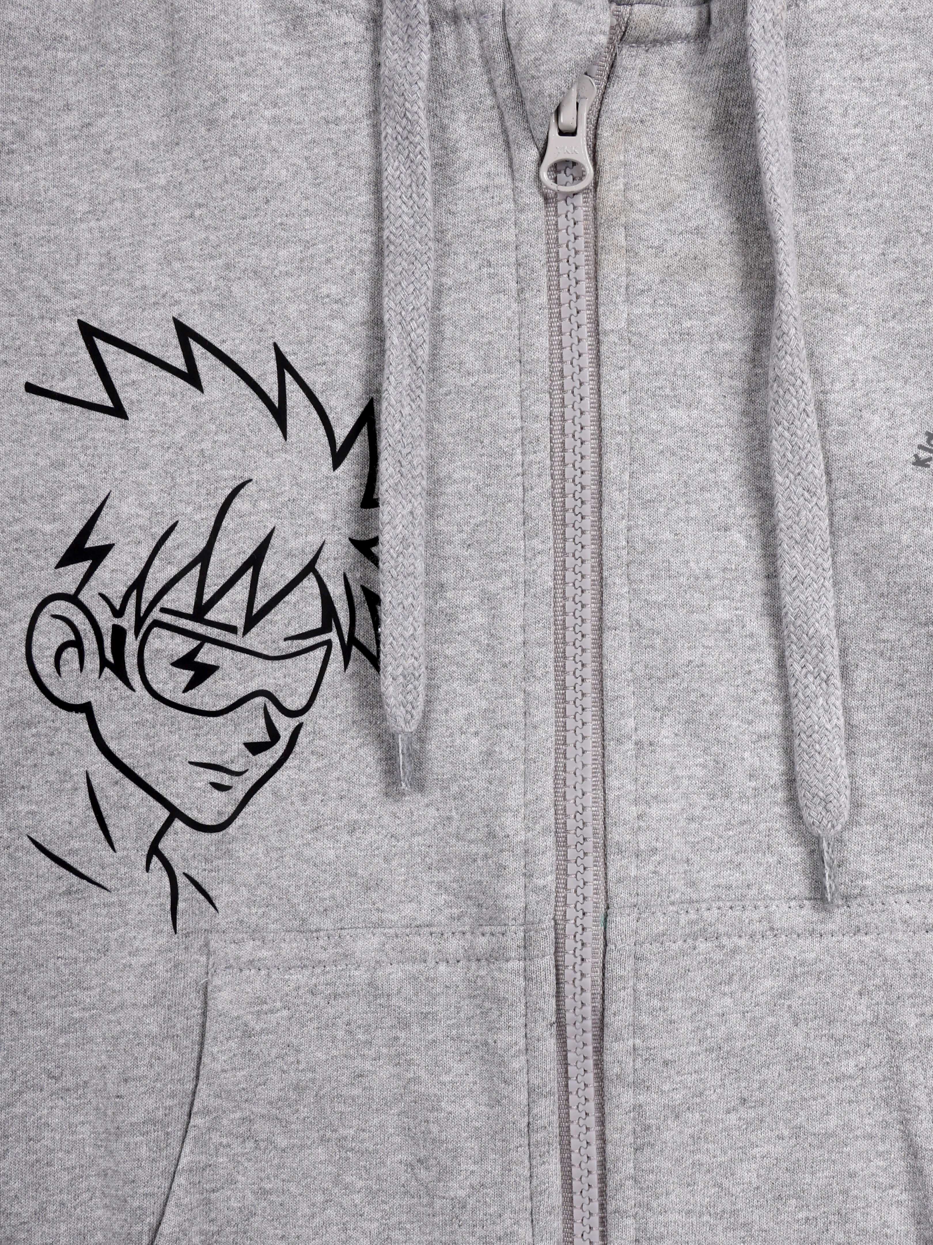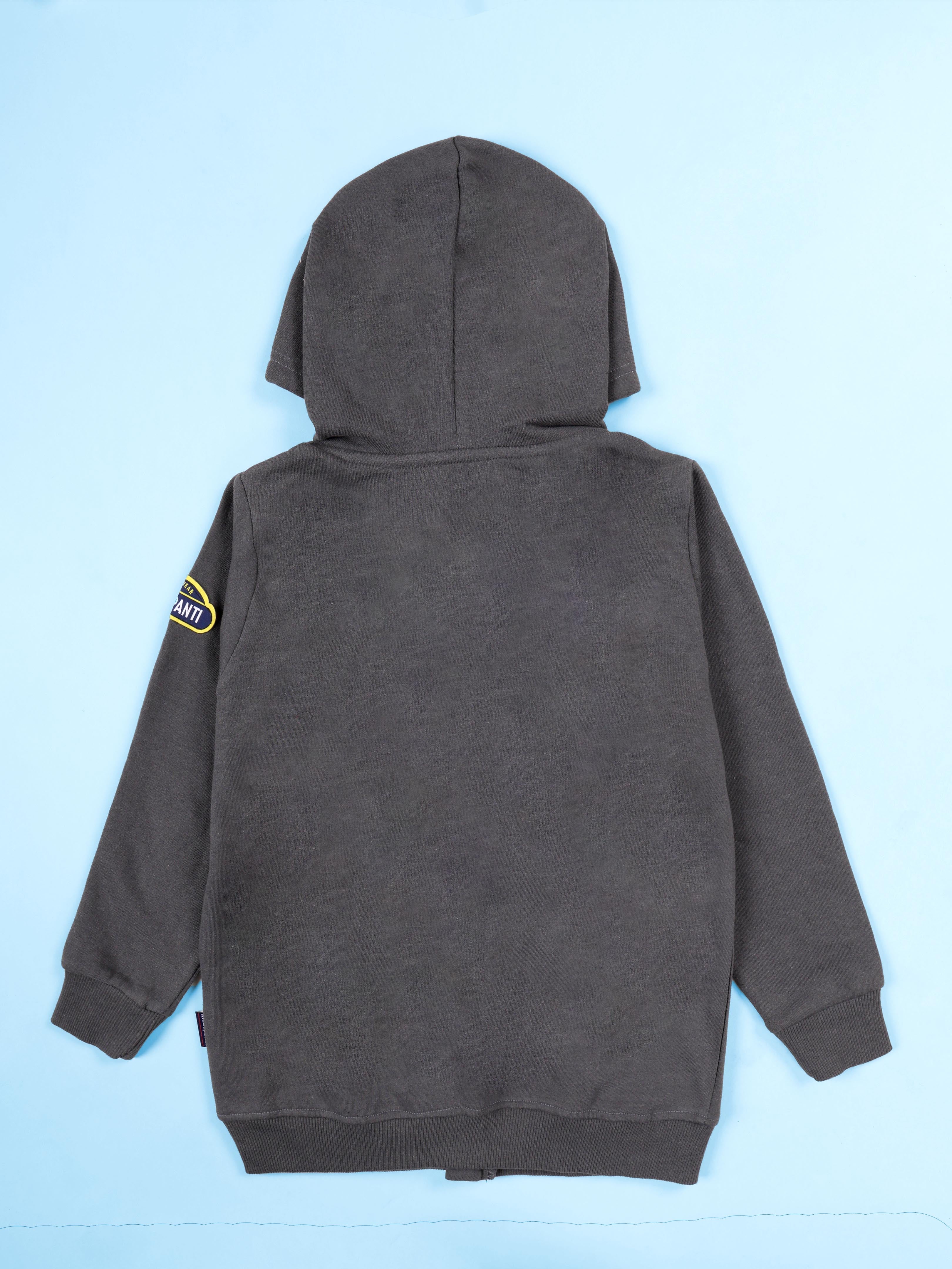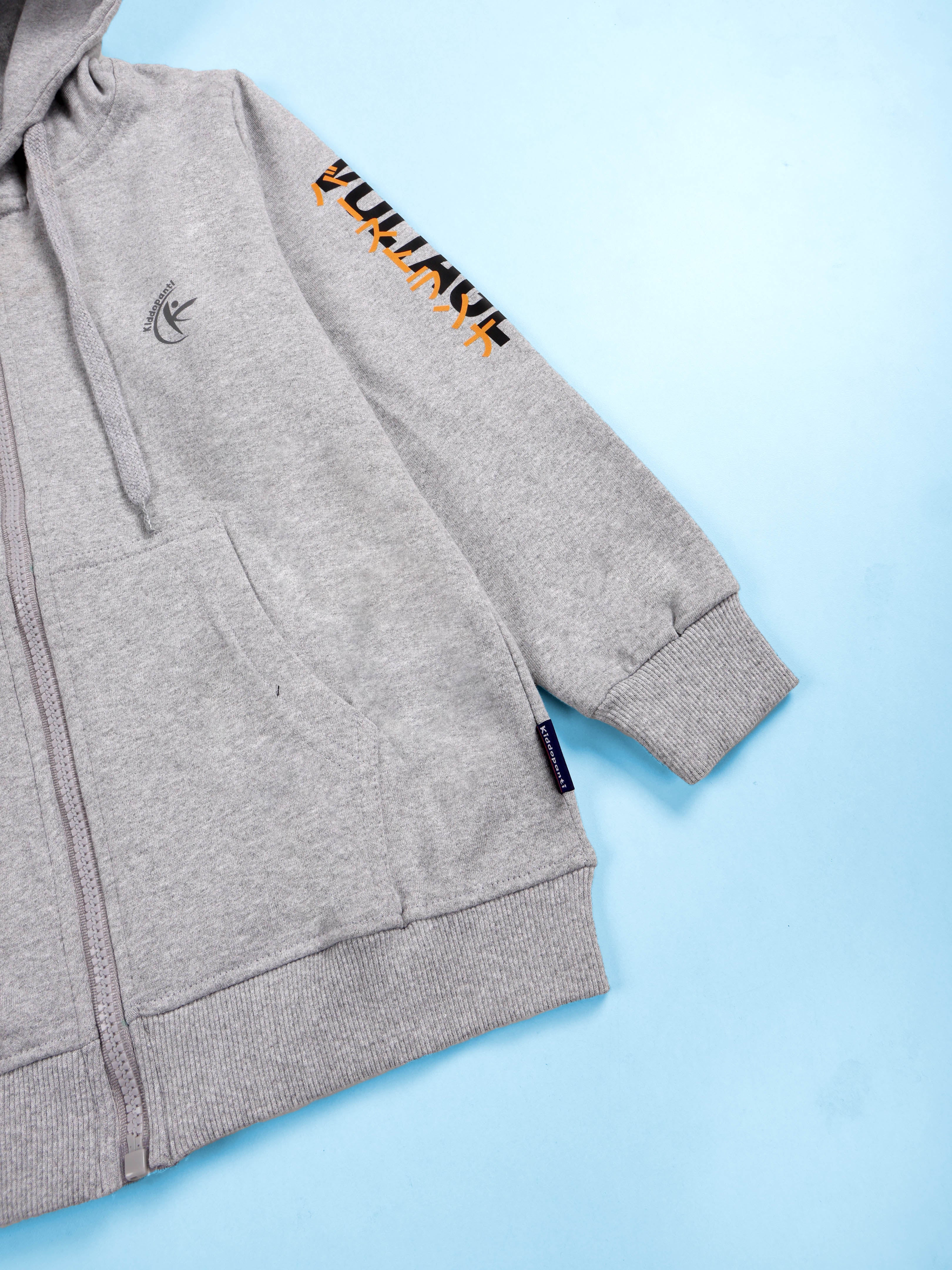 Kiddopanti Boys Fleece Graphic Printed Front Open Hooded Sweatshirt