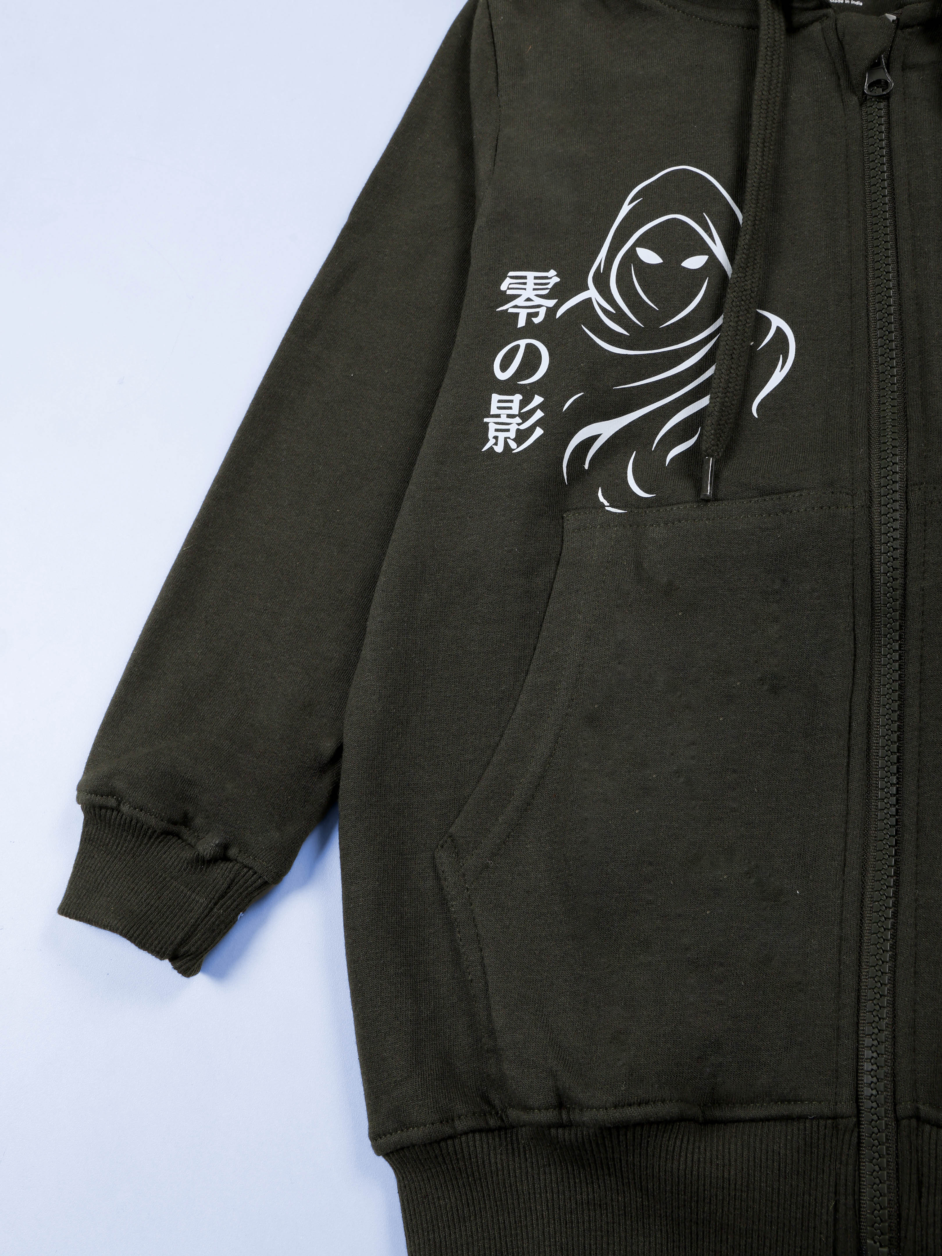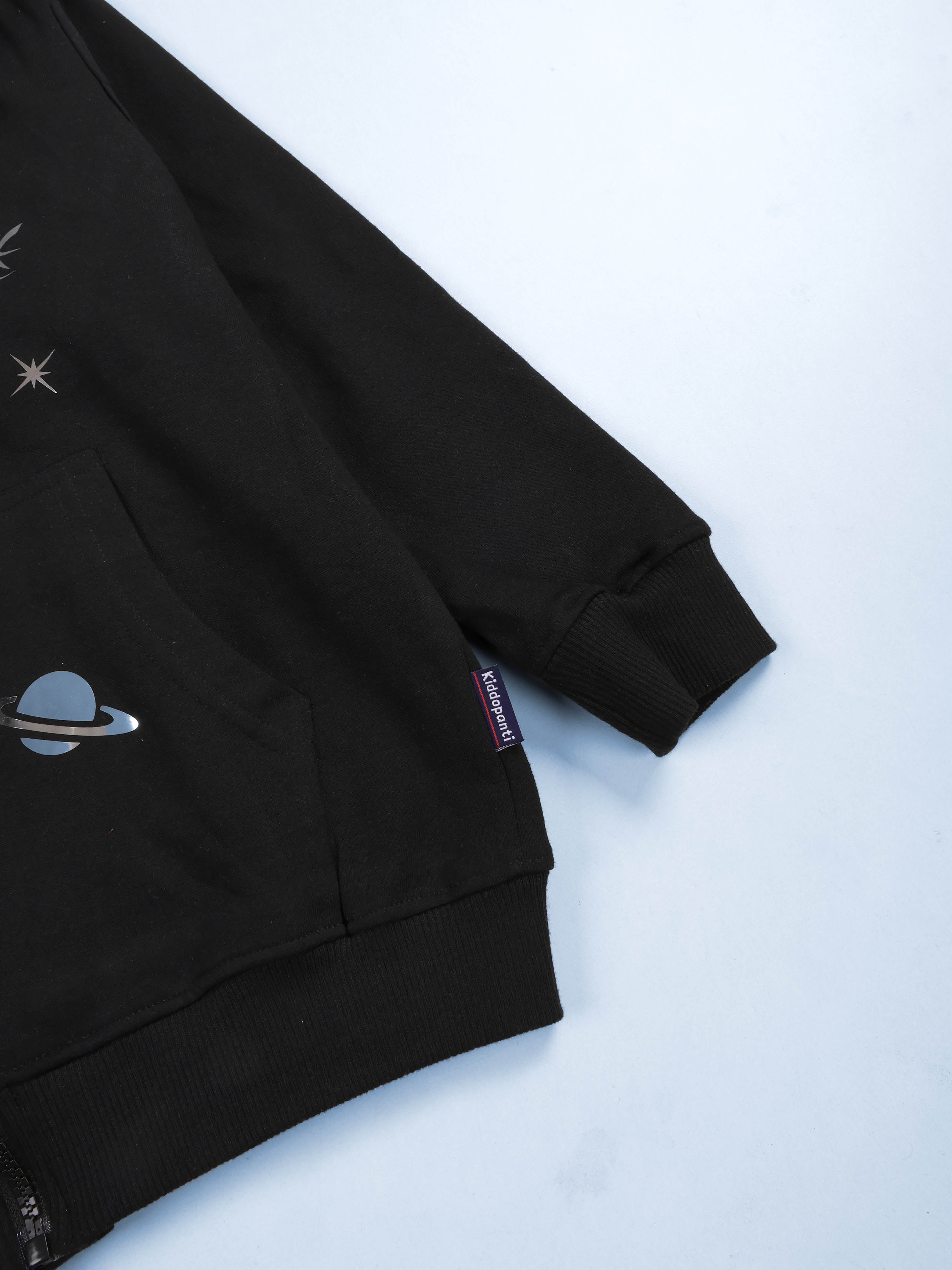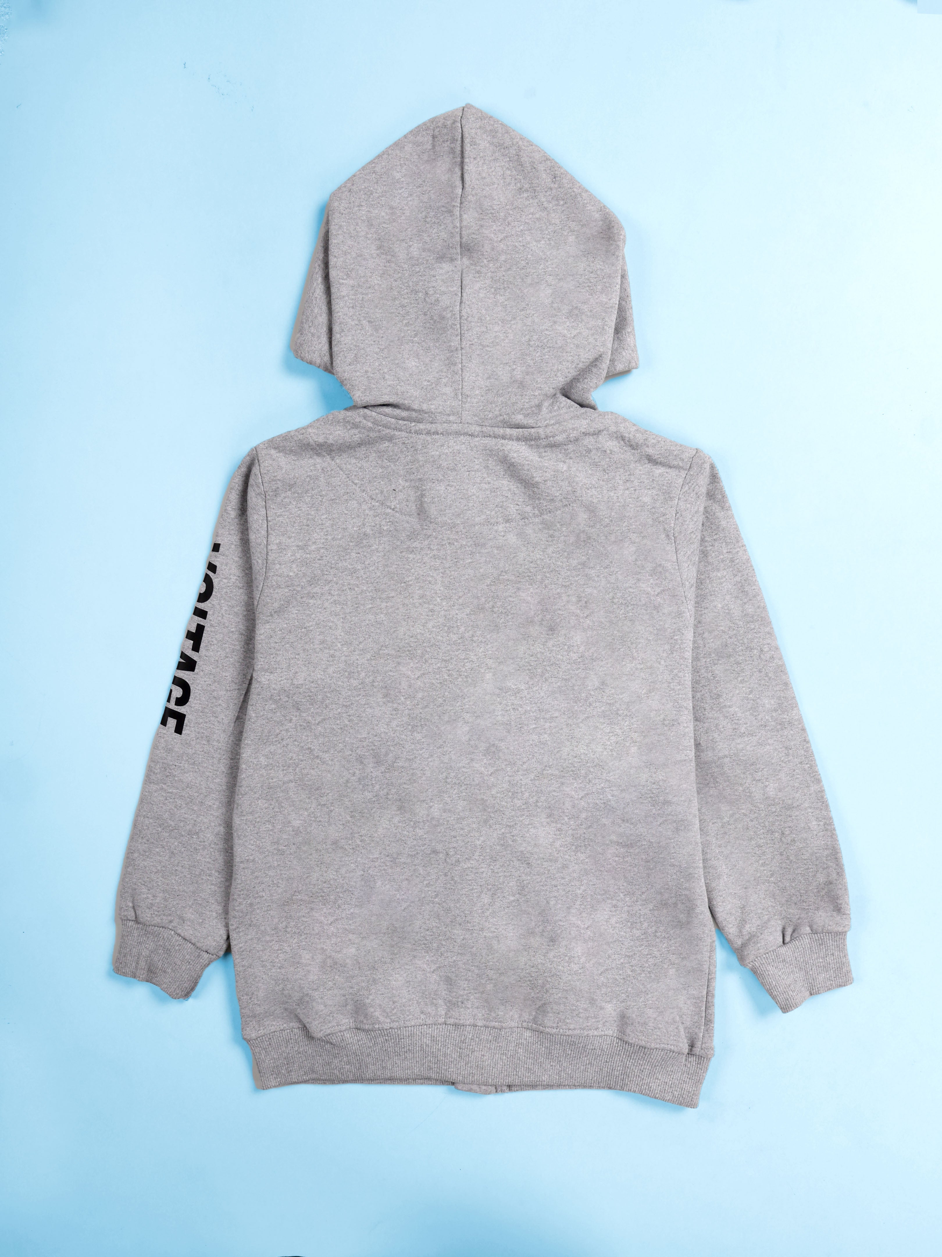 Kiddopanti Boys Fleece Graphic Printed Front Open Hooded Sweatshirt
