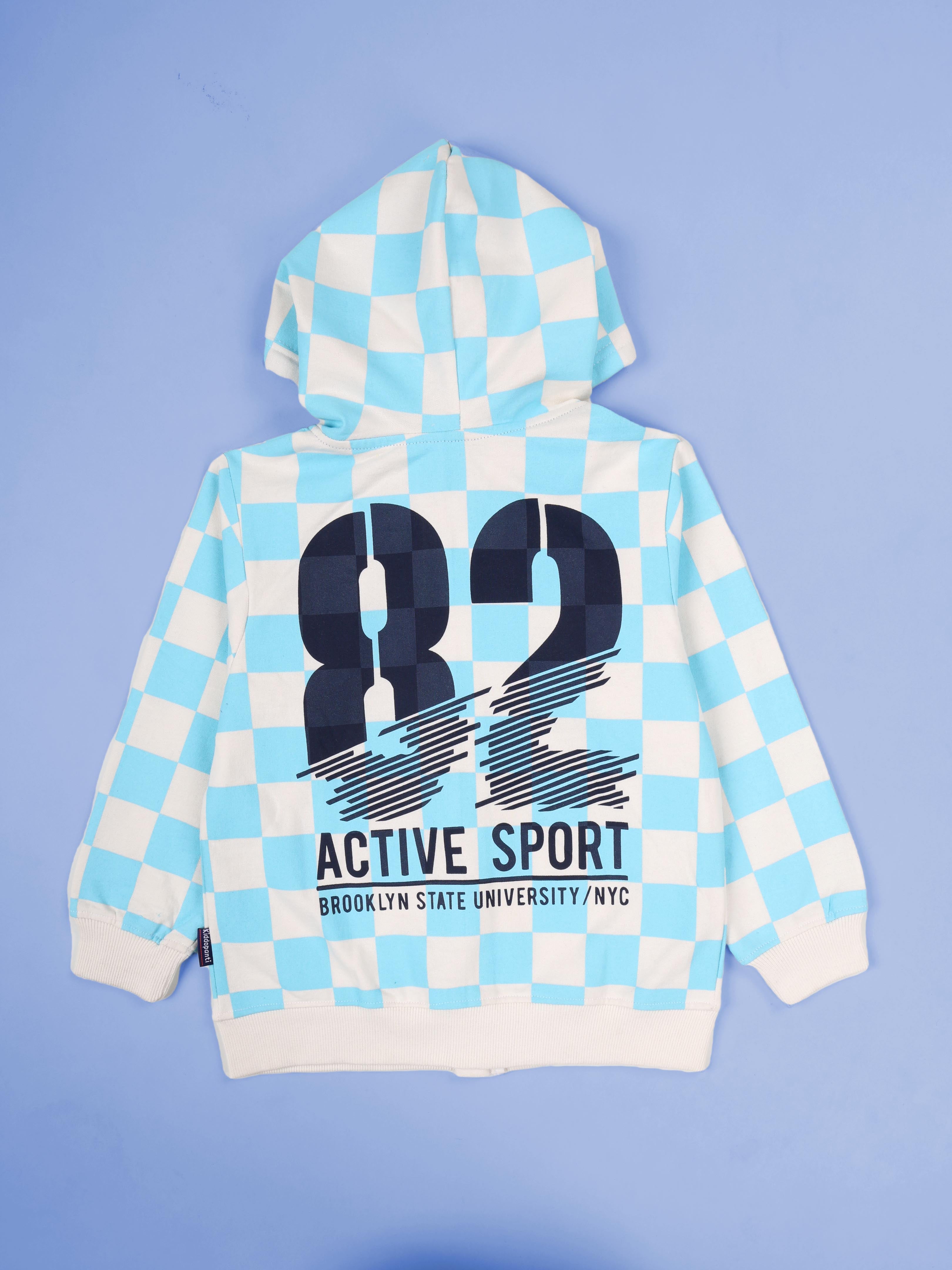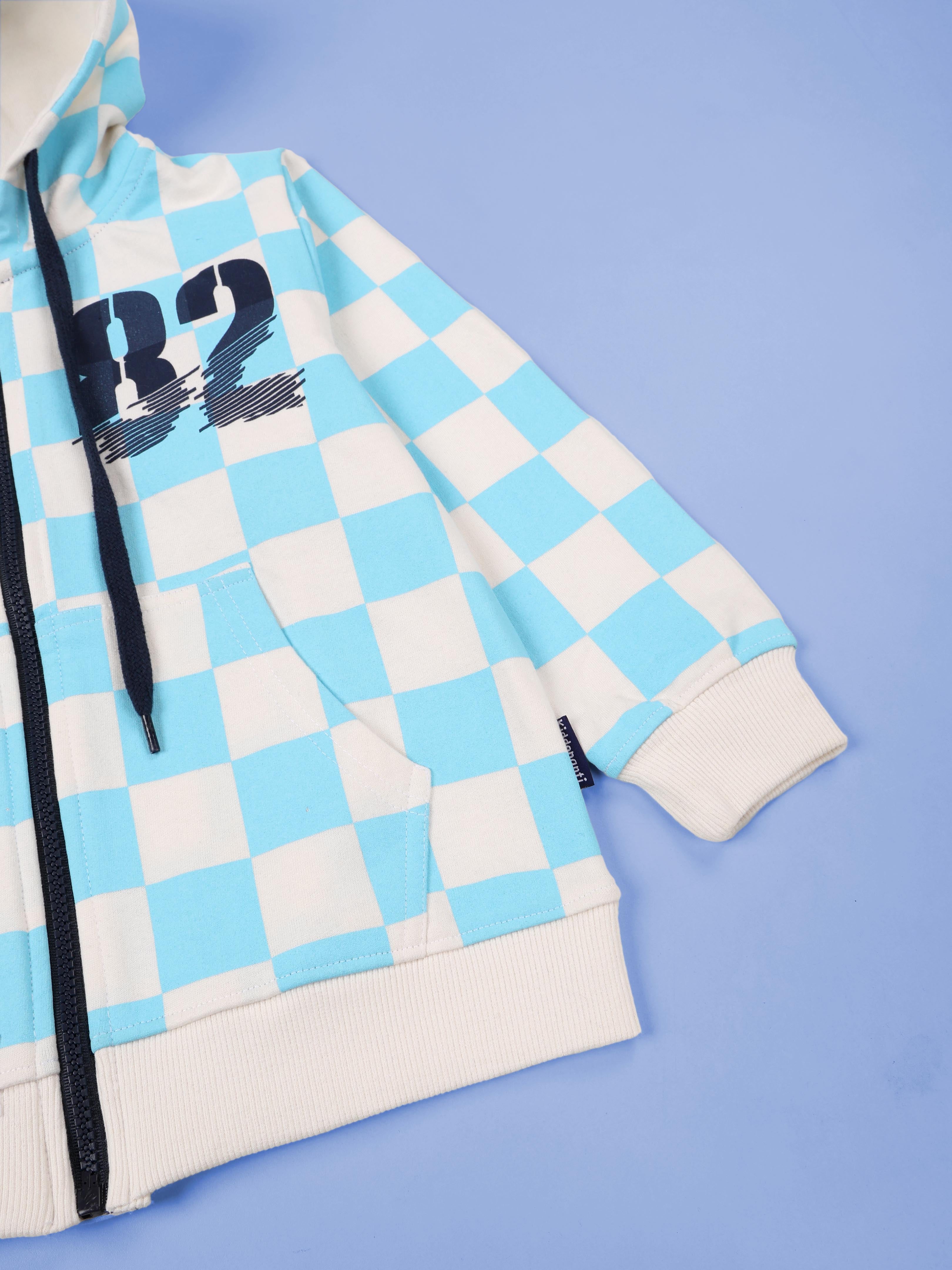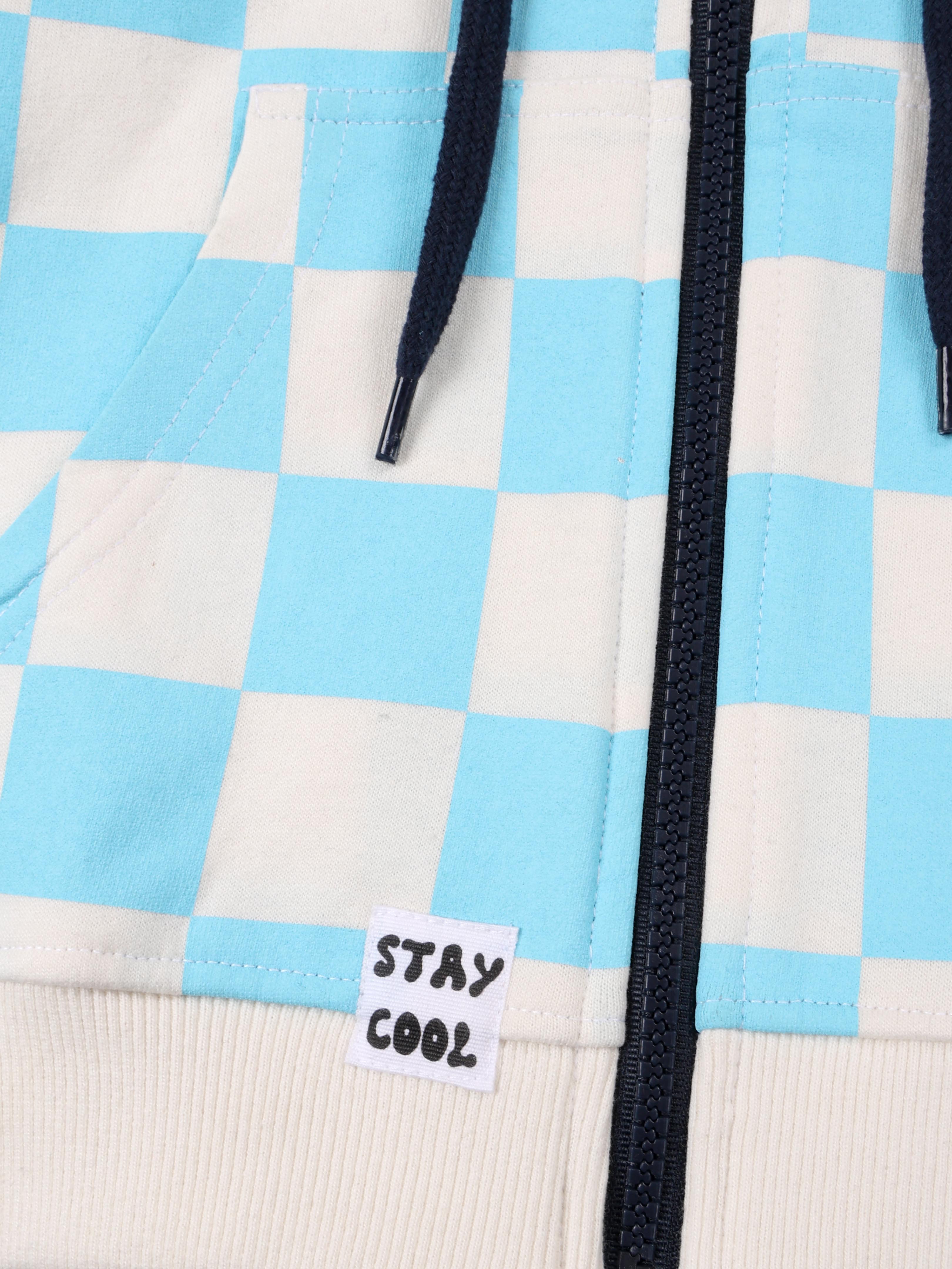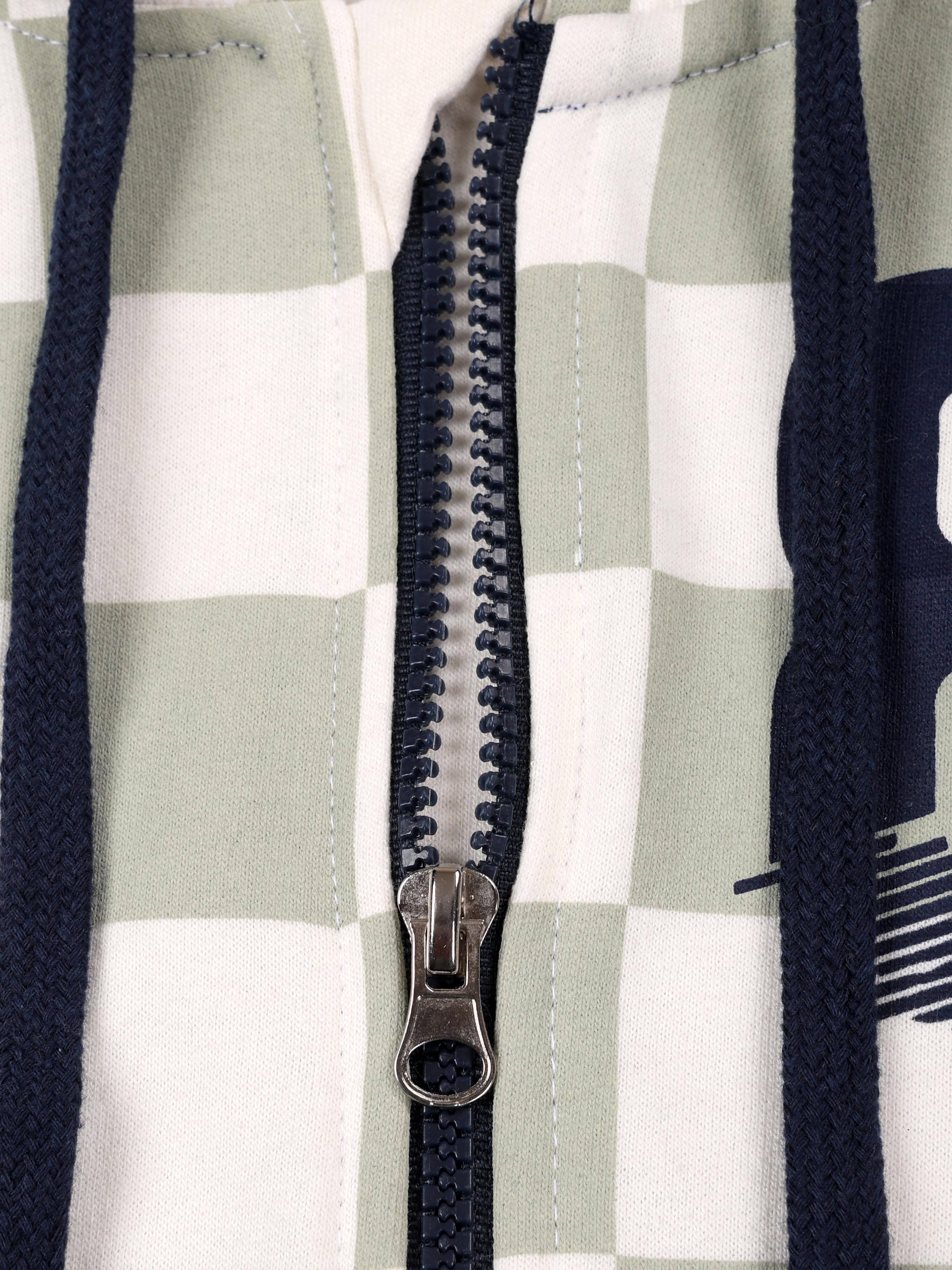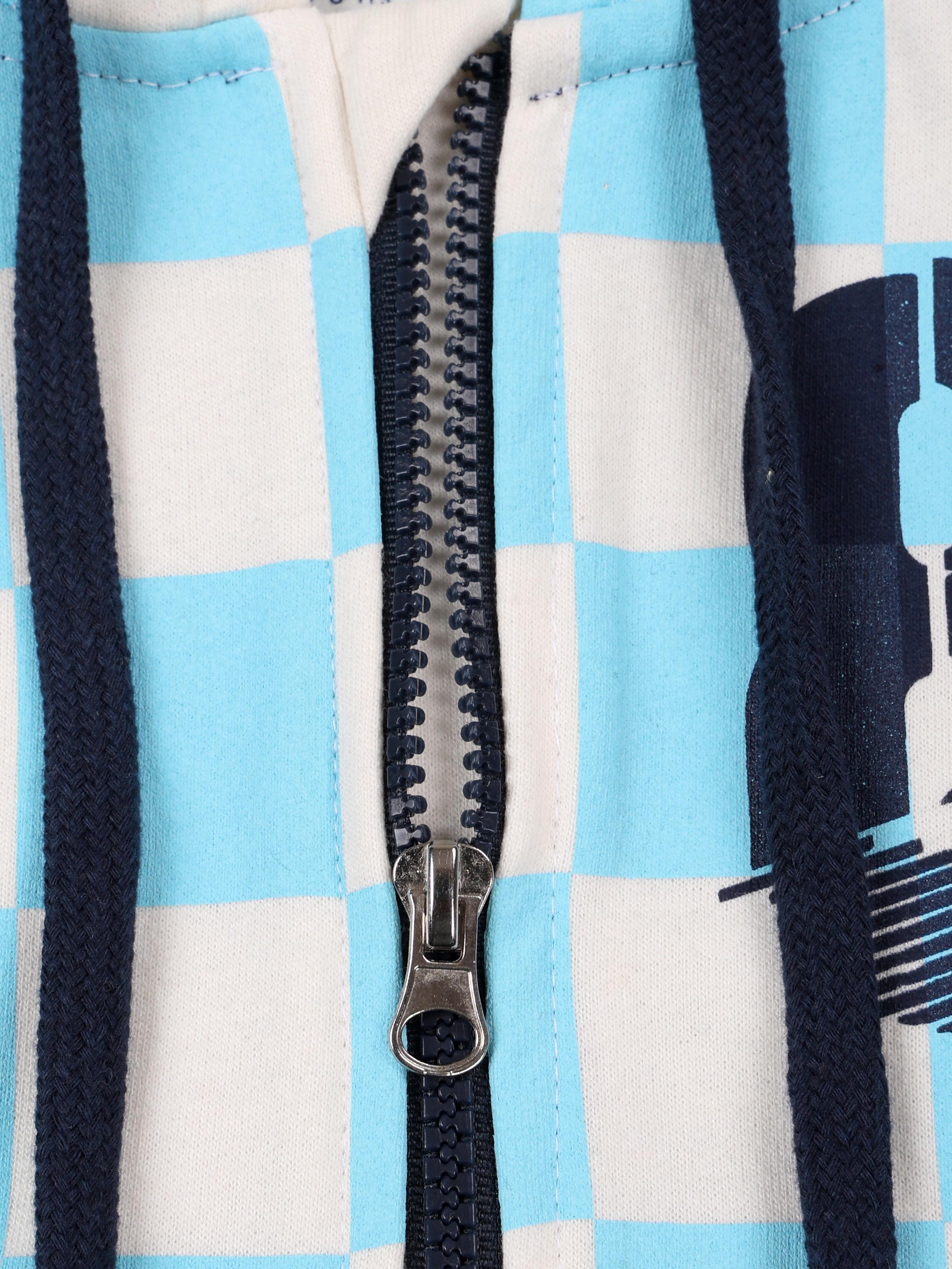 Kiddopanti Boys Fleece Checkered Printed Zip-Up Hoodie Sweatshirt