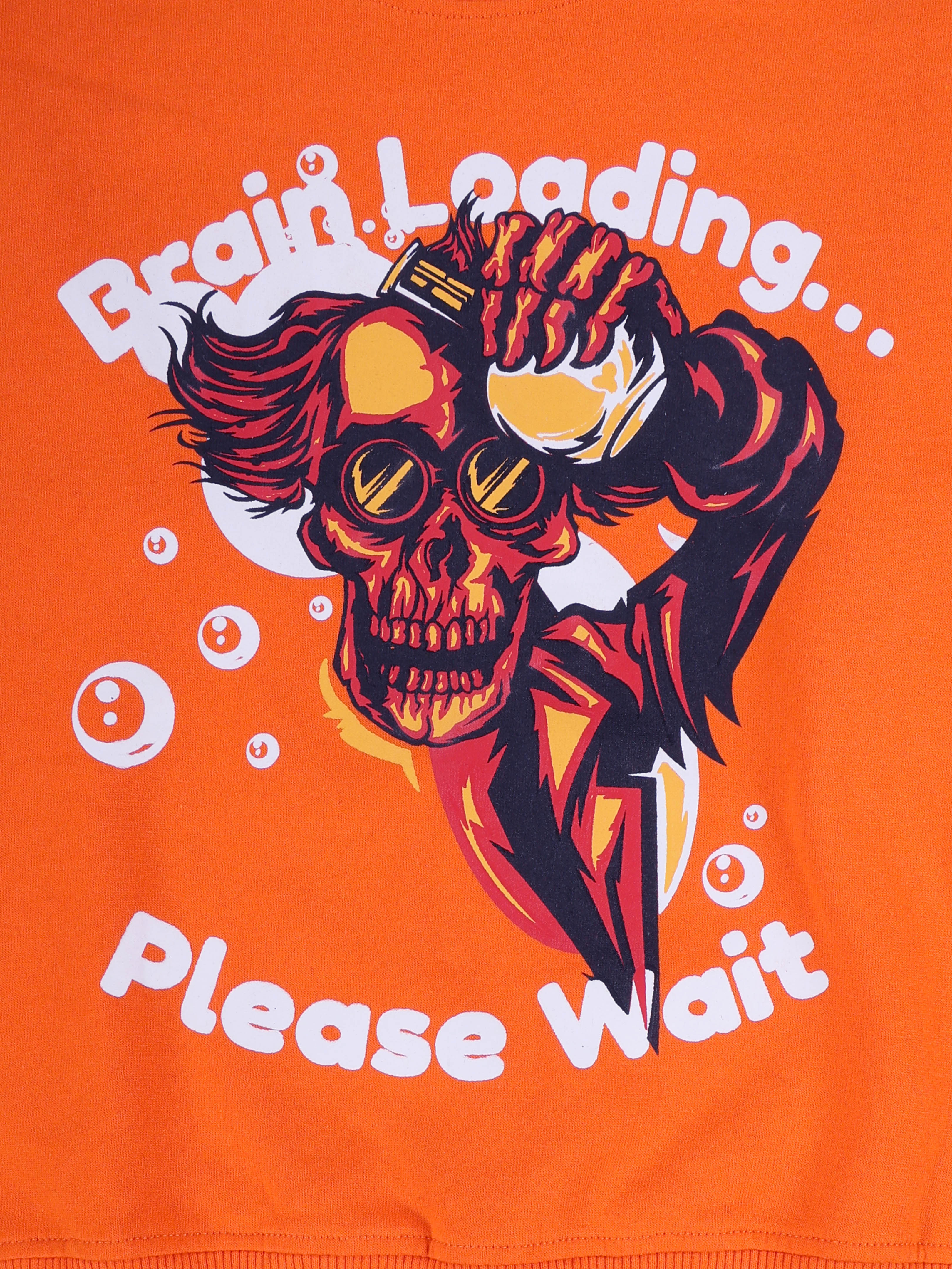 Kiddopanti Boys Brain Loading Skull Print Round Neck Sweatshirt