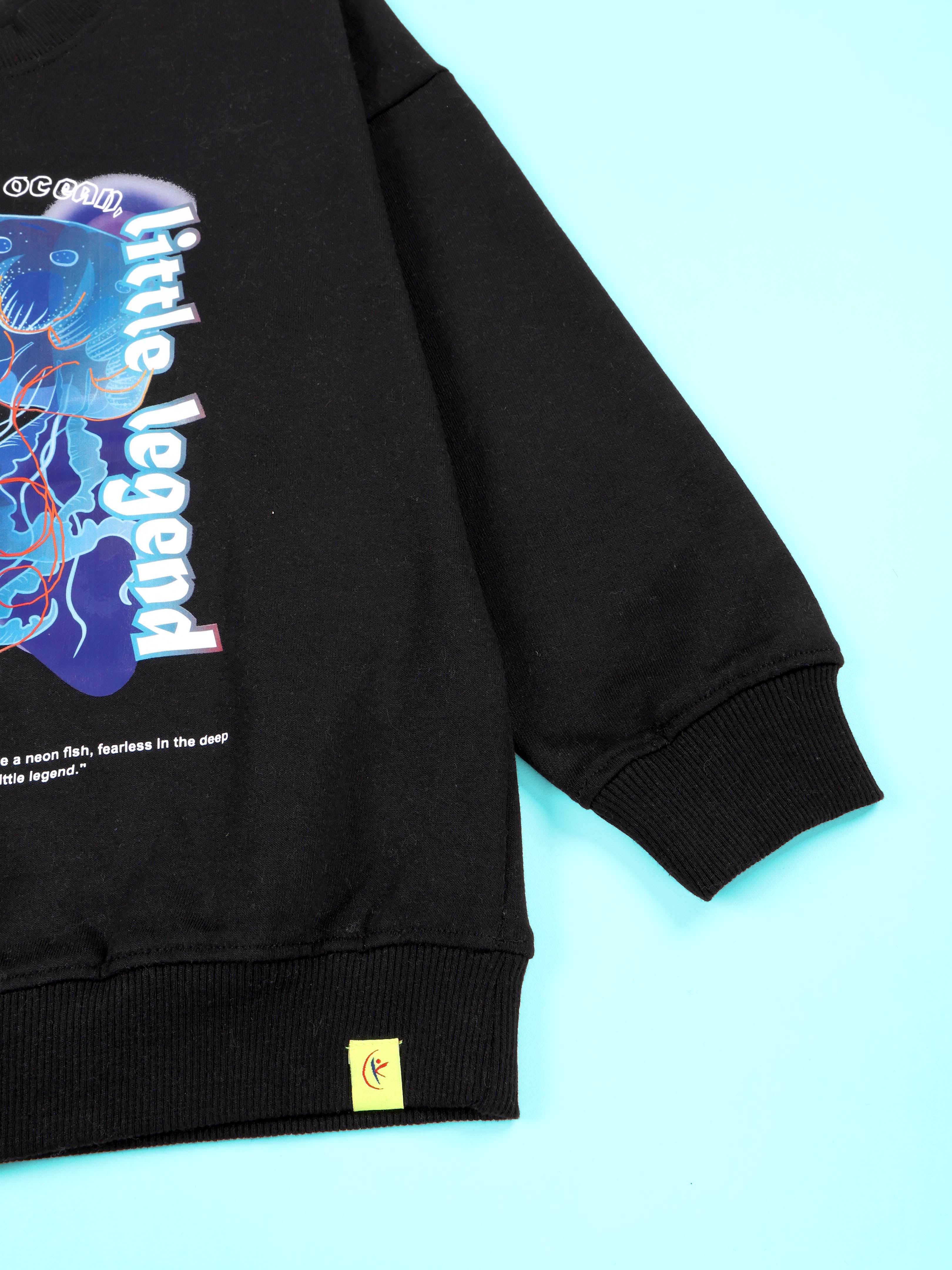 Kiddopanti Boys Glow Jellyfish Print Round Neck Sweatshirt With Fleece Track Pant Set