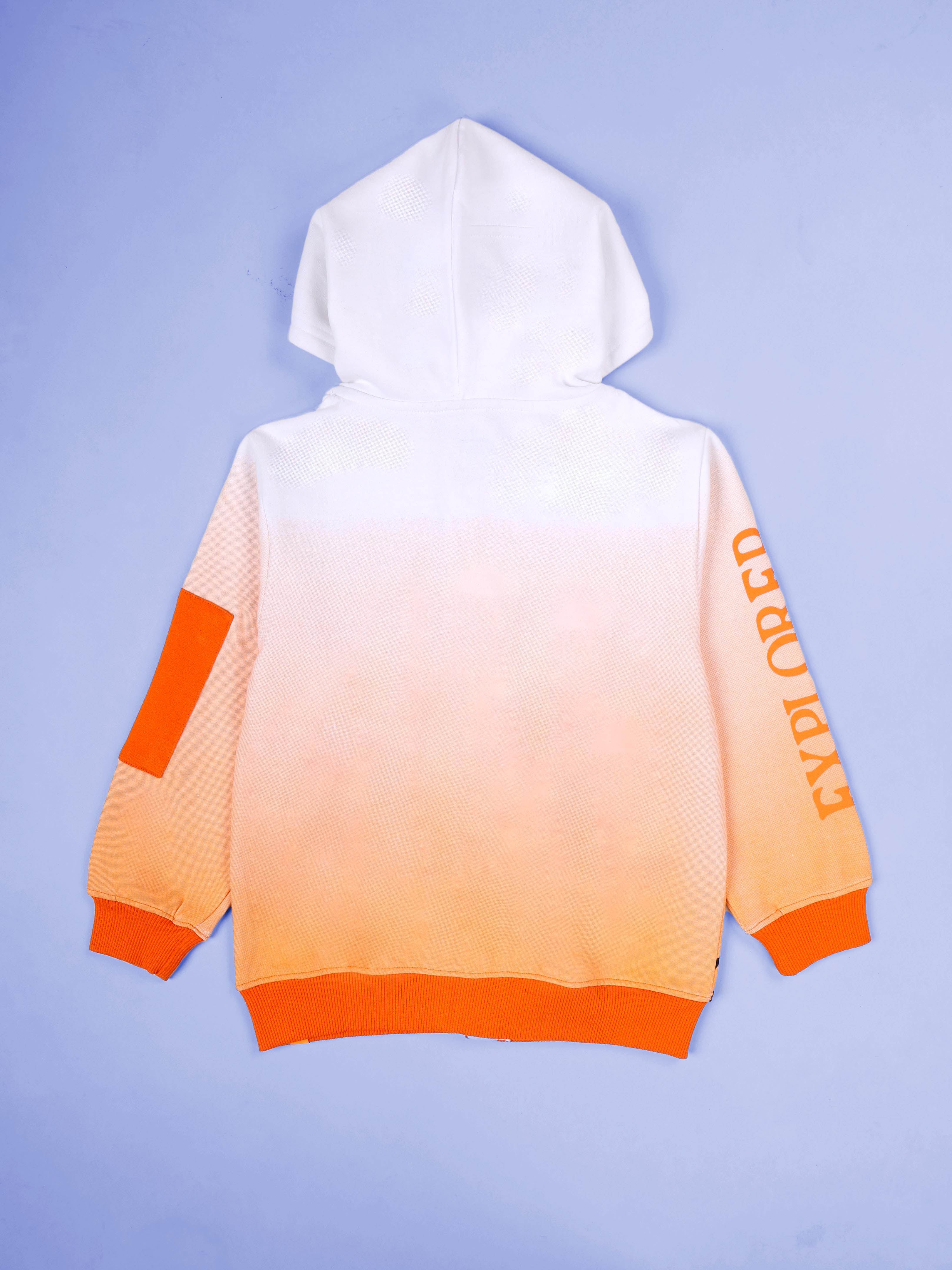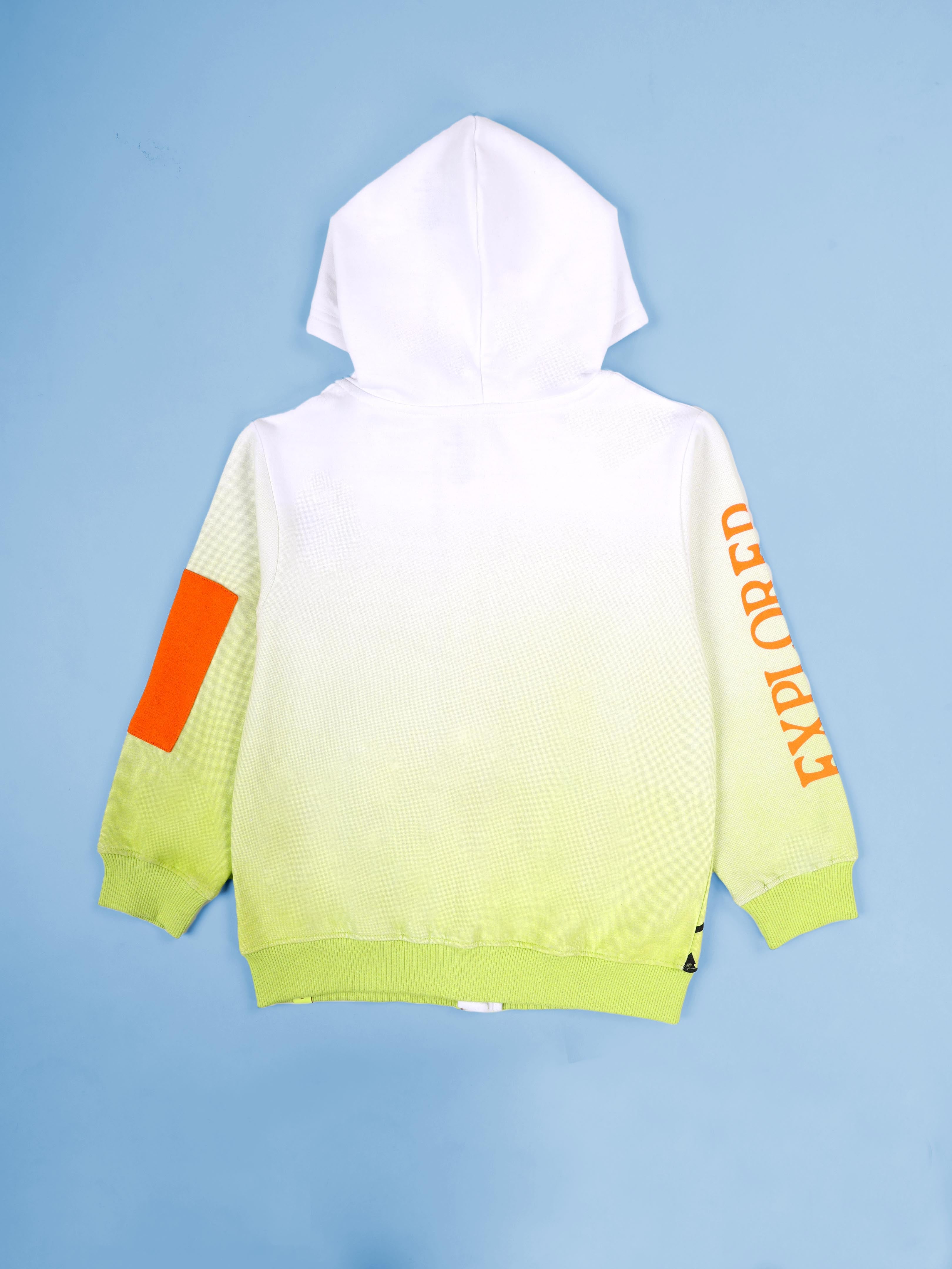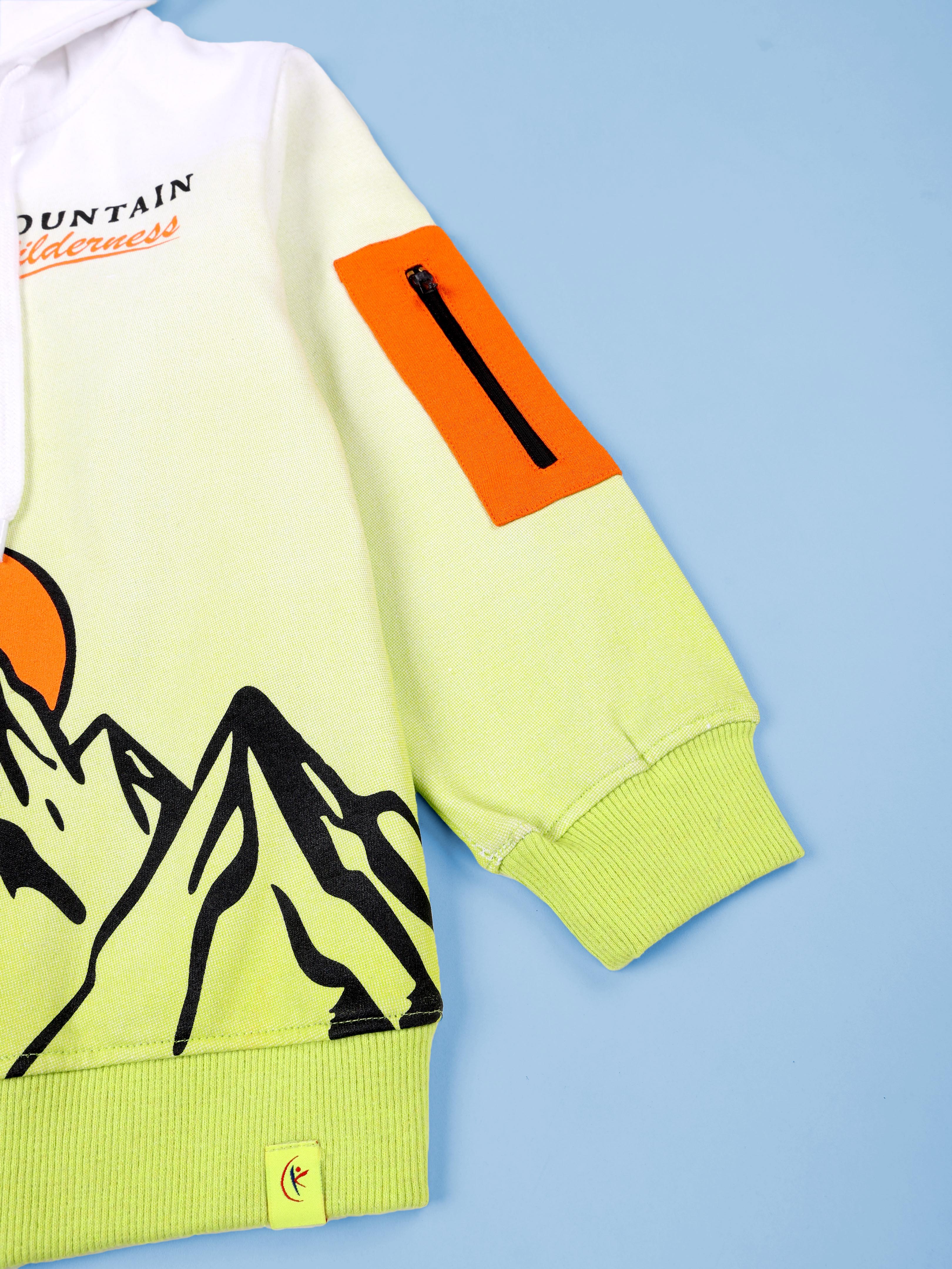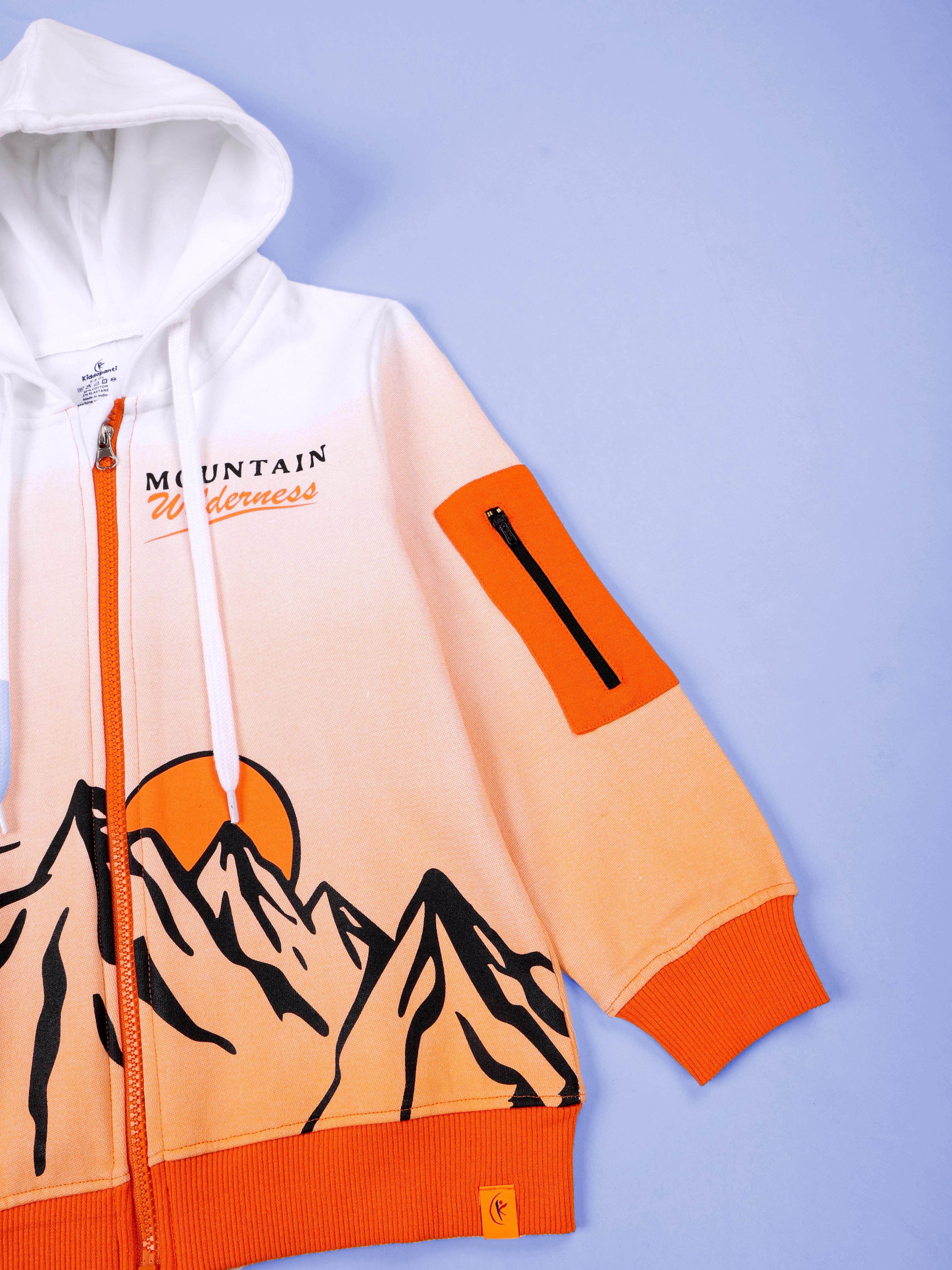 Kiddopanti Boys Mountain Wilderness Explorer Gradient Zip-Up Hoodie With Explorer Printed Fleece Track Pant Set