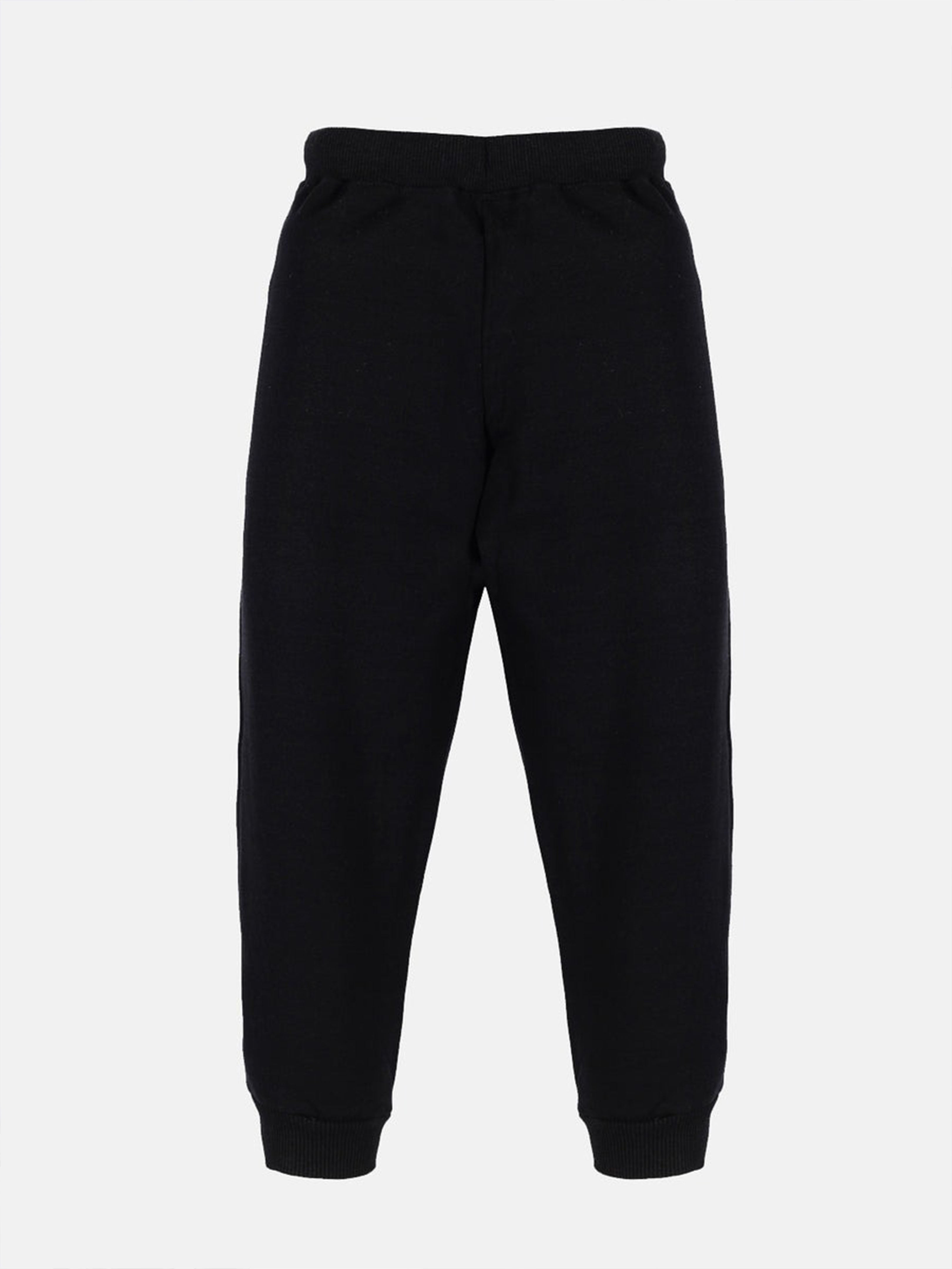 Boys Solid Fleece Round Neck Sweatshirt Printed With Badges & Track Pant Set