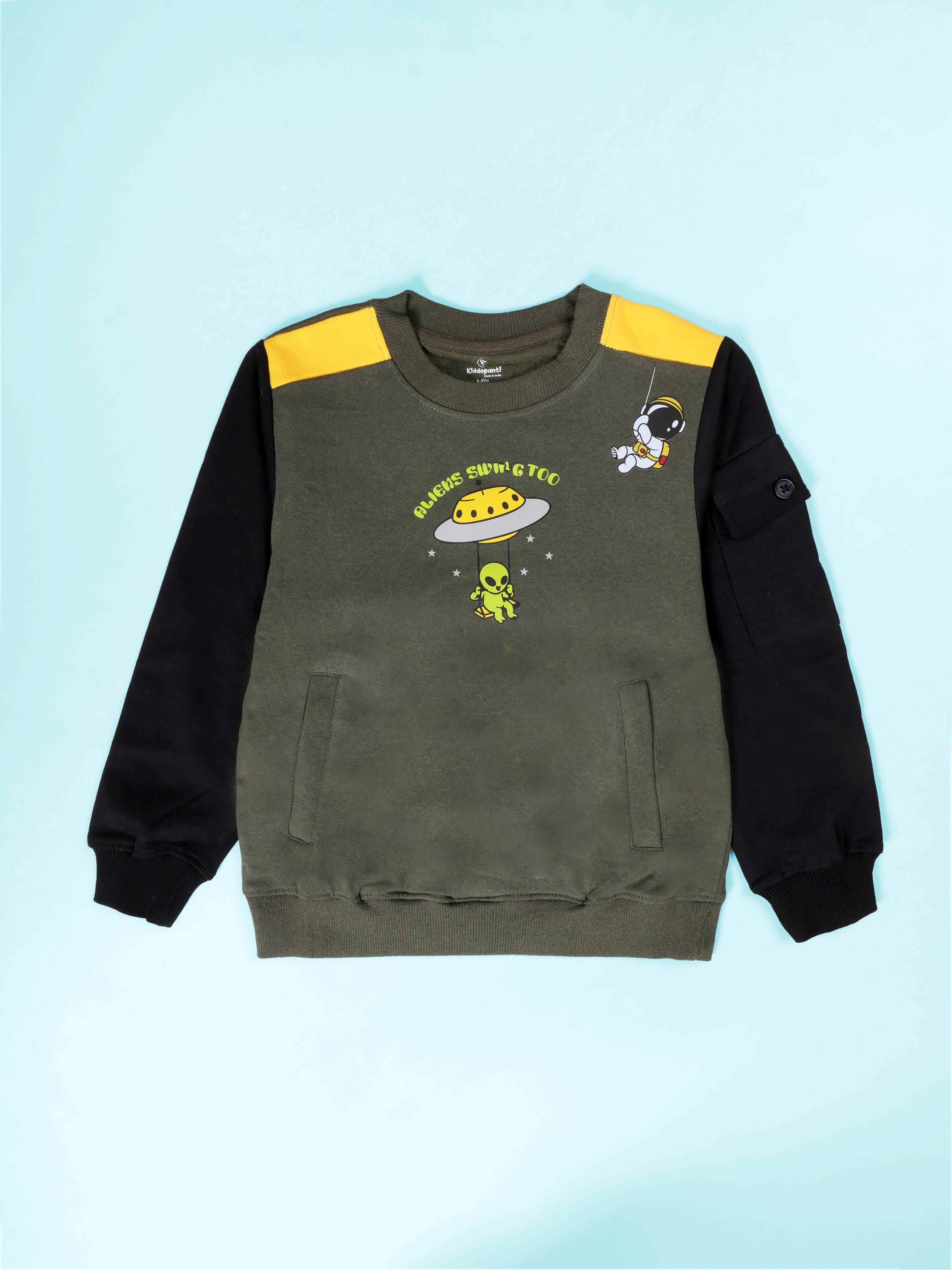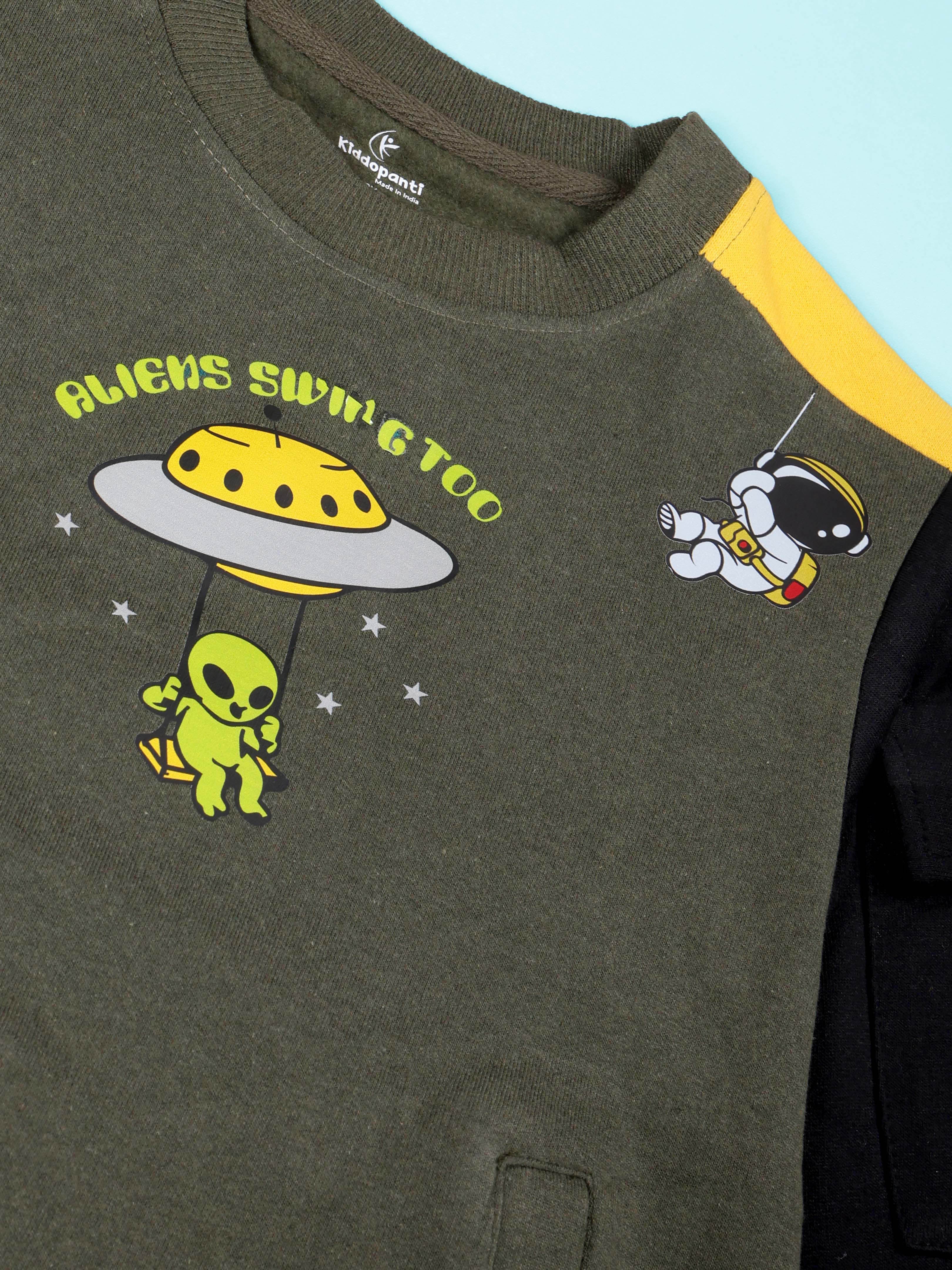 Boys Round Neck Sweatshirts With Pocket With Multi Print & Track Pant Set