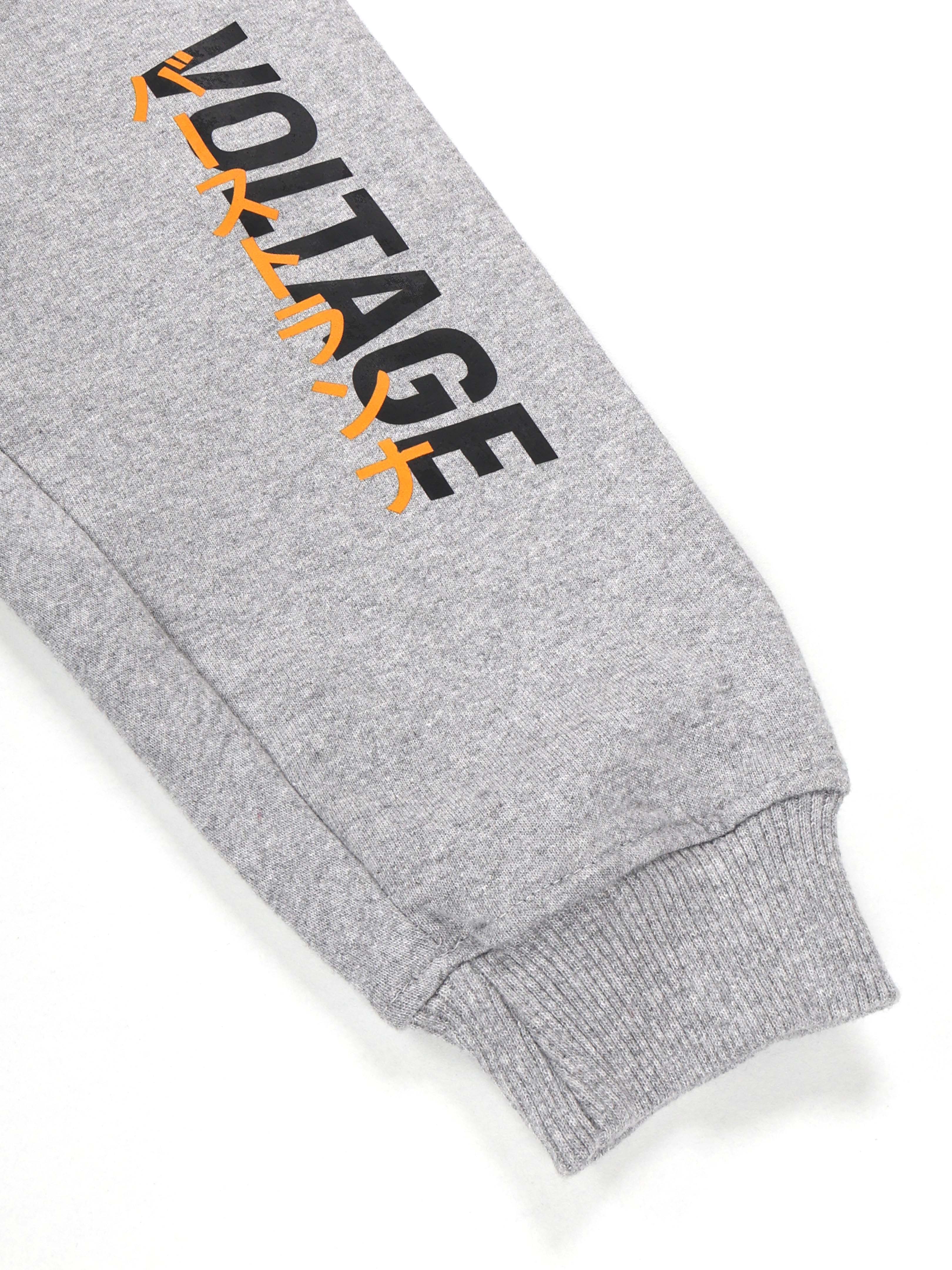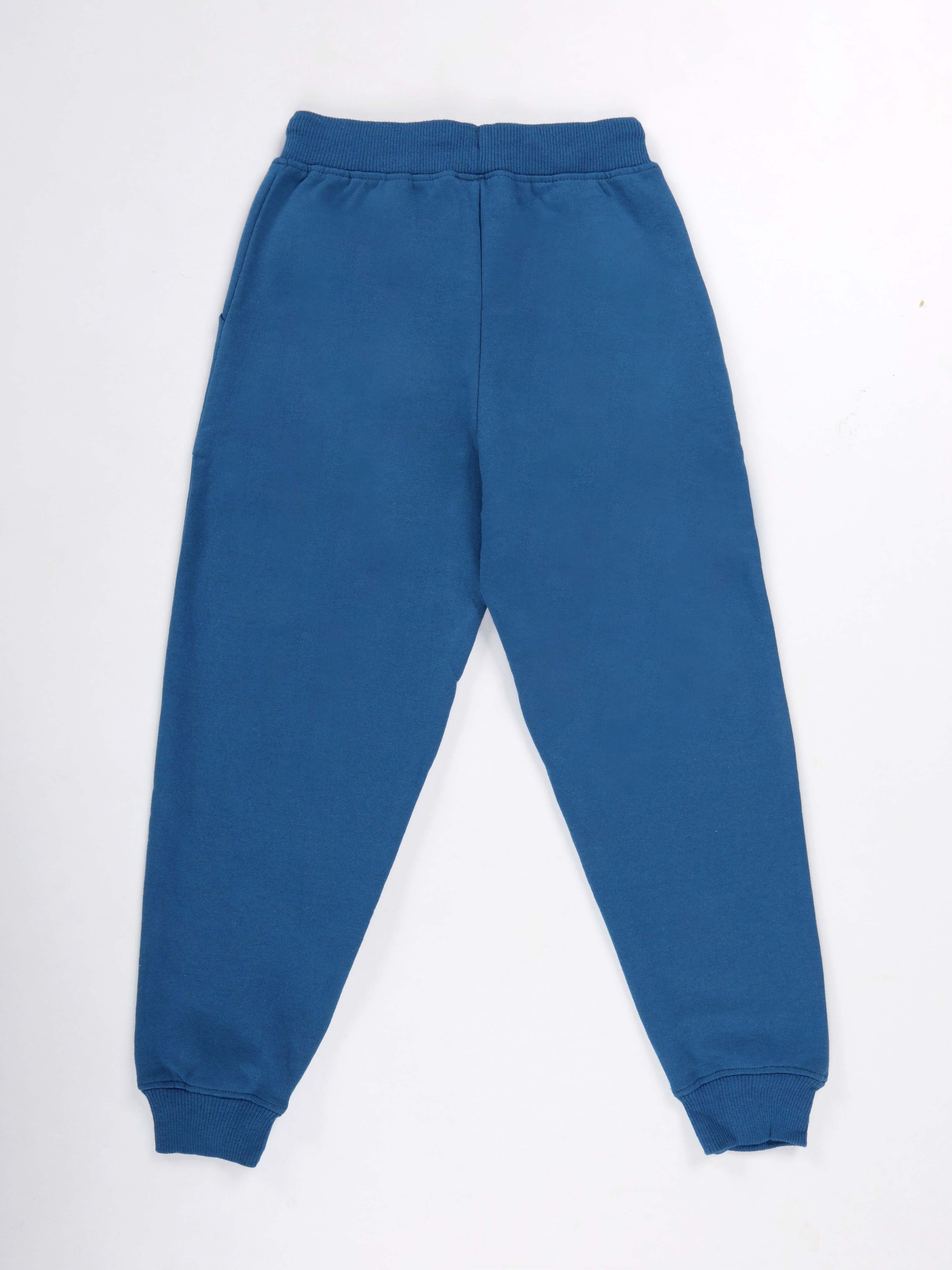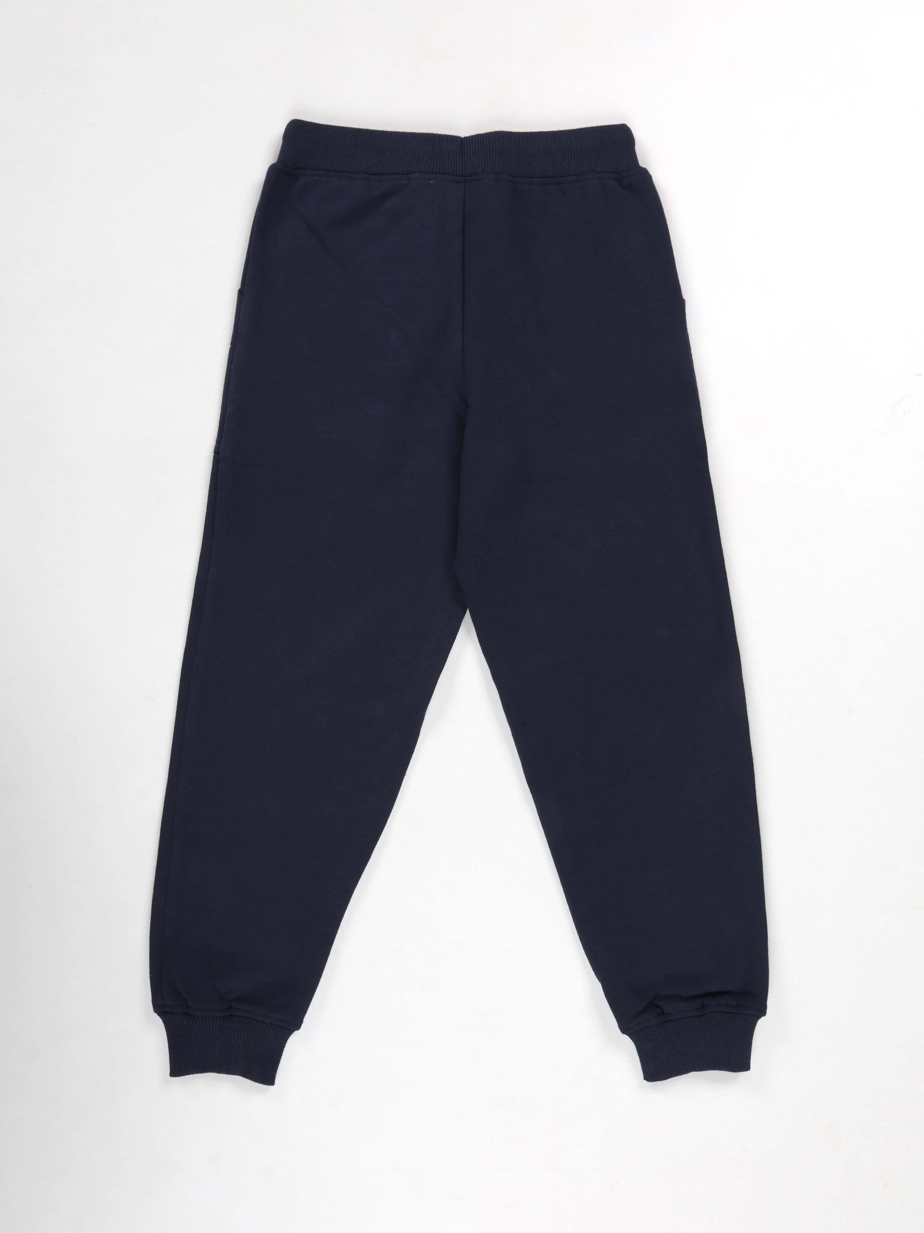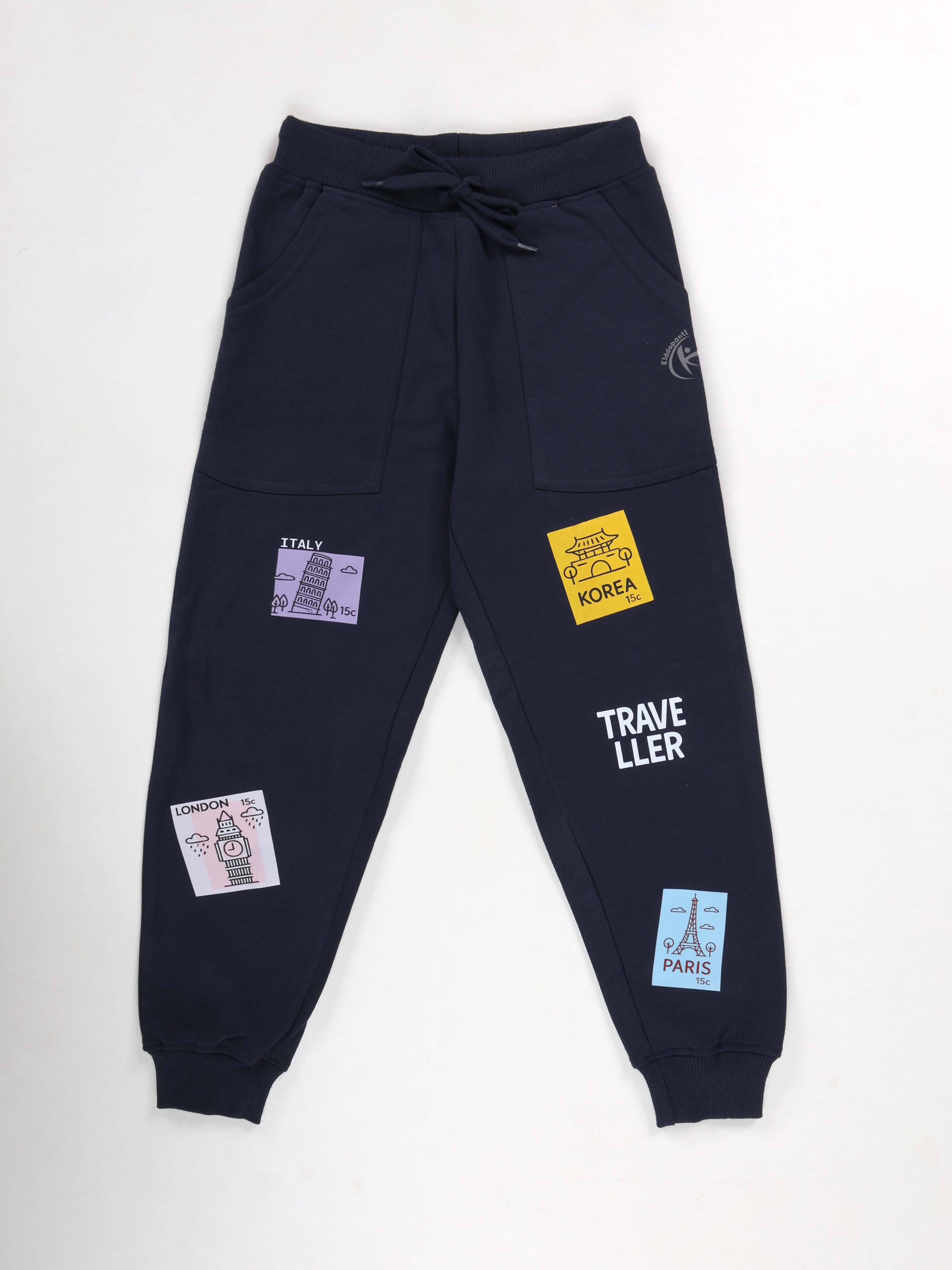 KiddoPanti Boys Printed Fleece Track Pant With Multi Badge