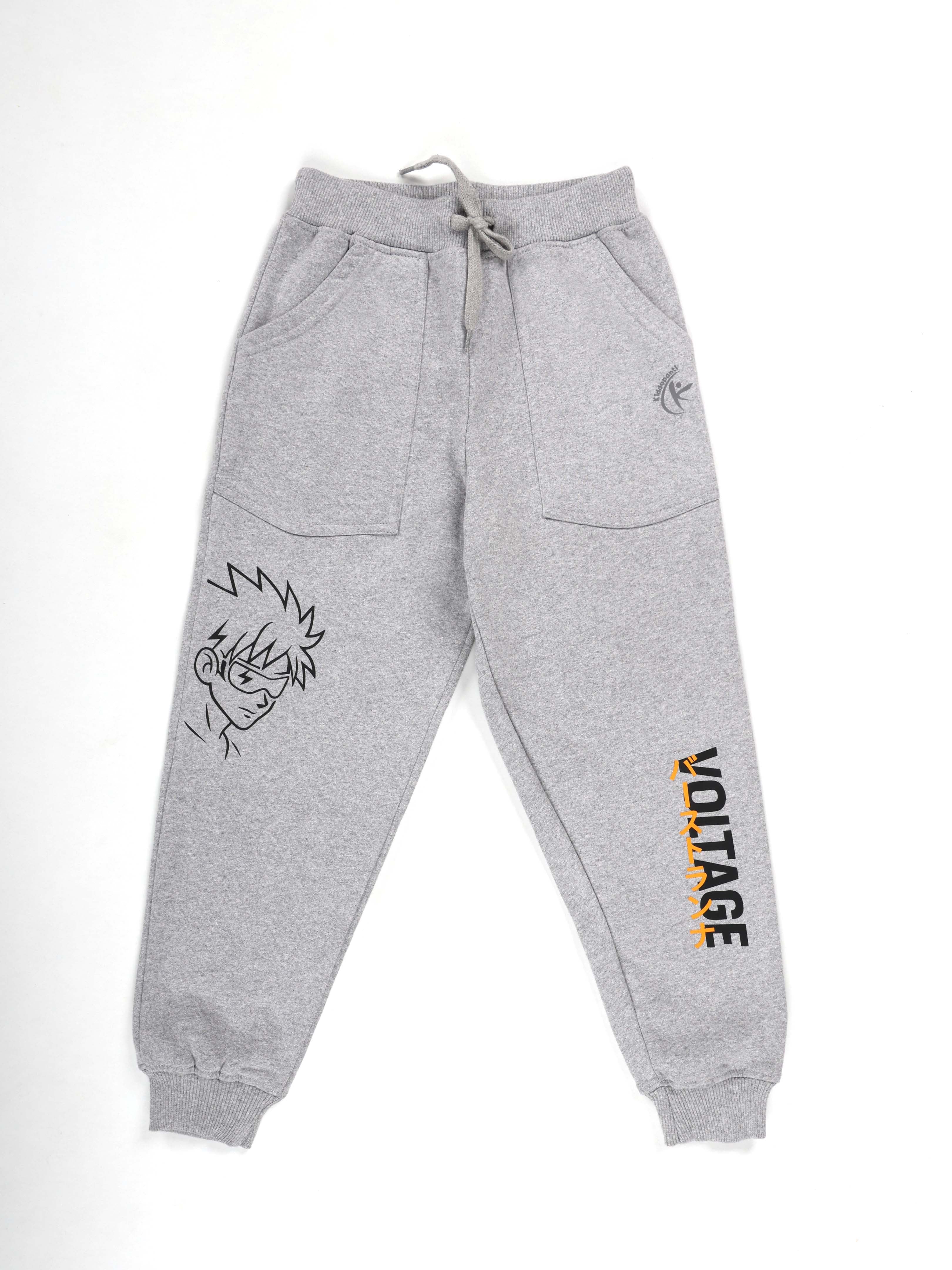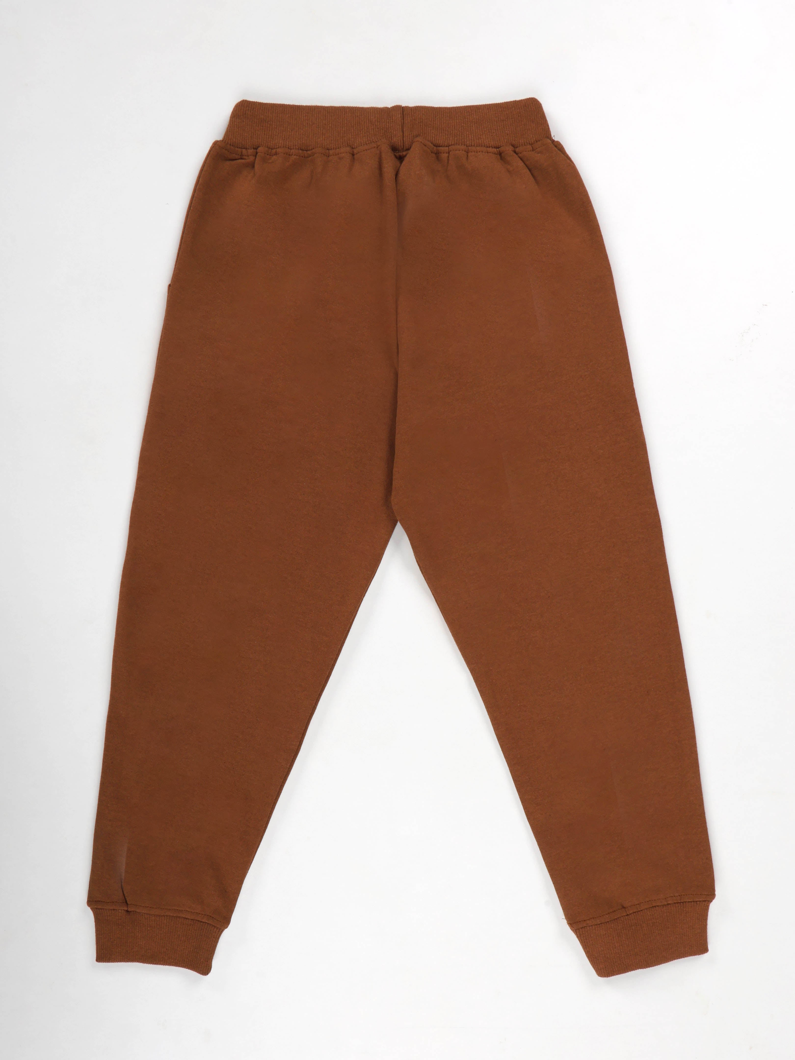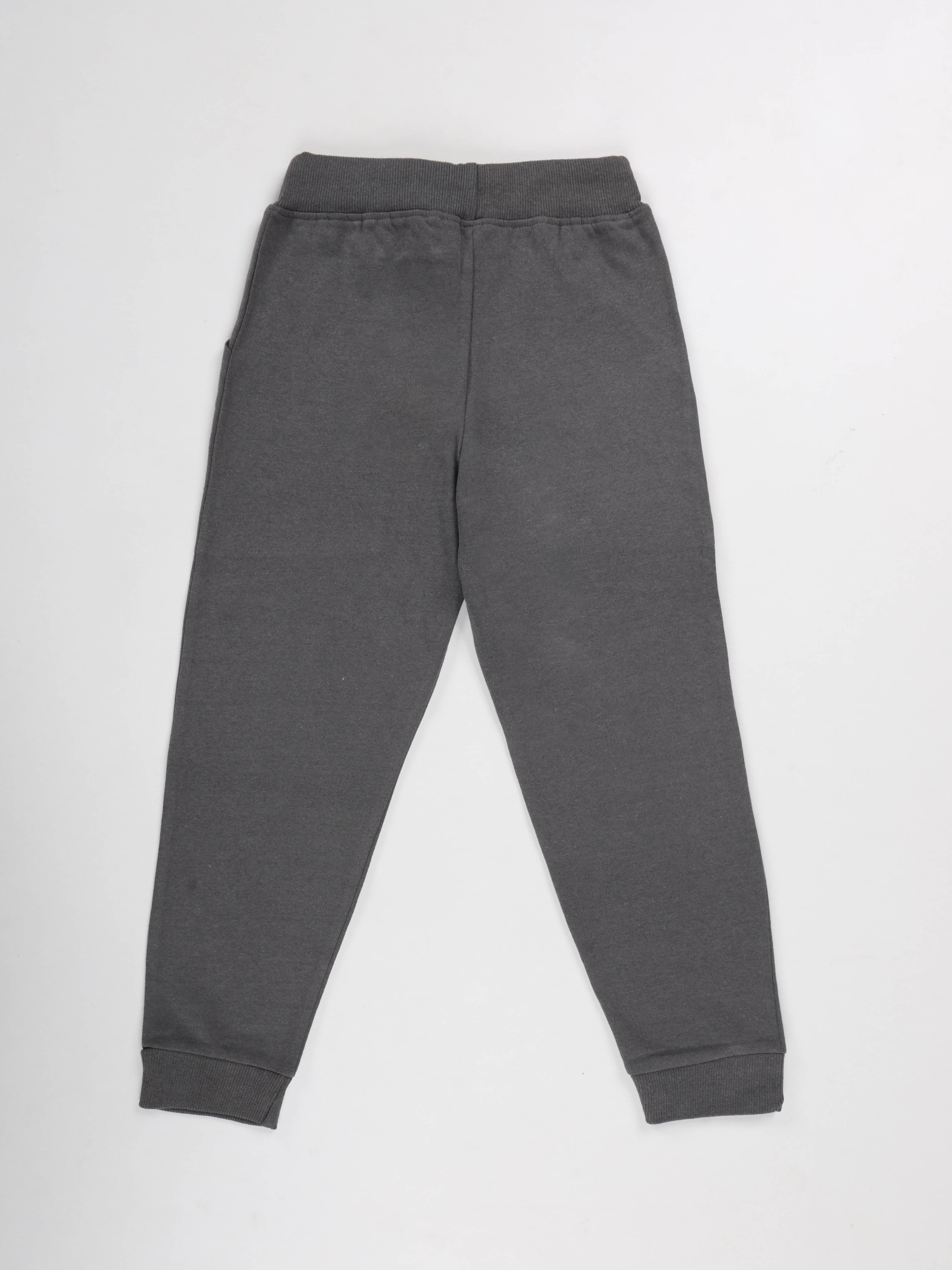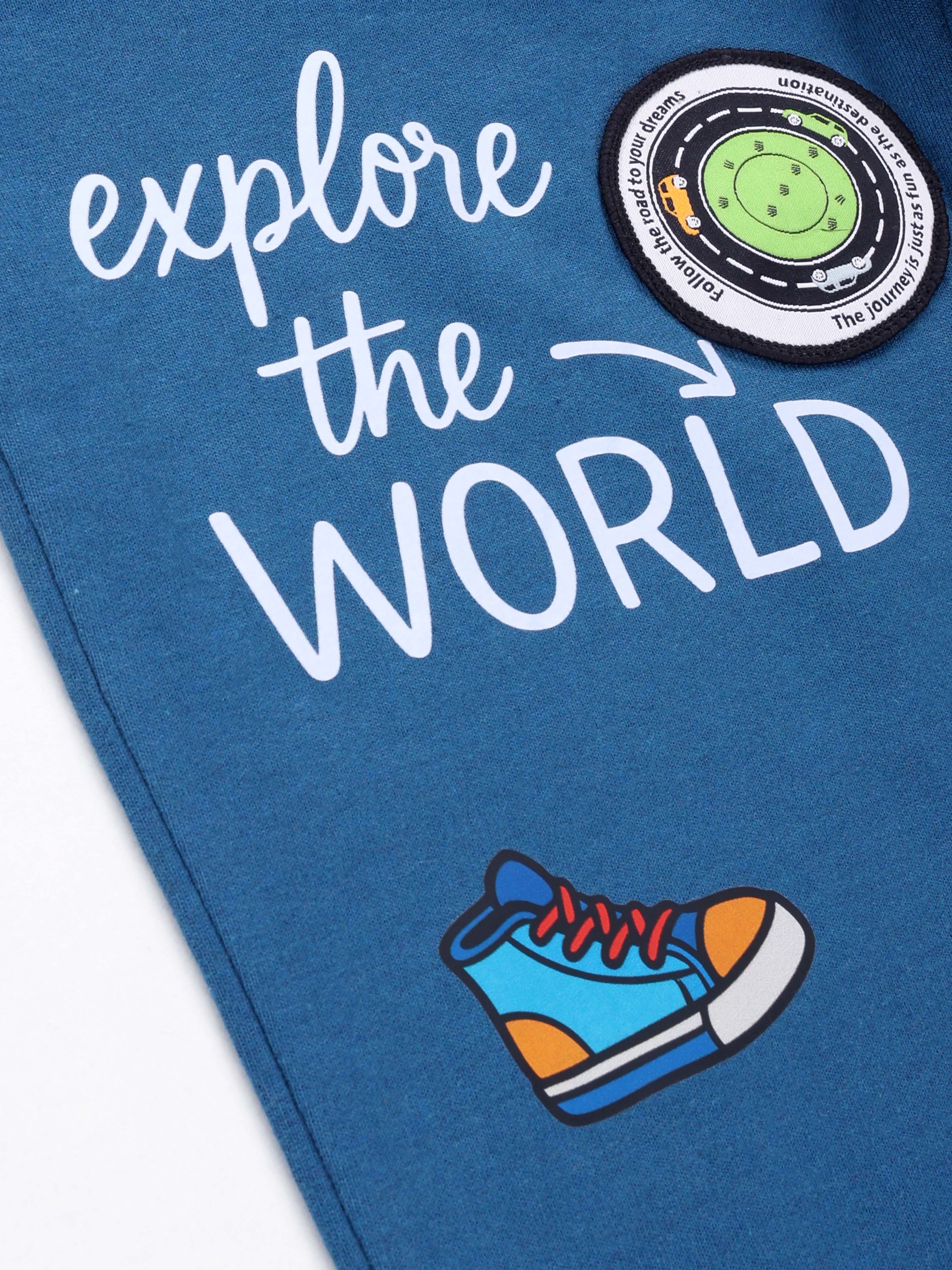 KiddoPanti Boys Printed Fleece Track Pant With Multi Badge