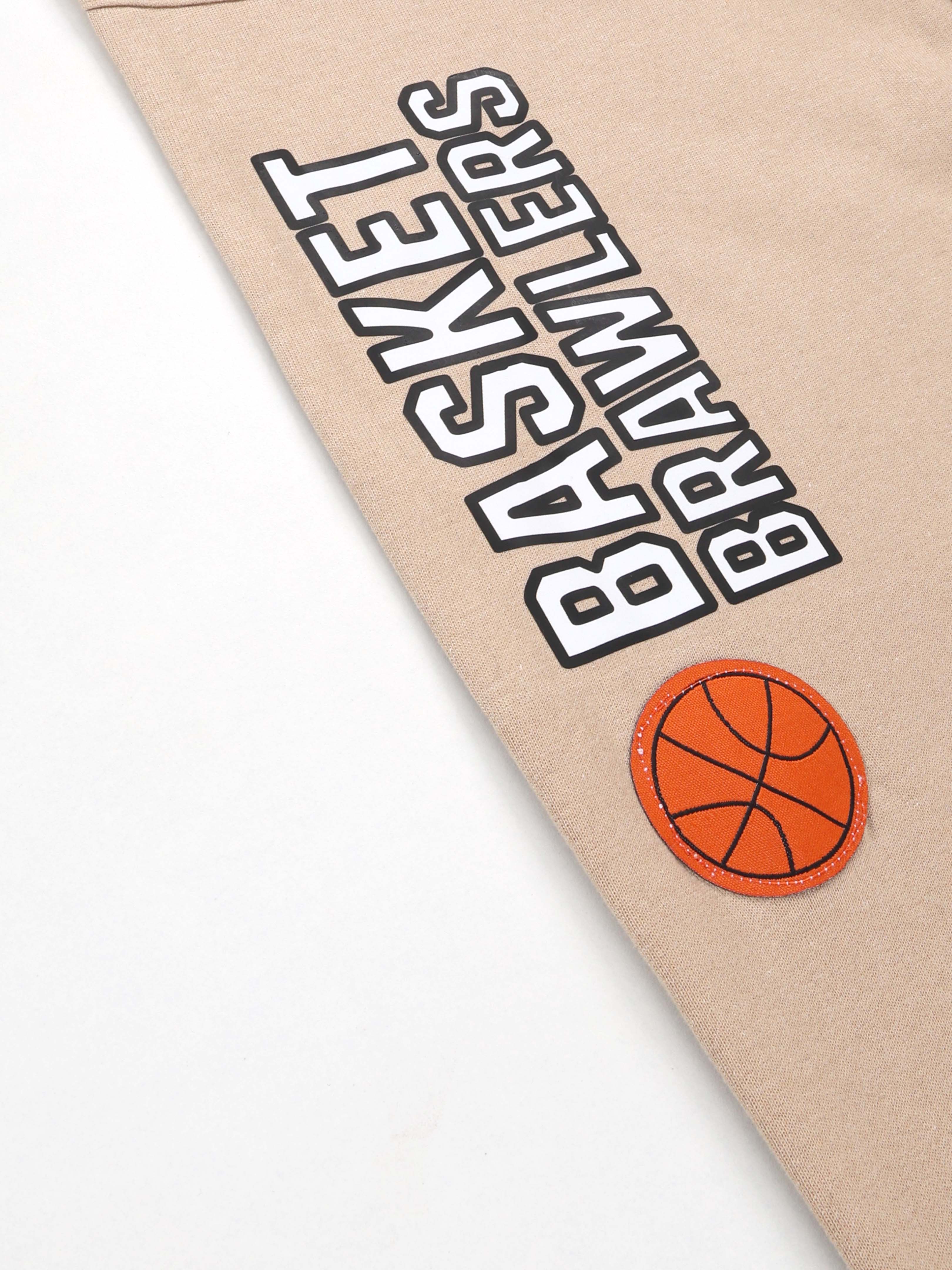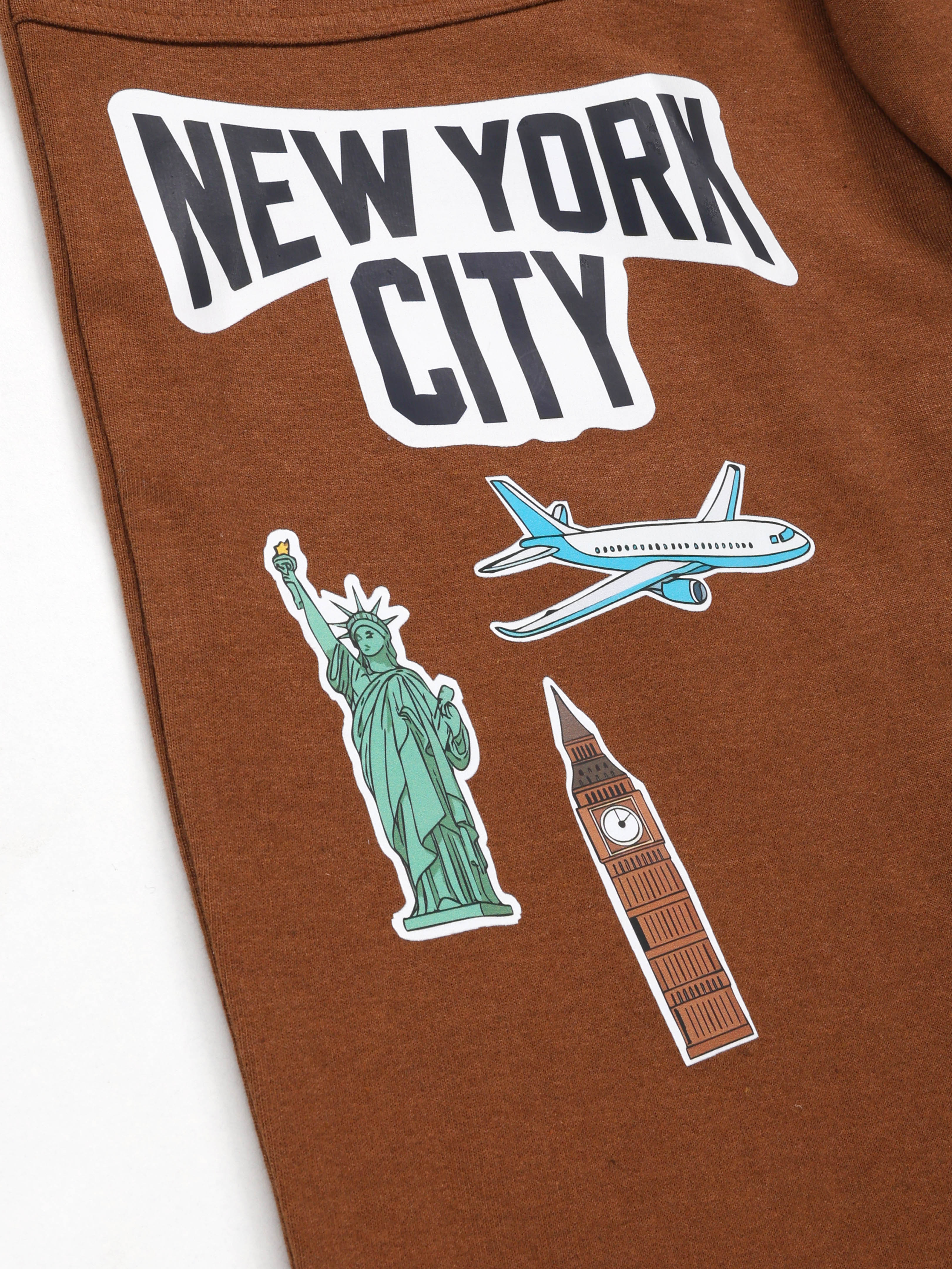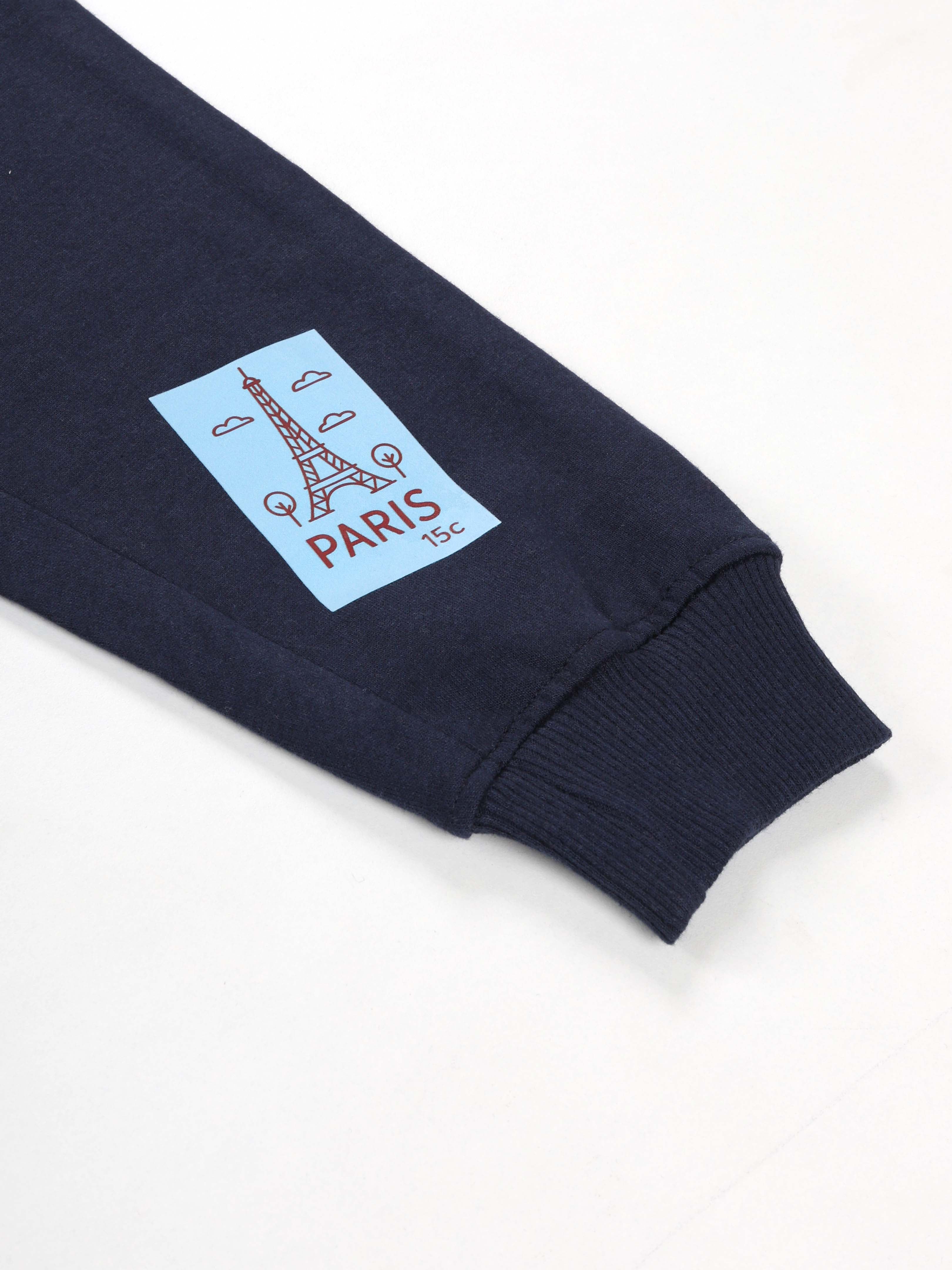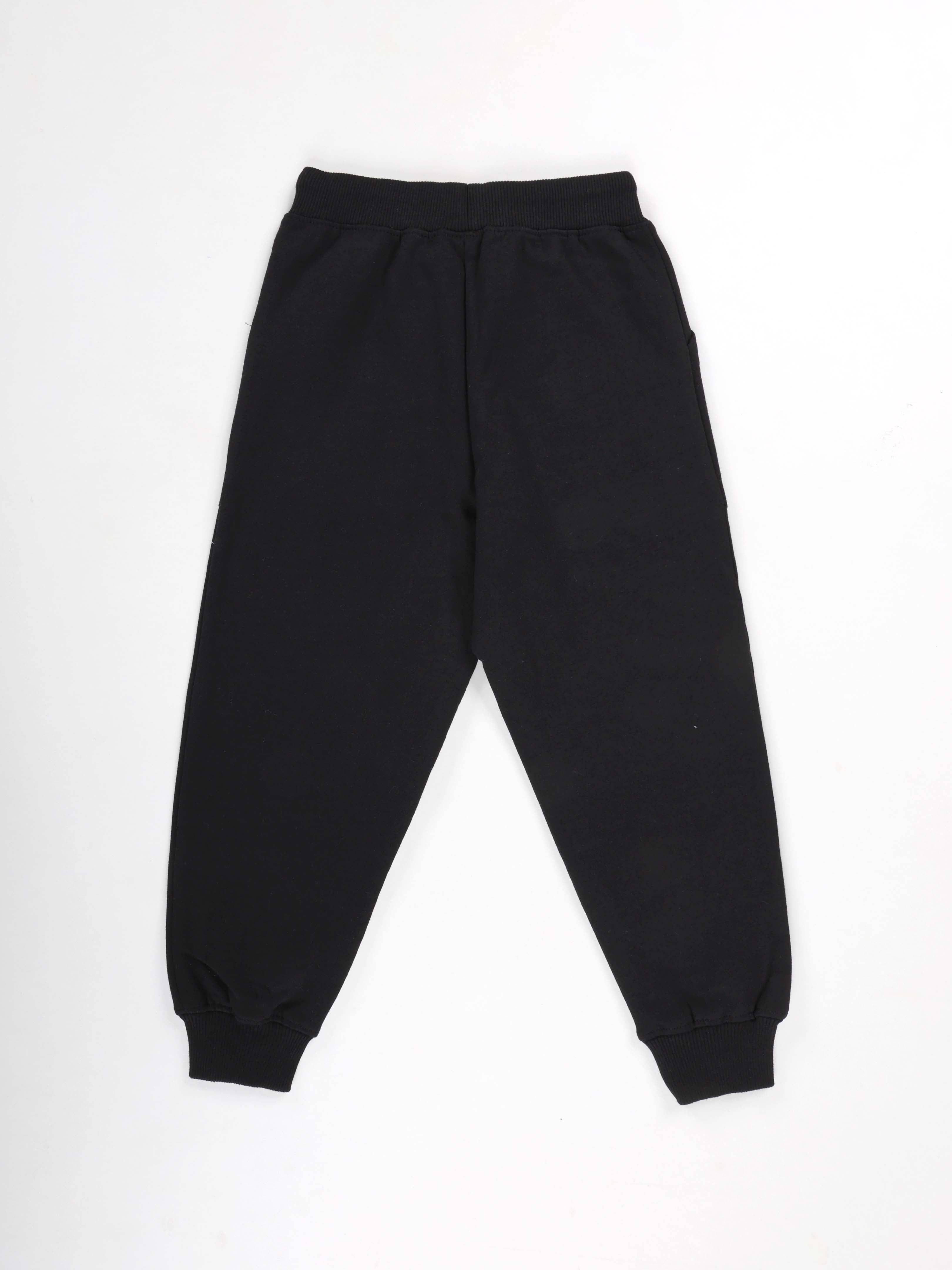 KiddoPanti Boys Printed Fleece Track Pant With Multi Badge