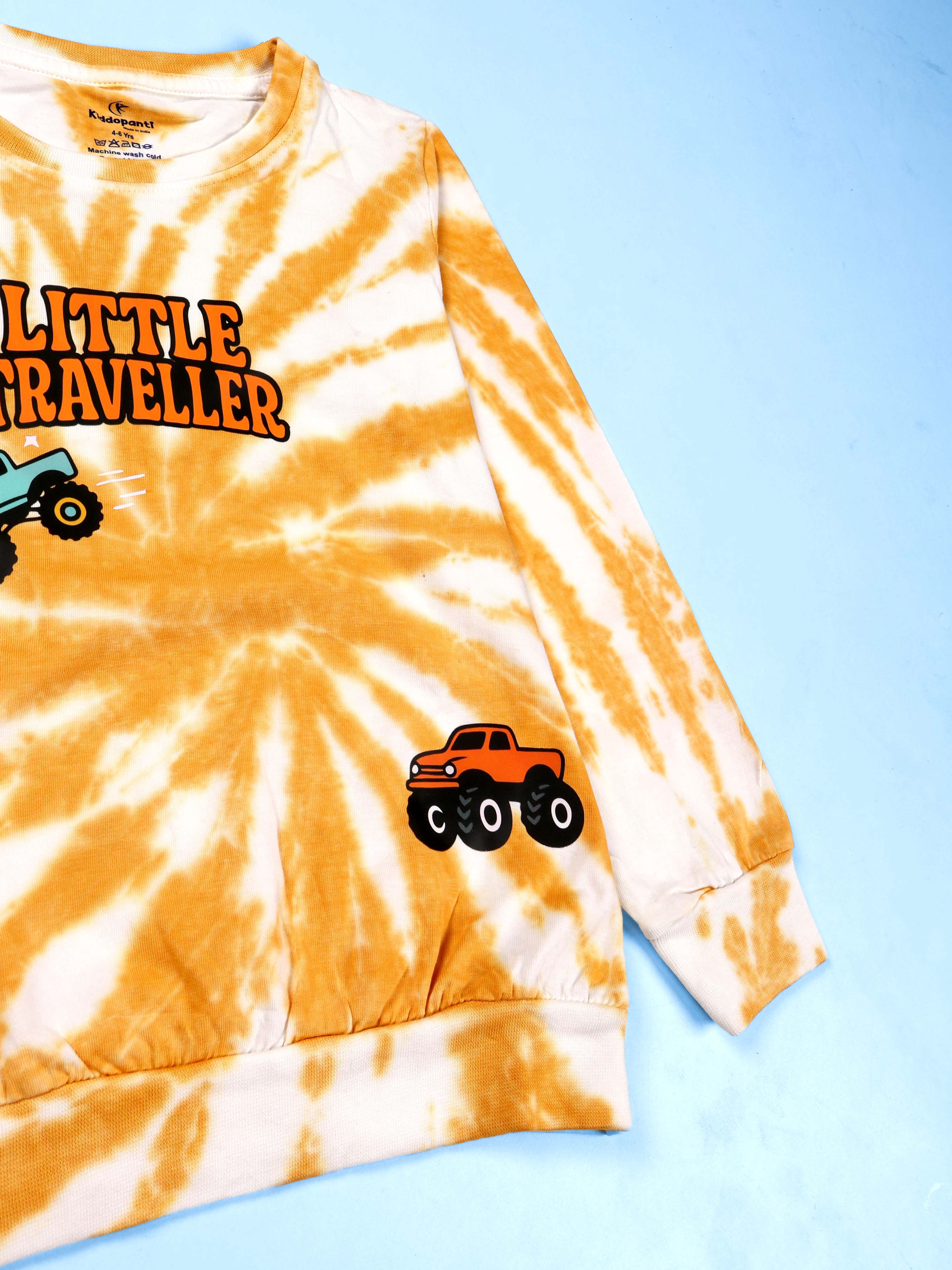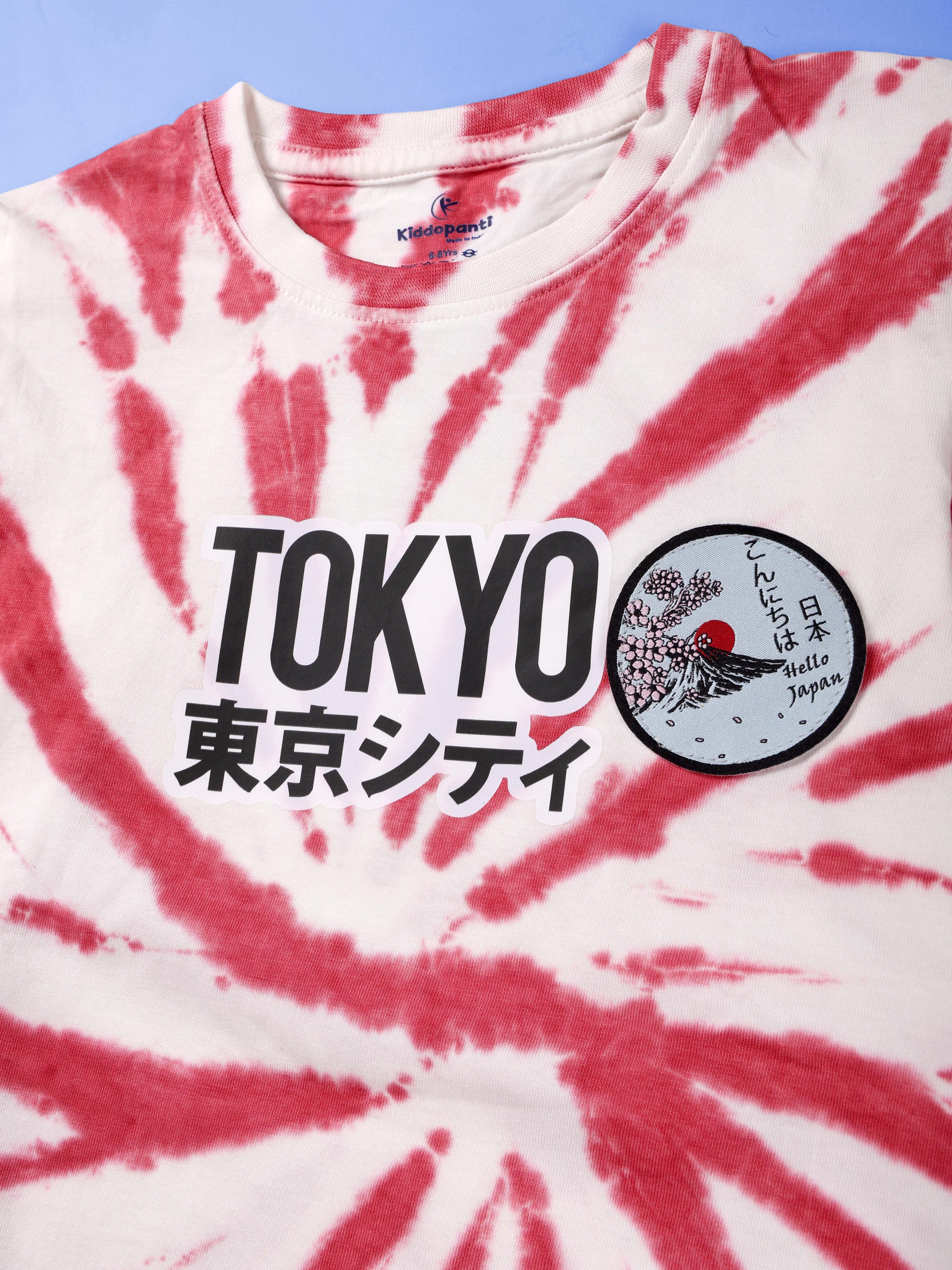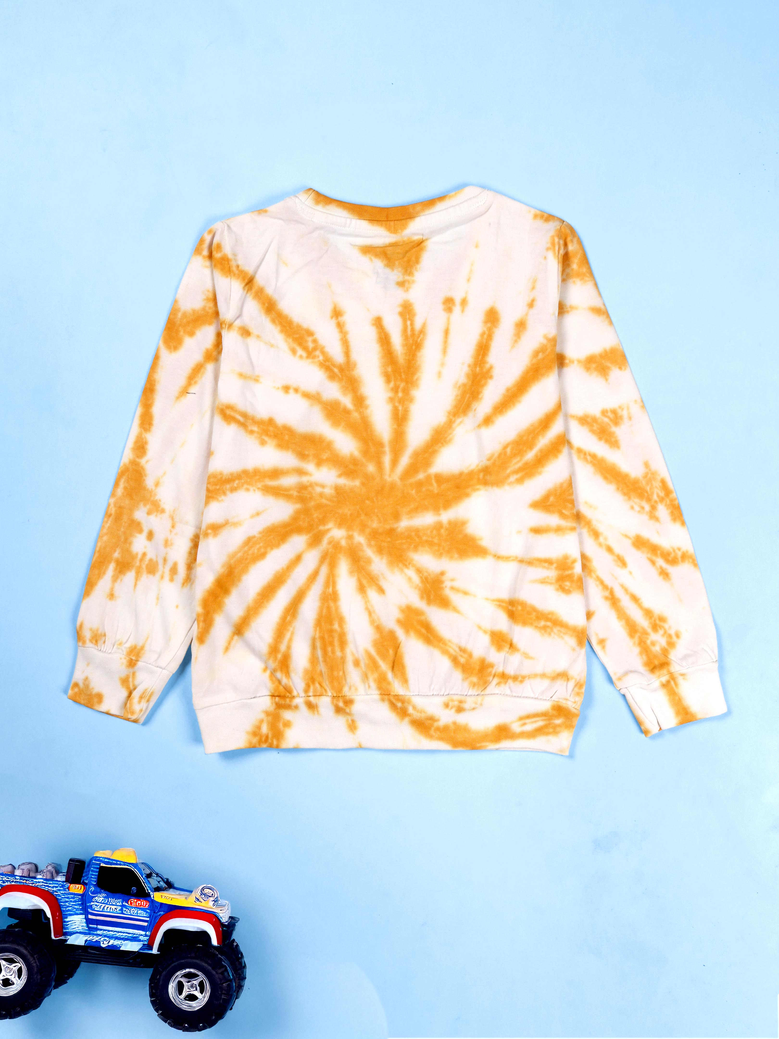 Kiddopanti Boys Cotton Knit Full Sleeves Tie and Dye Badges and Printed Tee