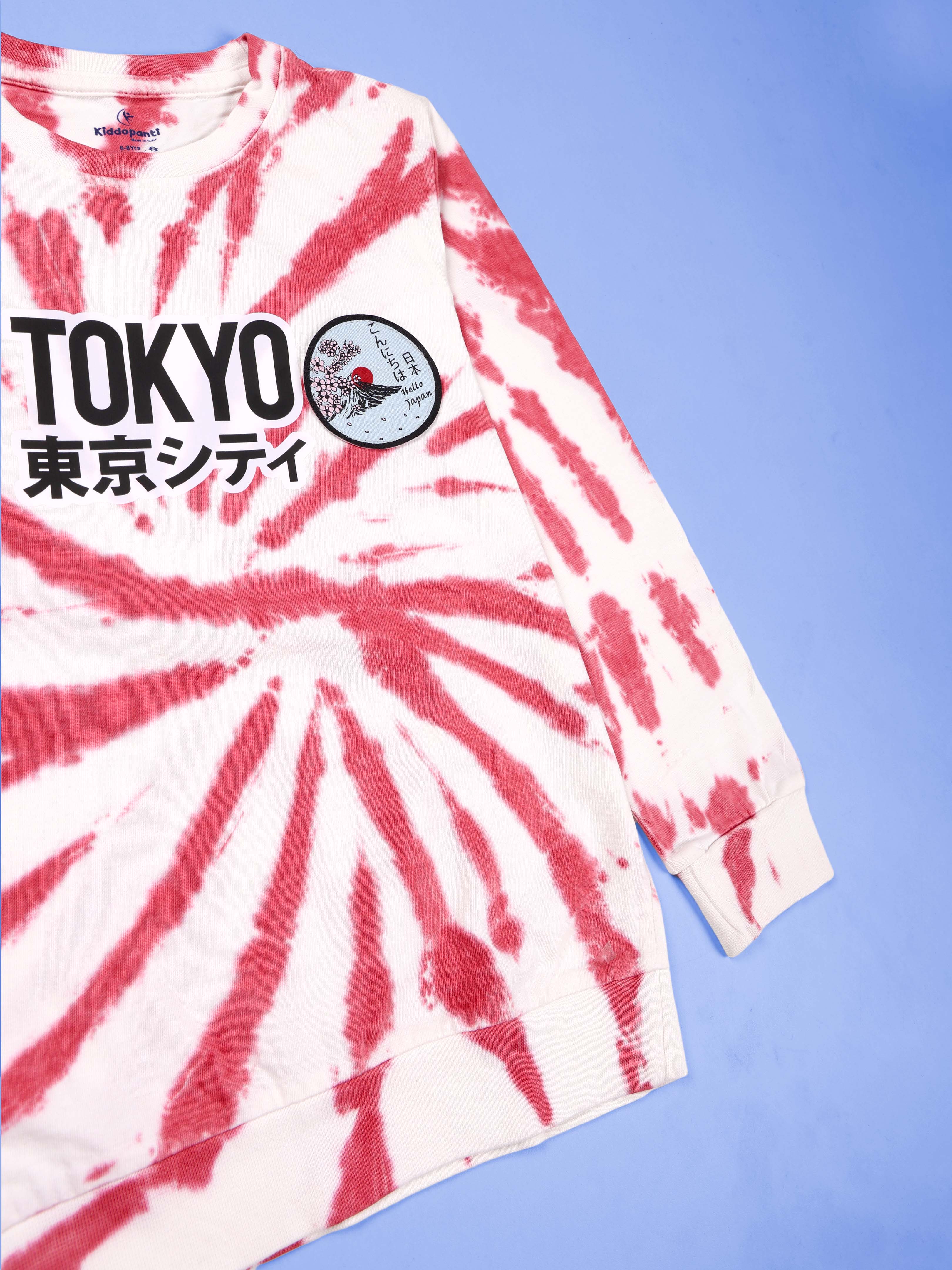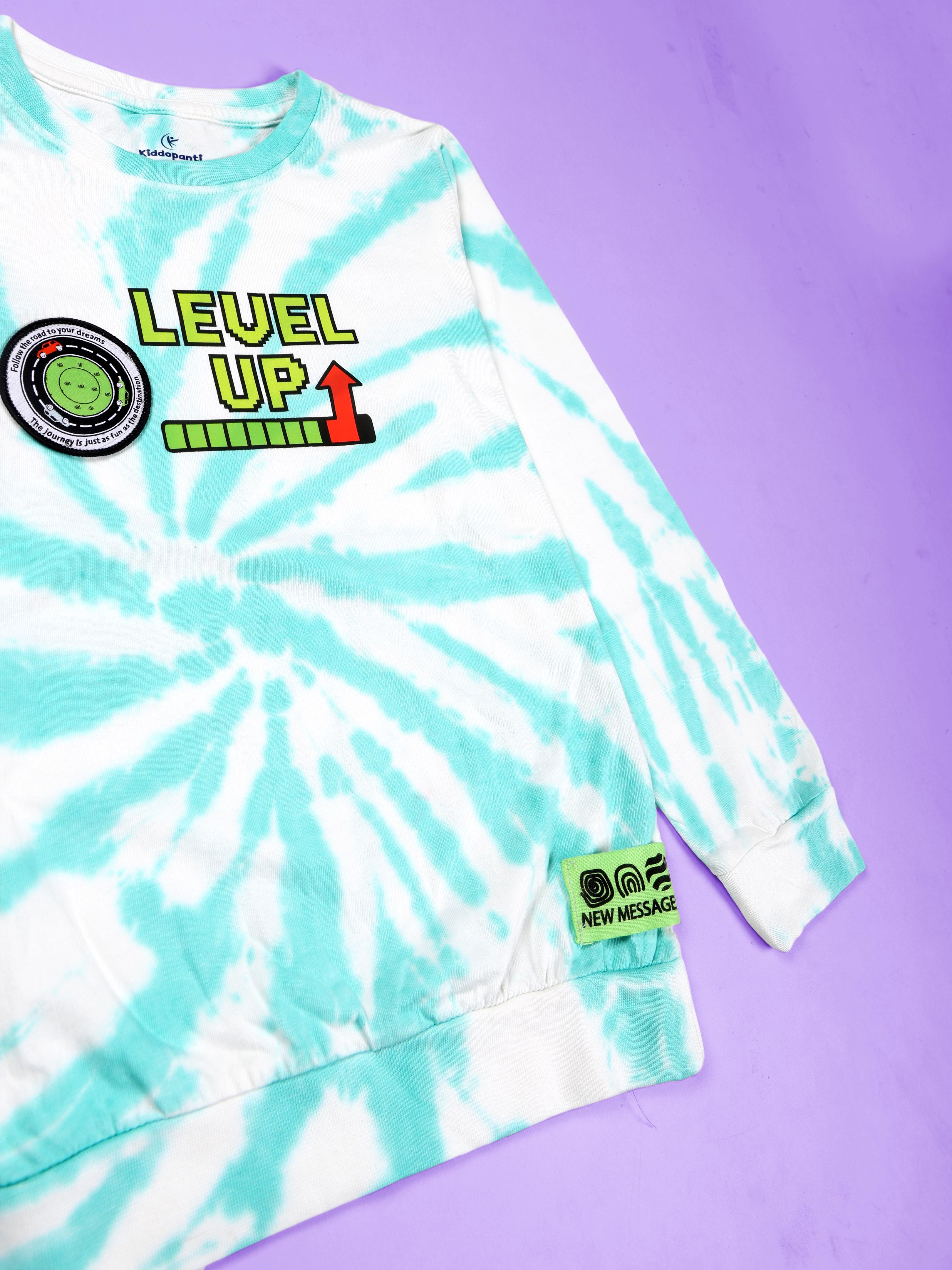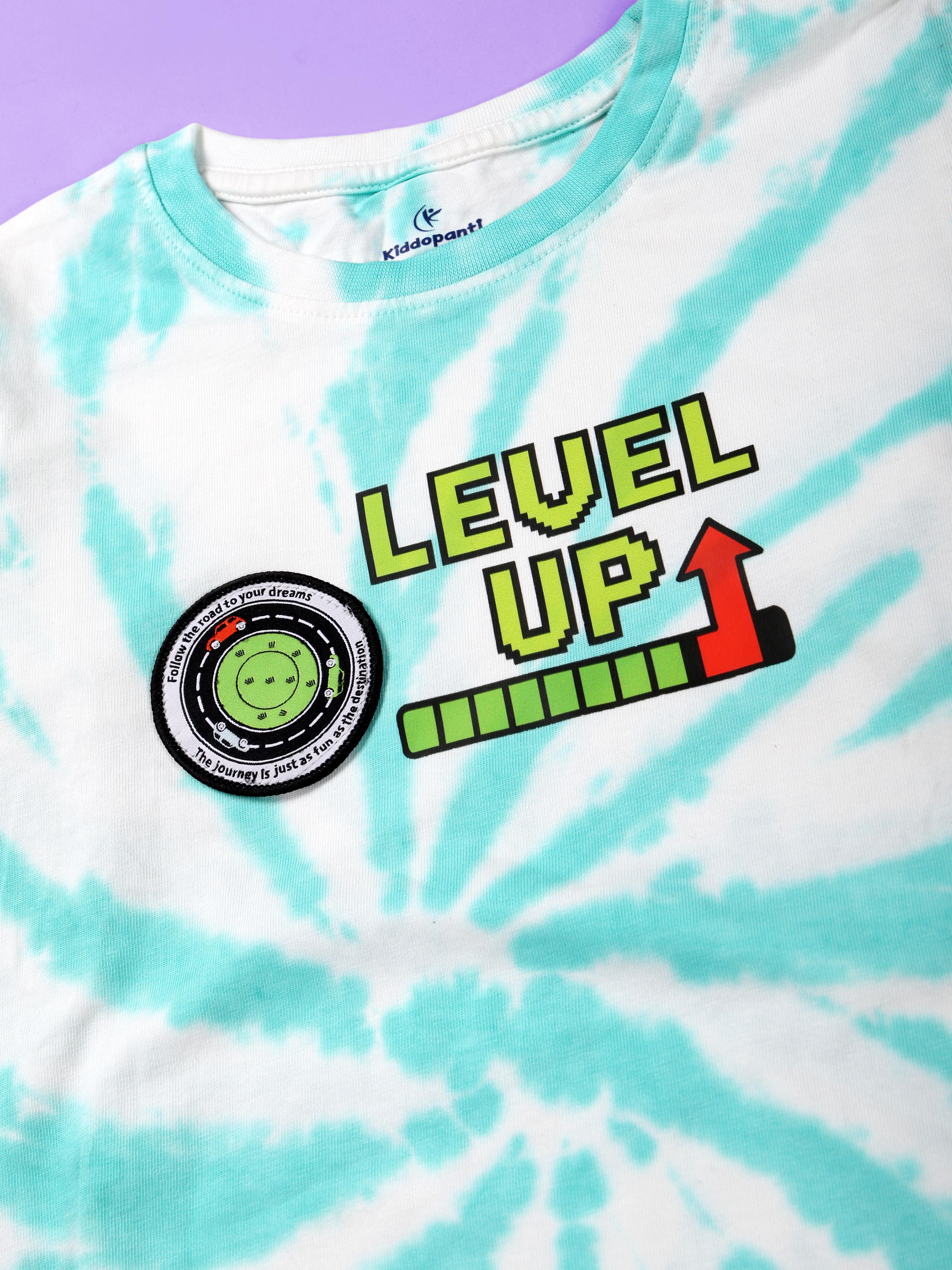 Kiddopanti Boys Cotton Knit Full Sleeves Tie and Dye Badges and Printed Tee