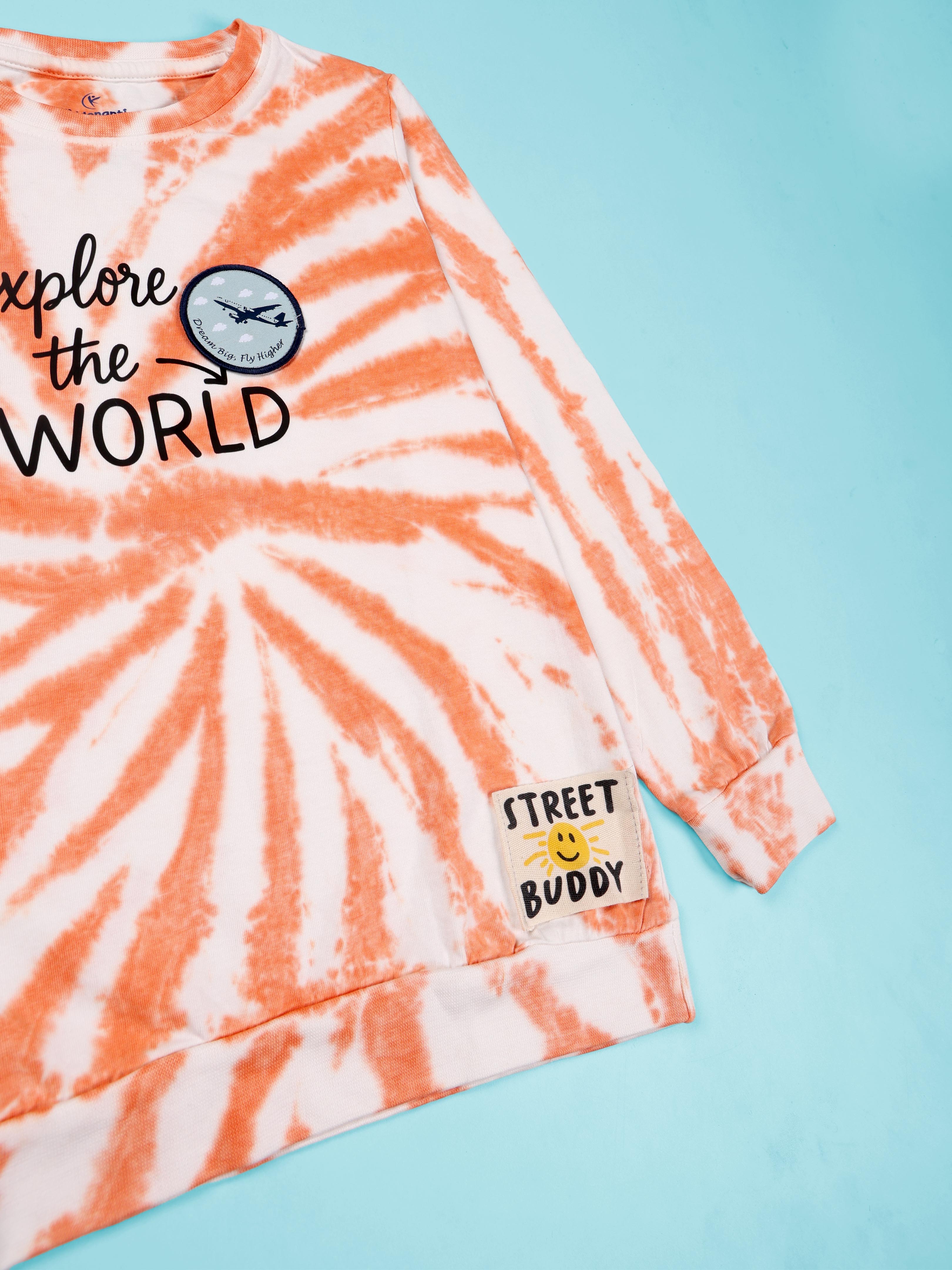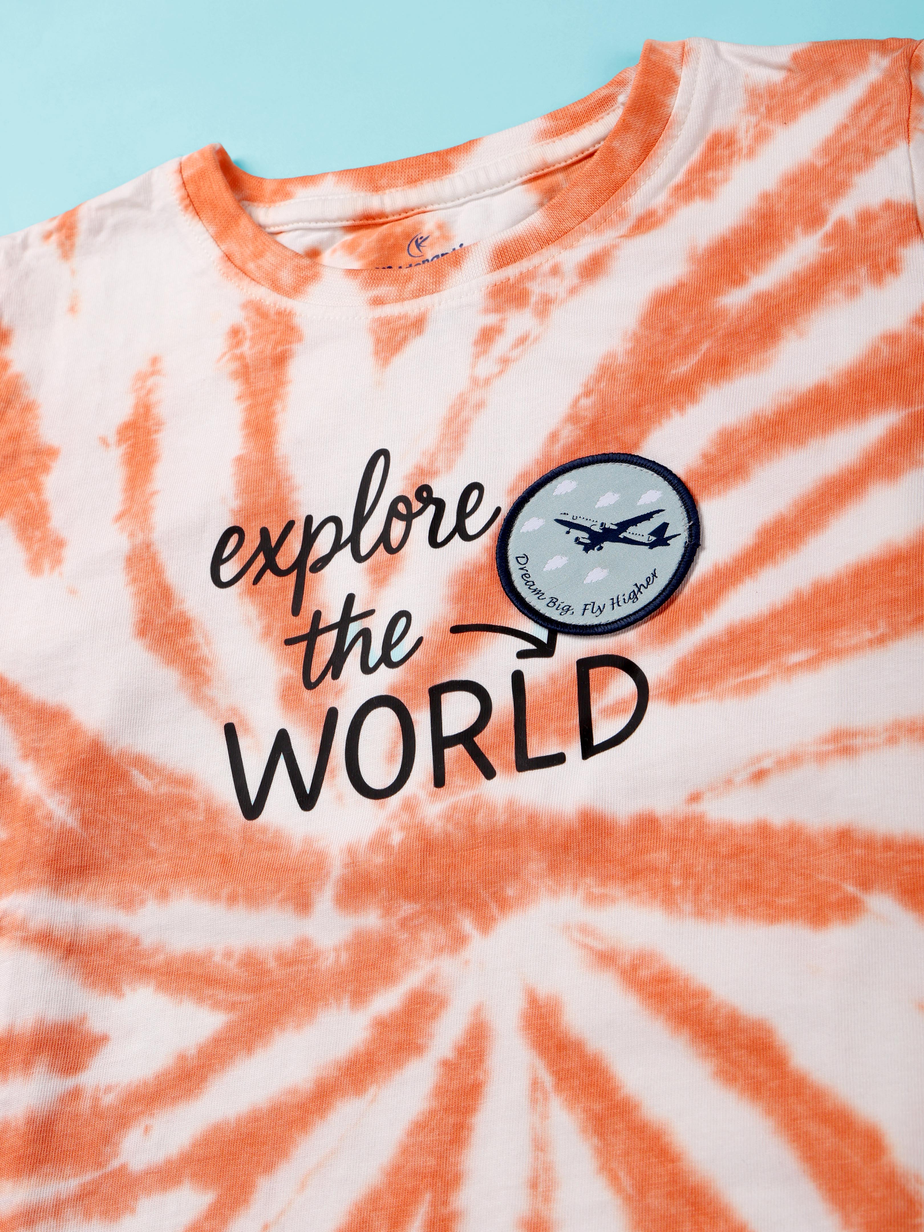 Let your little explorer step out in style with this Kiddopanti Explore The World tie-dye T-shirt. Designed with a bold spiral tie-dye effect and fun travel-themed graphics, this tee brings a vibrant, adventurous vibe to everyday dressing. Made from soft, breathable cotton knit, it keeps your child comfy during school days, playtime, and casual outings.