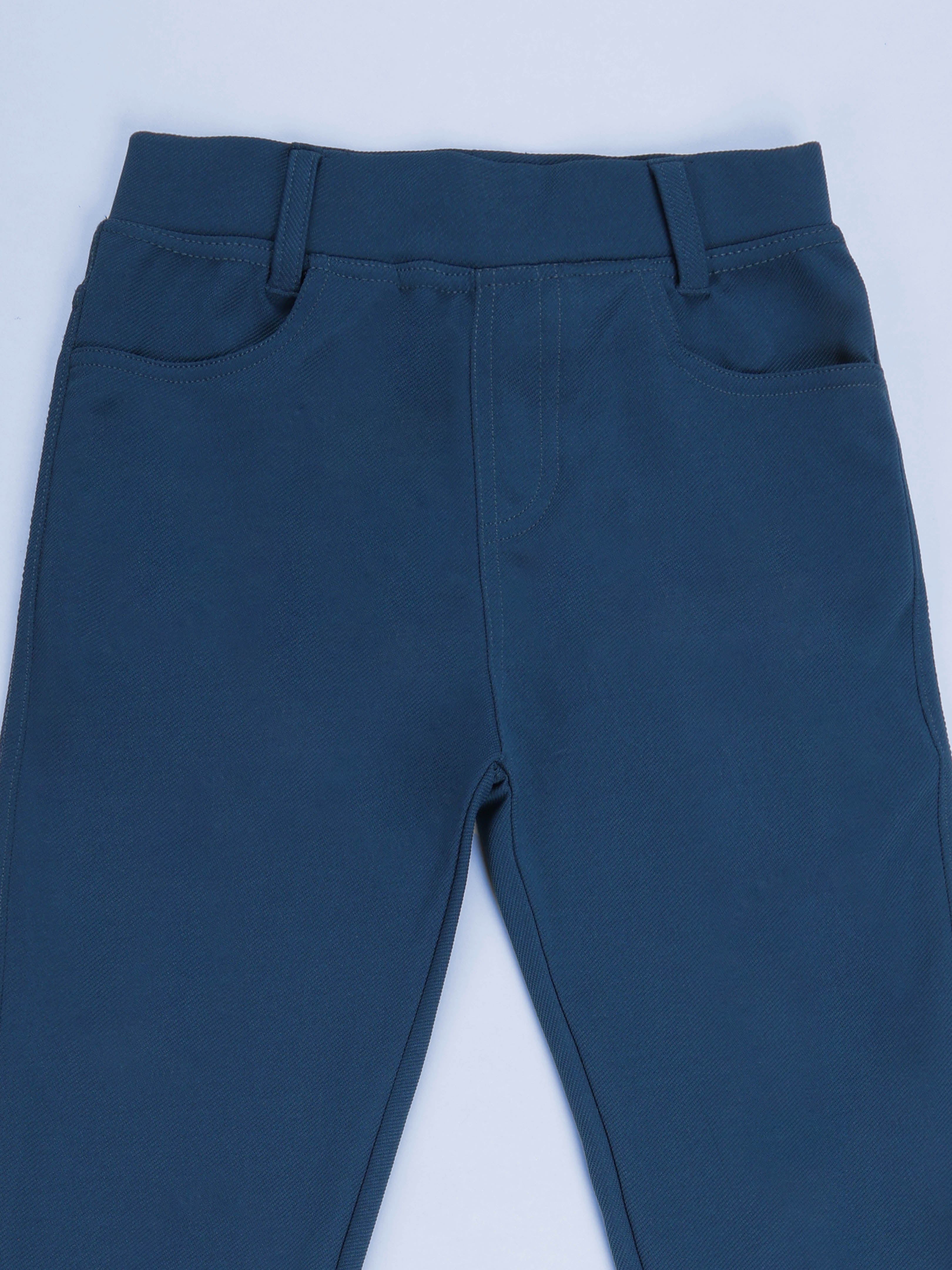 Kiddopanti brings to you the latest in fashion for your smart-dressing young ones. These solid full-length jeggings, crafted from soft polyester woven Spandex twill, are designed for comfort and style. With a stretchable elastic waistband and practical pocket detailing, these jeggings are a perfect pick for daily wear or outings.