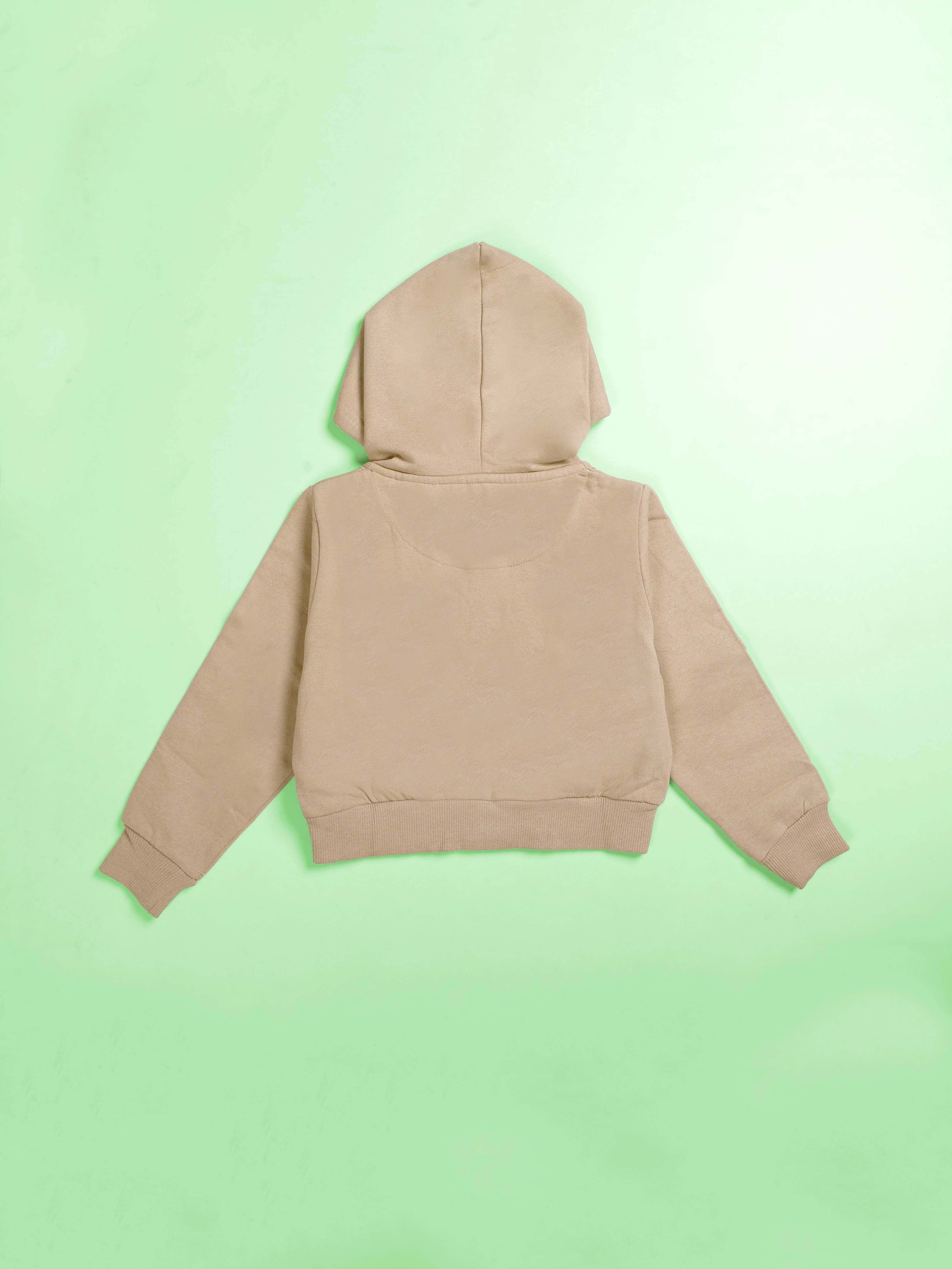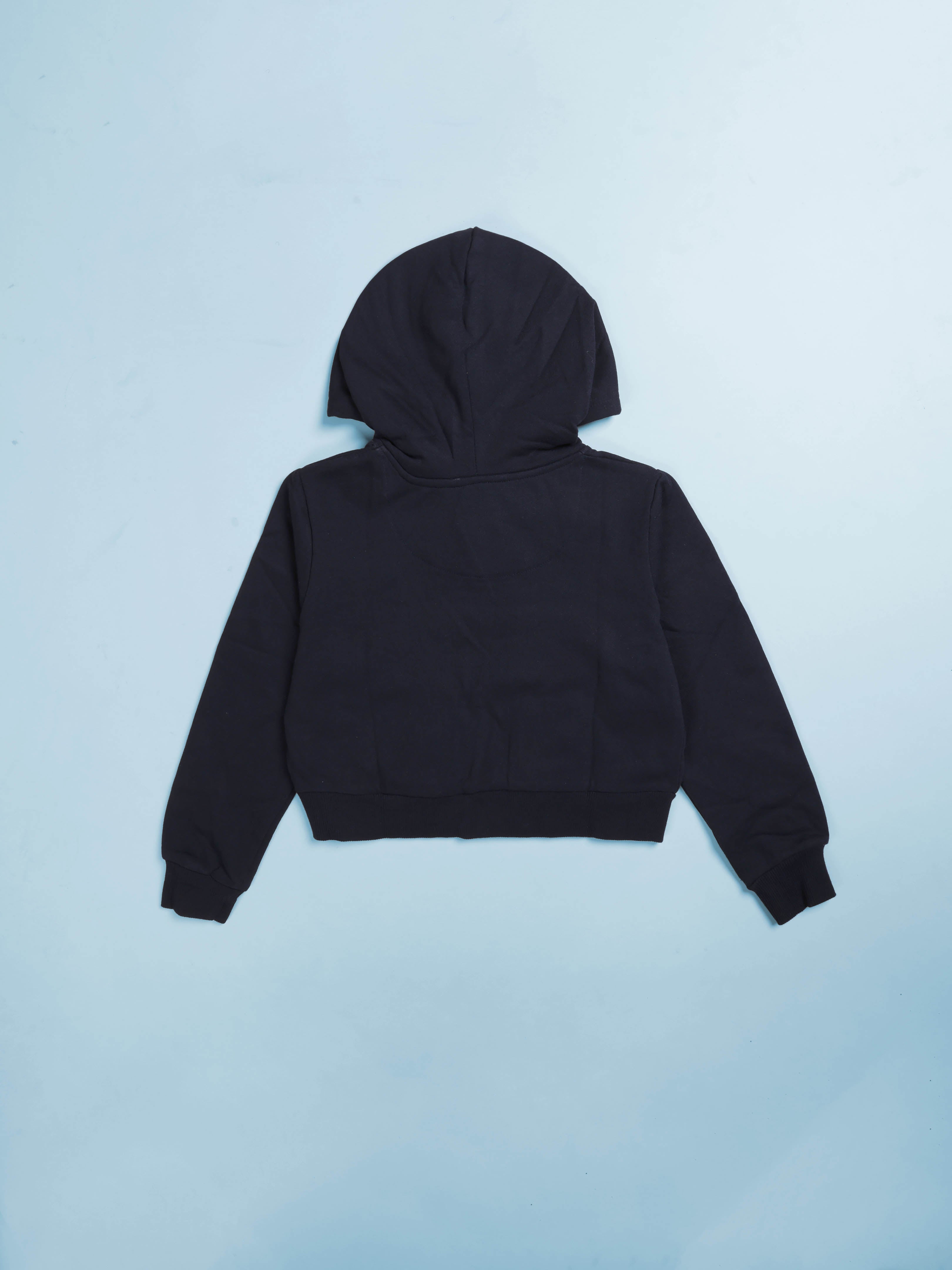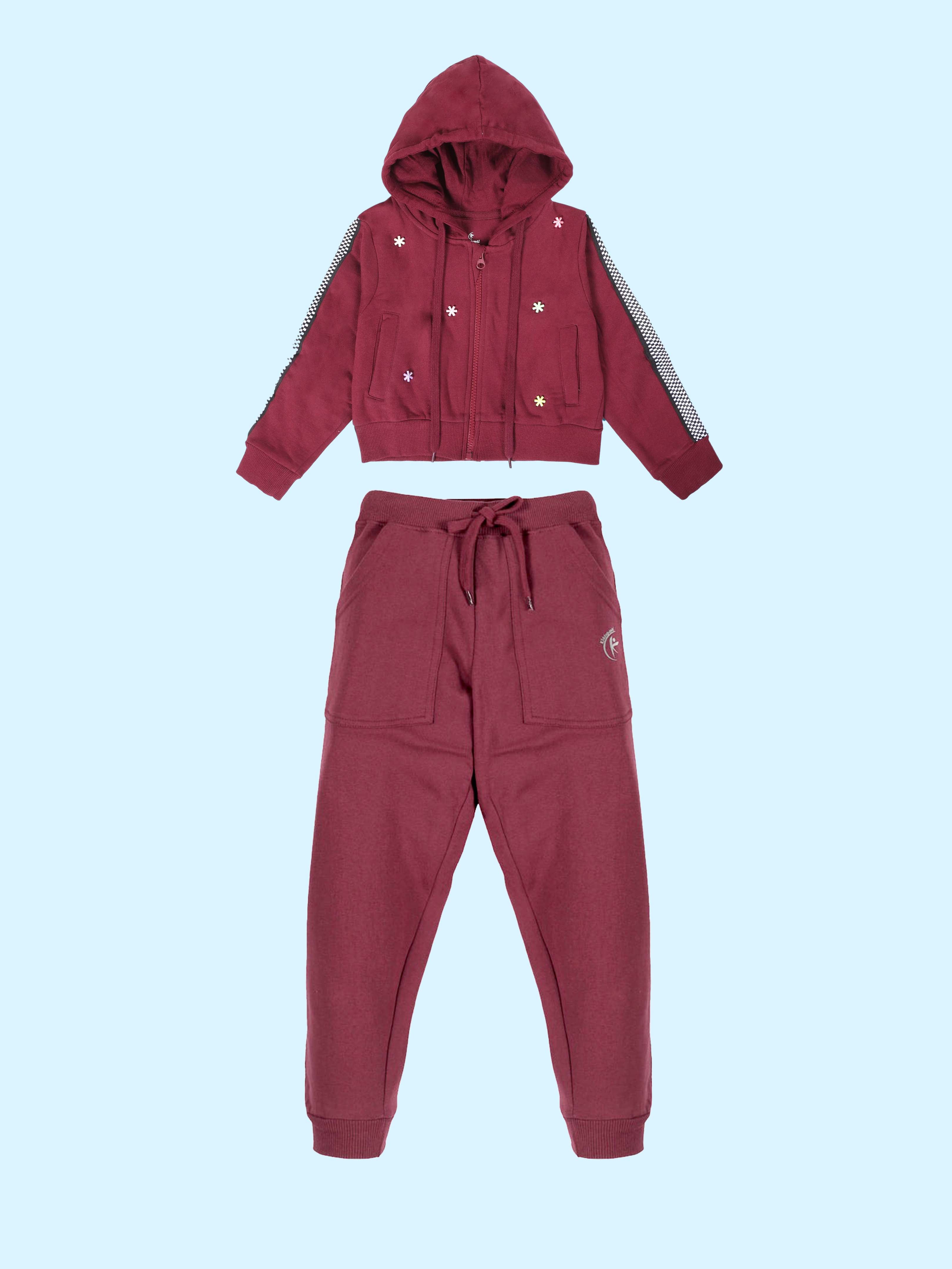 Girls Printed Front zip open Hooded Crop Length Sweatshirts With Rhinestones & Track Pant Set