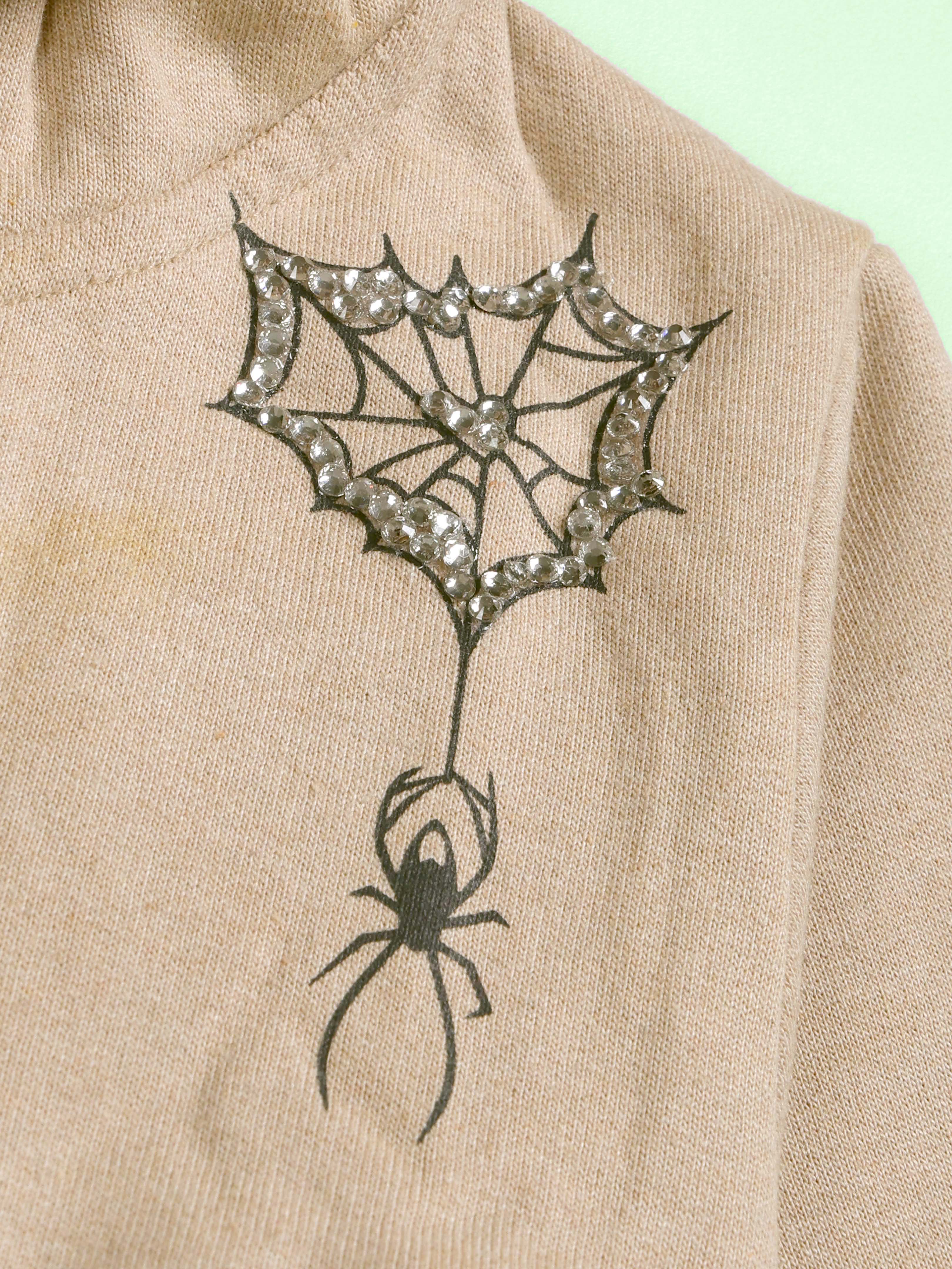 Warm iron if needed (avoid rhinestone area on hoodie)