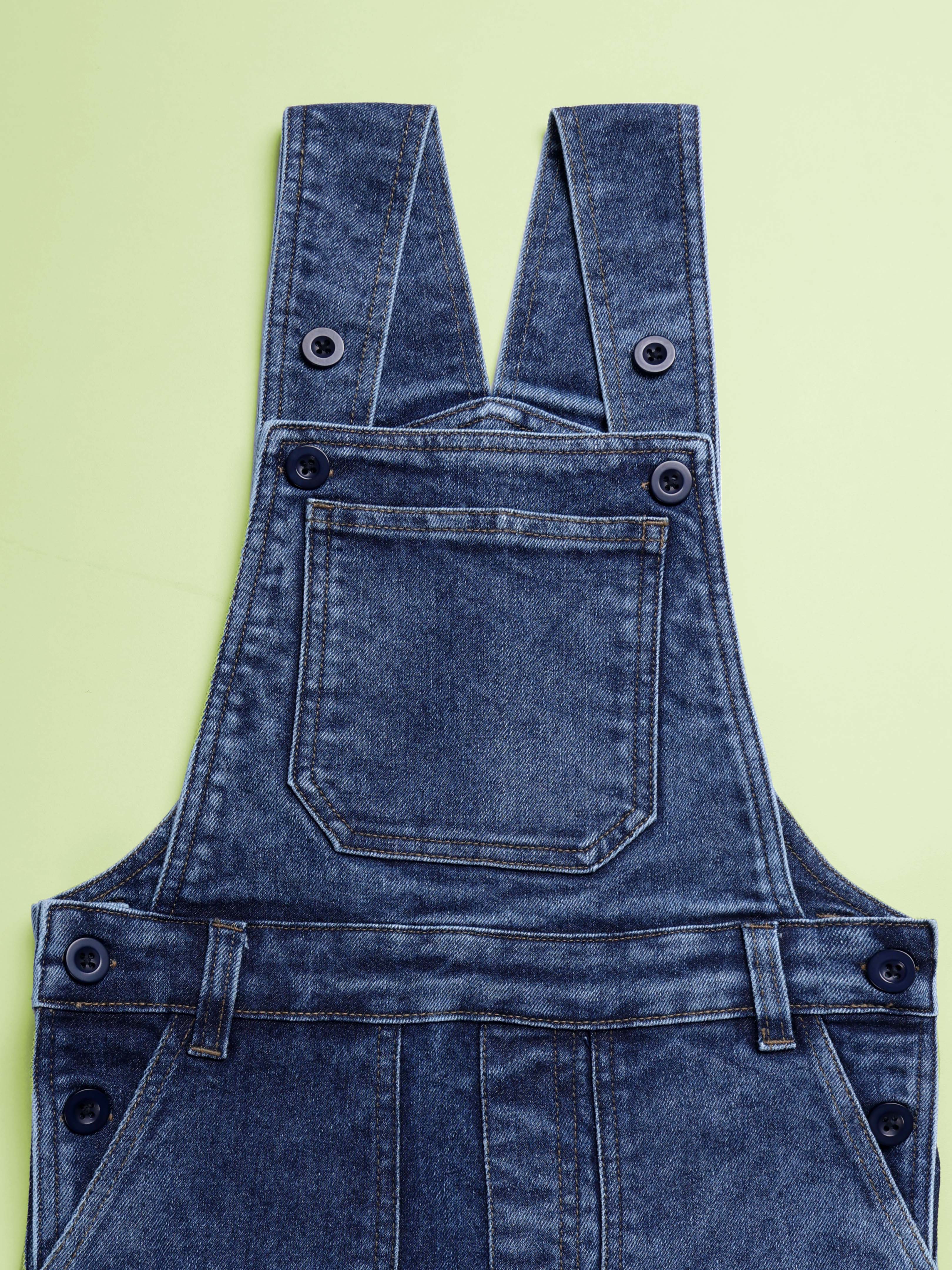 Dress your little one in streetwear style with Kiddopanti’s classic cargo pocket denim dungaree. Crafted from durable denim fabric, this full-length dungaree features a timeless wash and practical pockets that blend functionality with fashion. Paired with a vibrant tee, this piece is a must-have for every young trendsetter for their go to street style look!