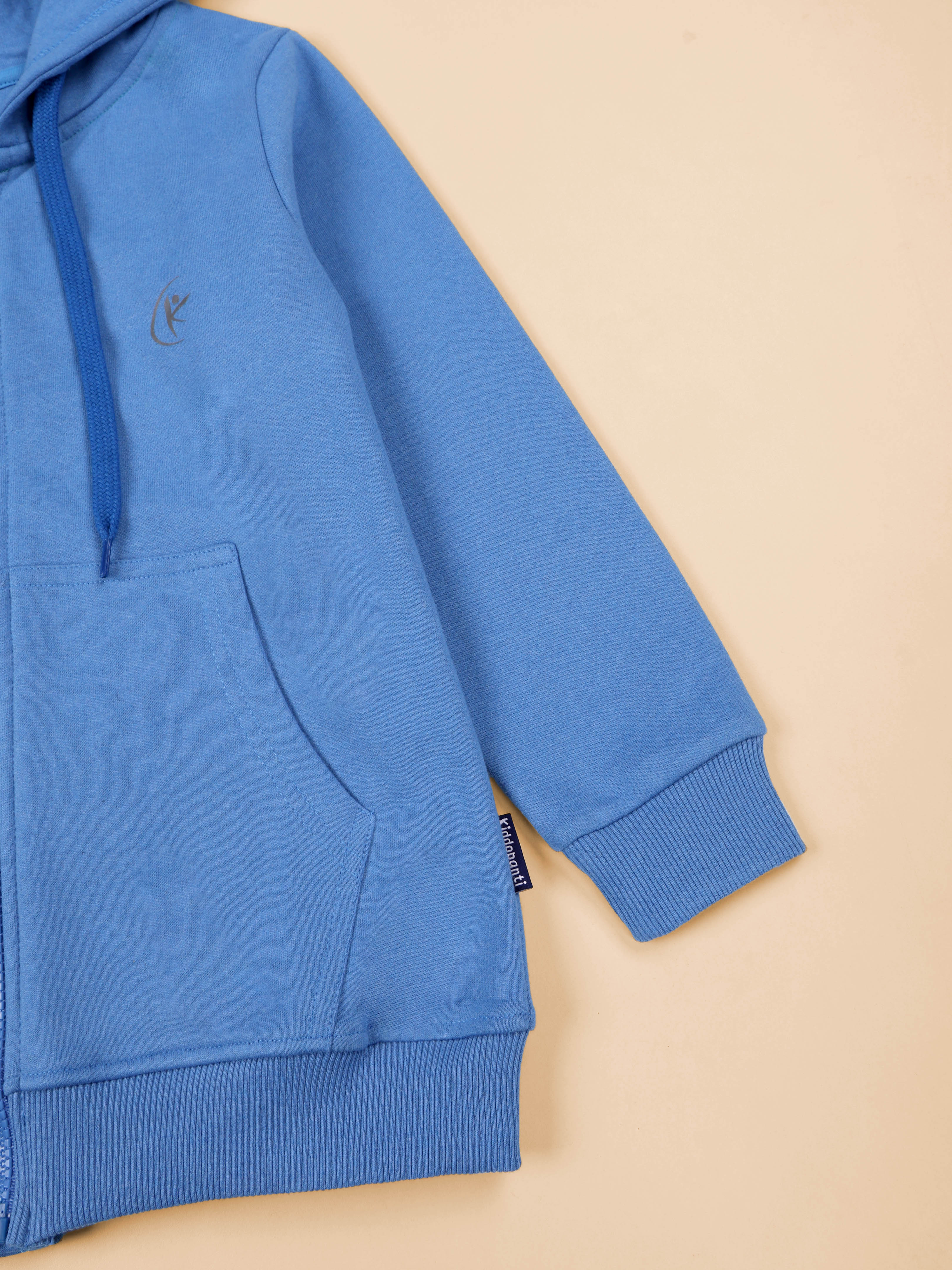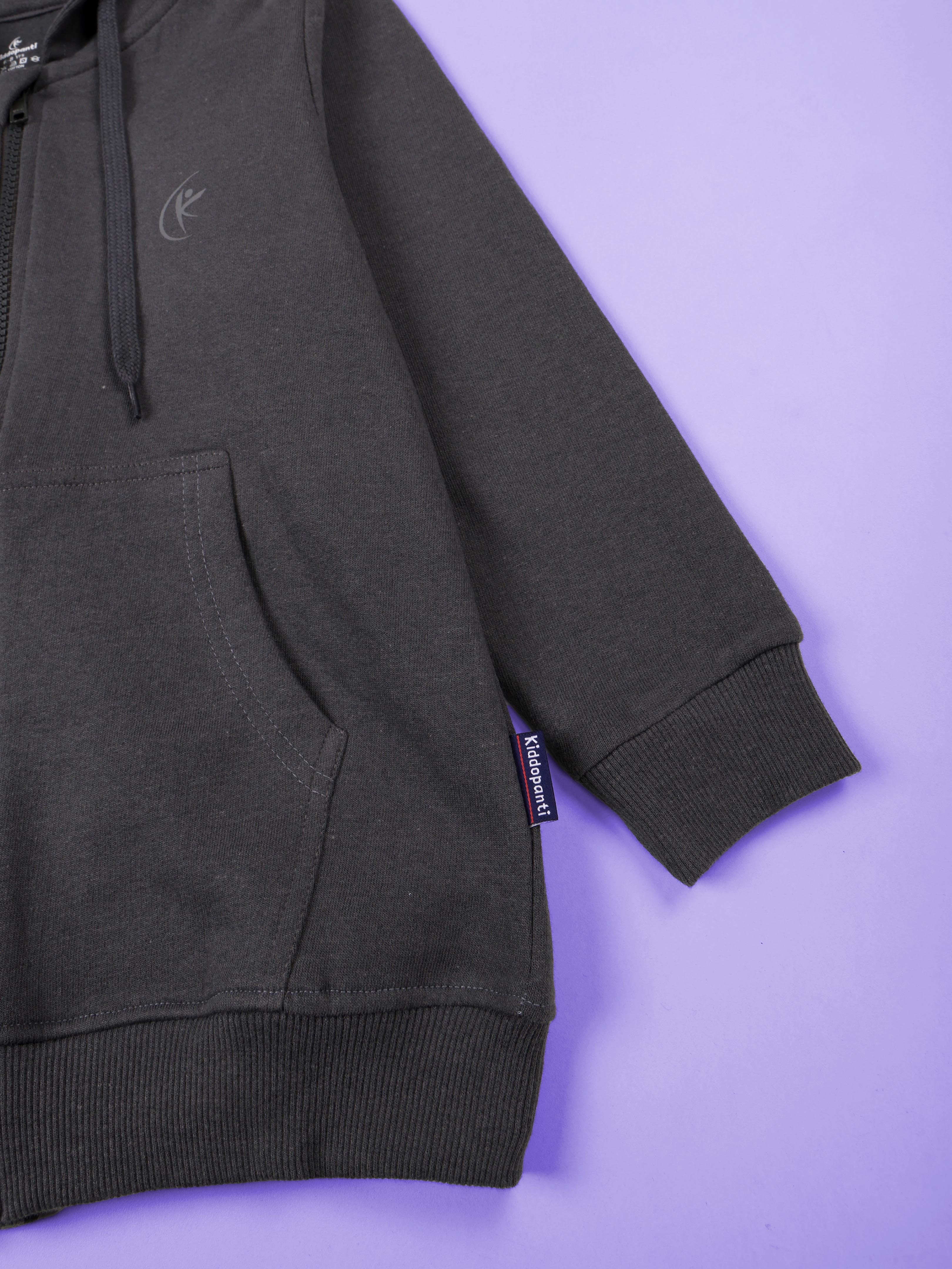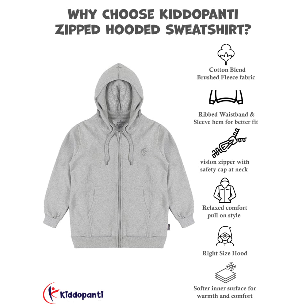 Kiddopanti Unisex Solid Full Sleeve Zip Front Open Hooded Fleece Sweatshirt