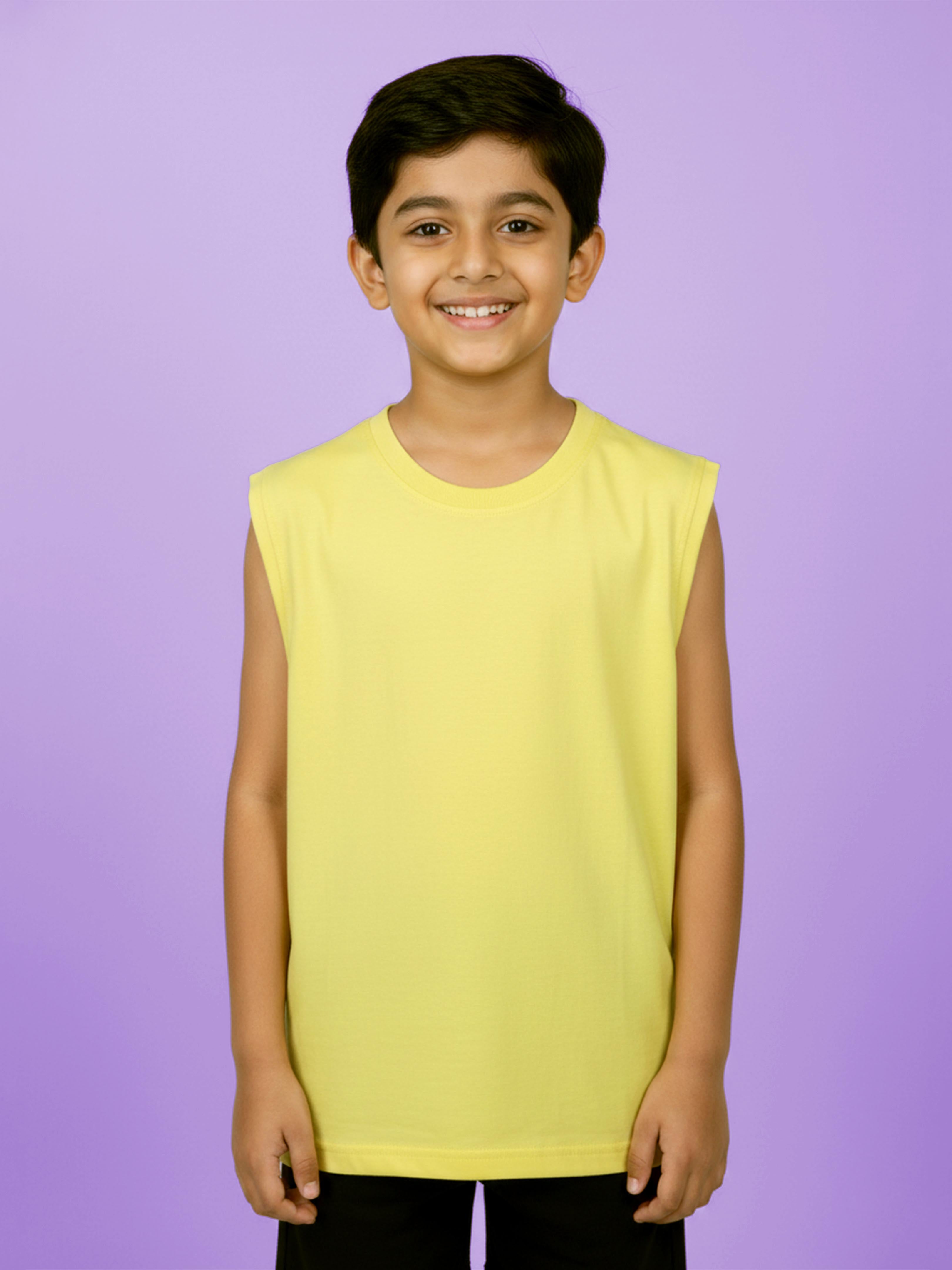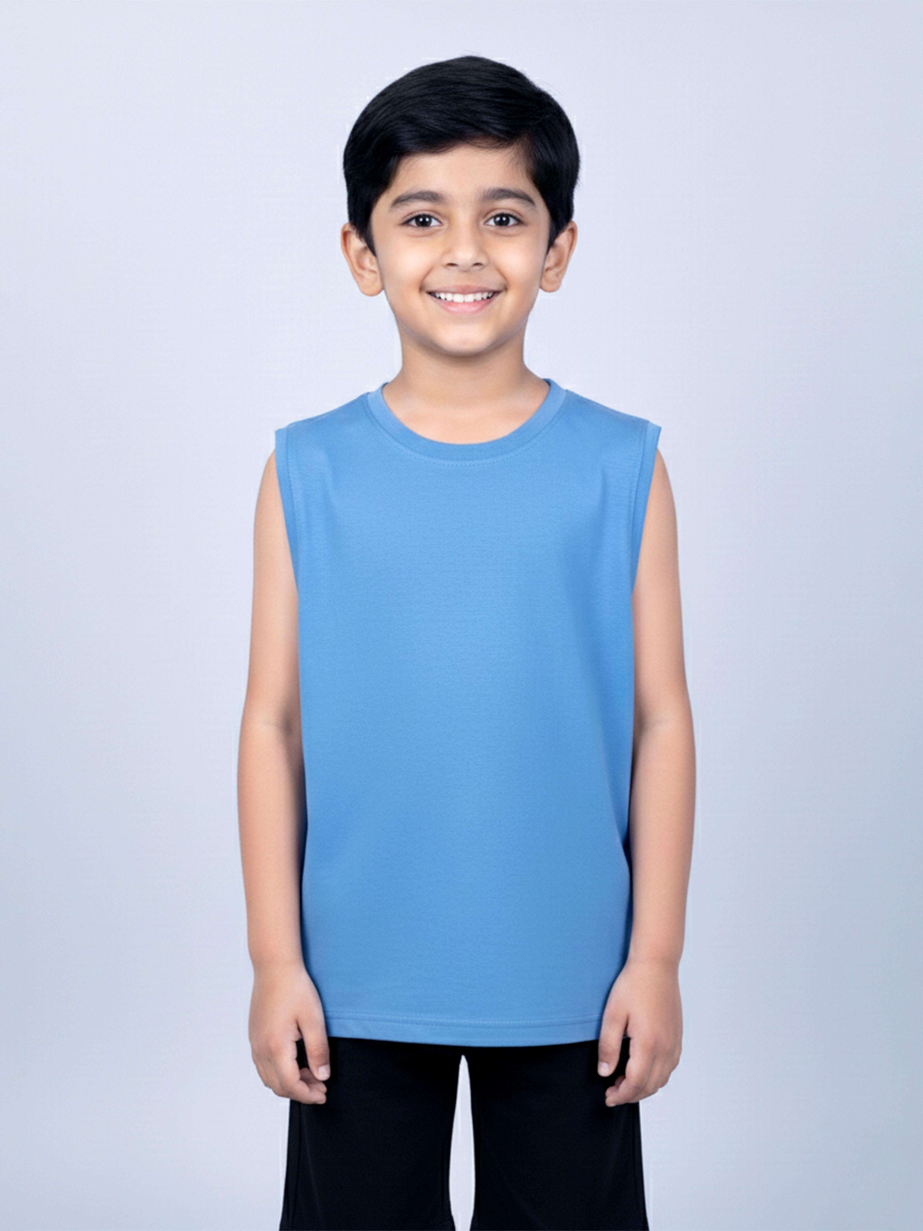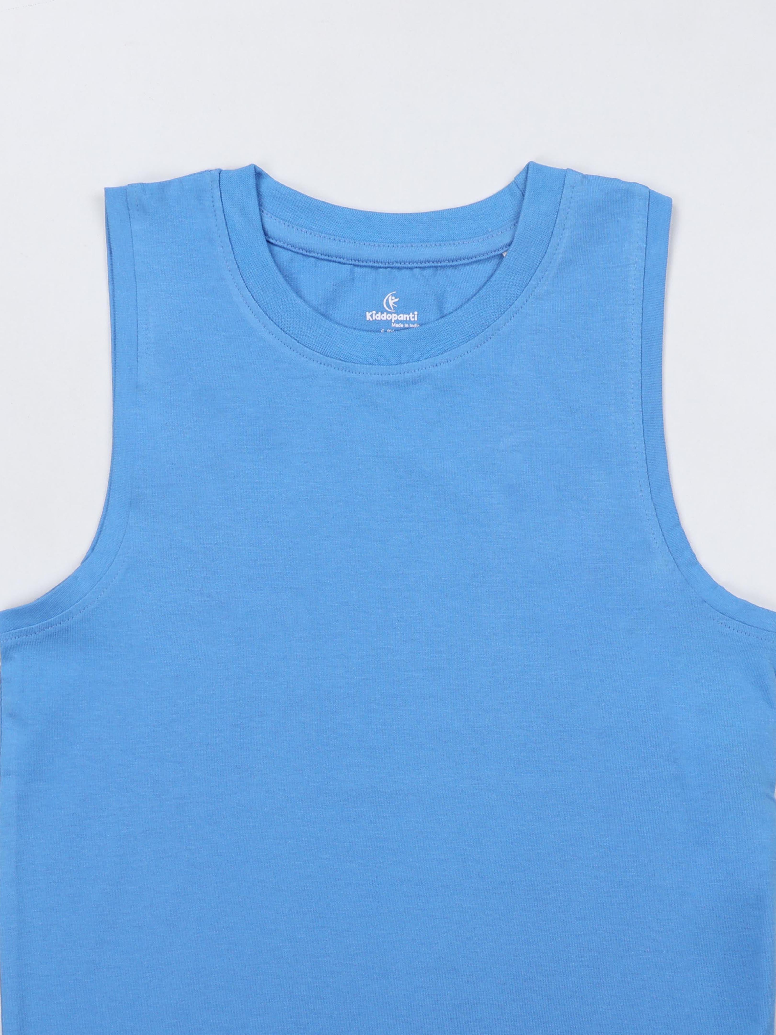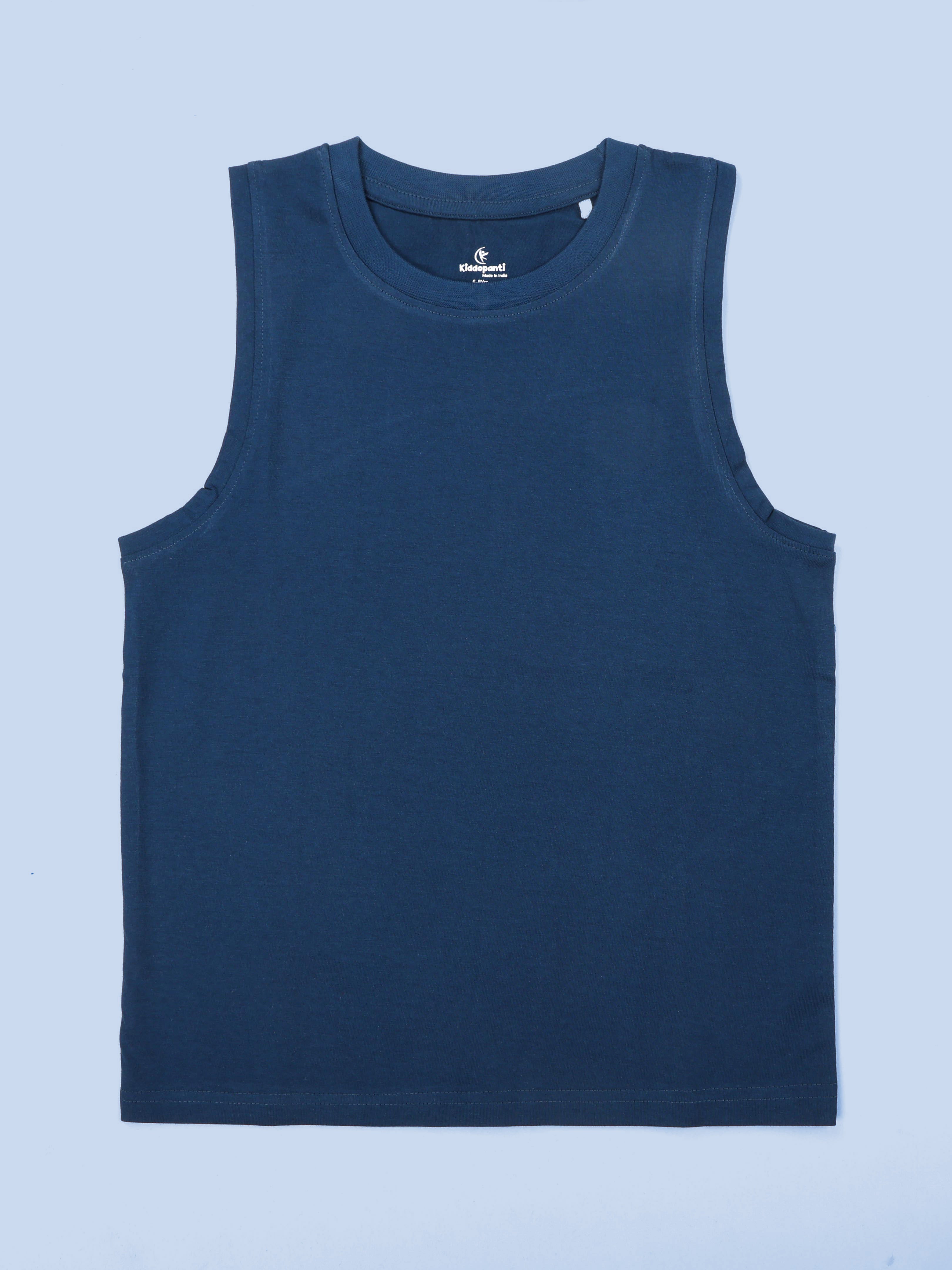 Kiddopanti Boys Cotton Knit Solid Round Neck Sleeveless T-Shirt