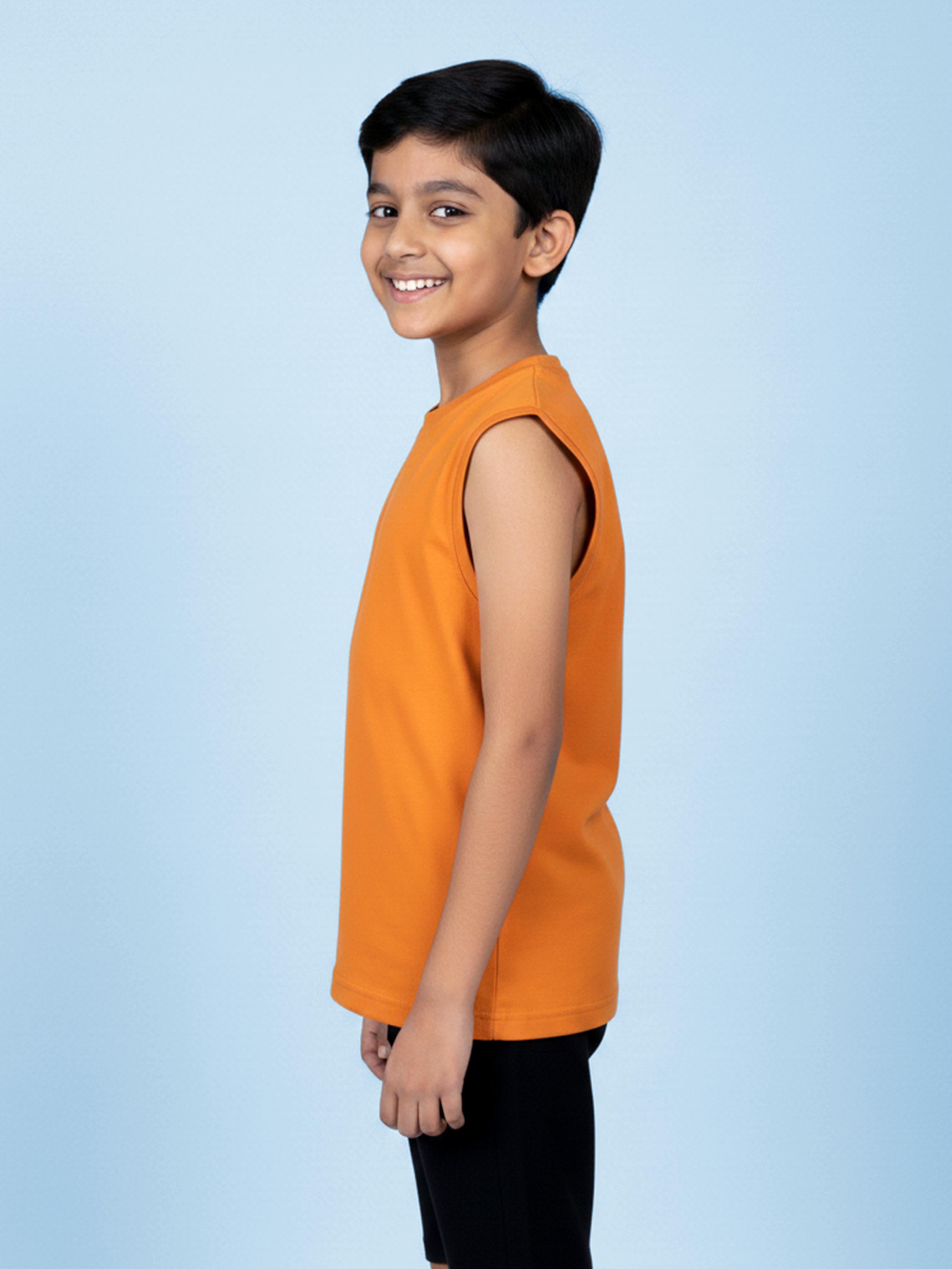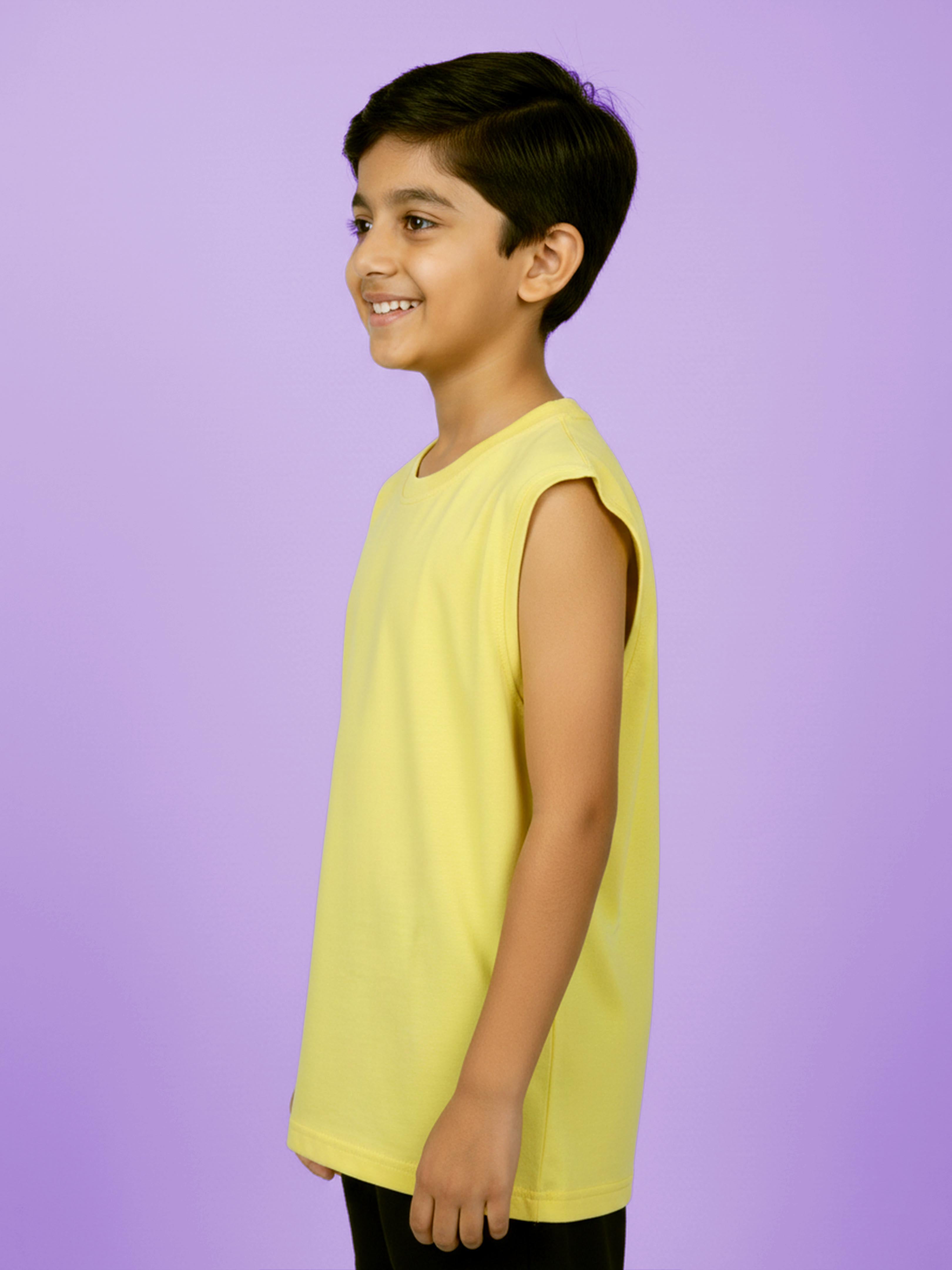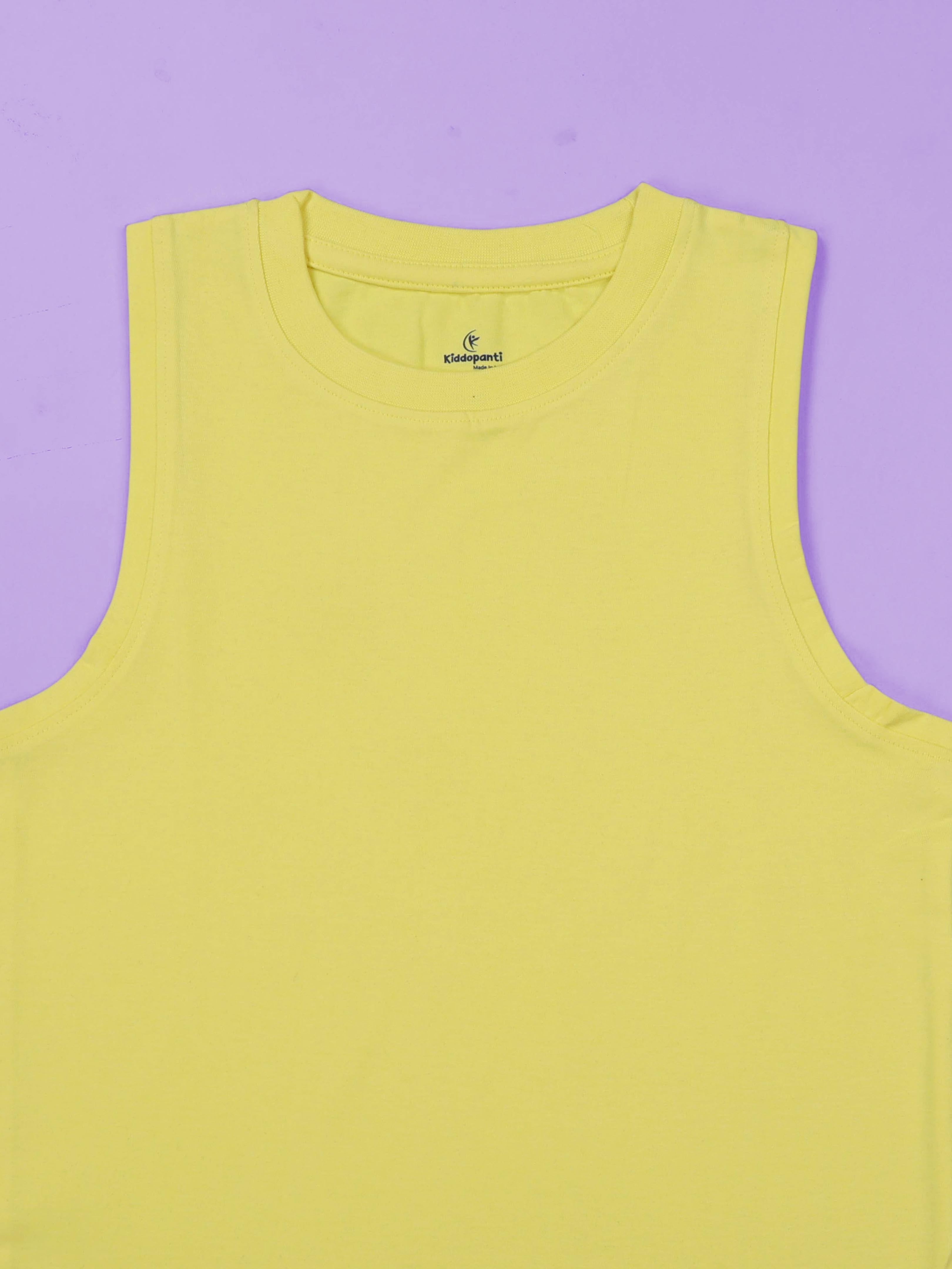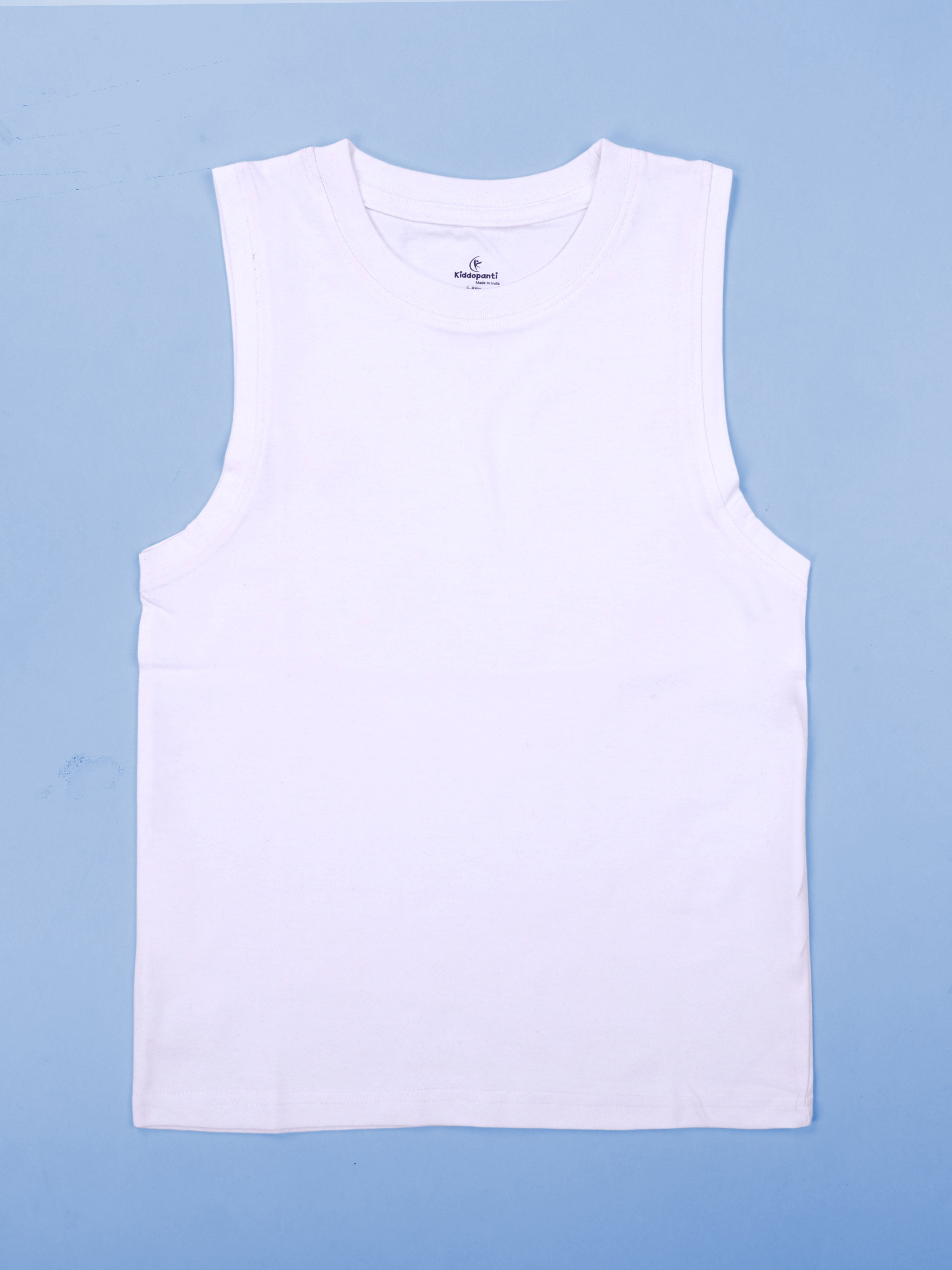 Kiddopanti Boys Cotton Knit Solid Round Neck Sleeveless T-Shirt