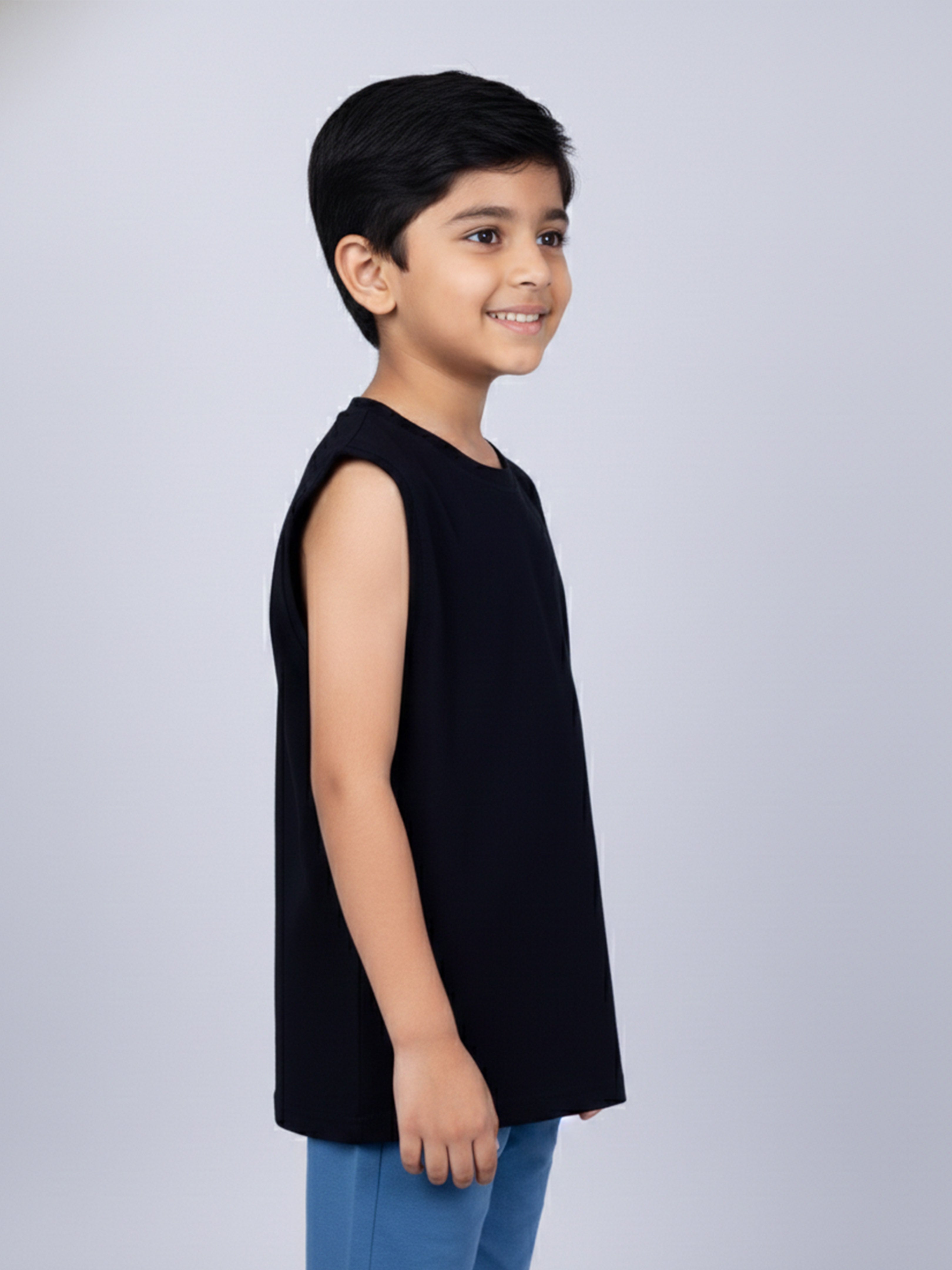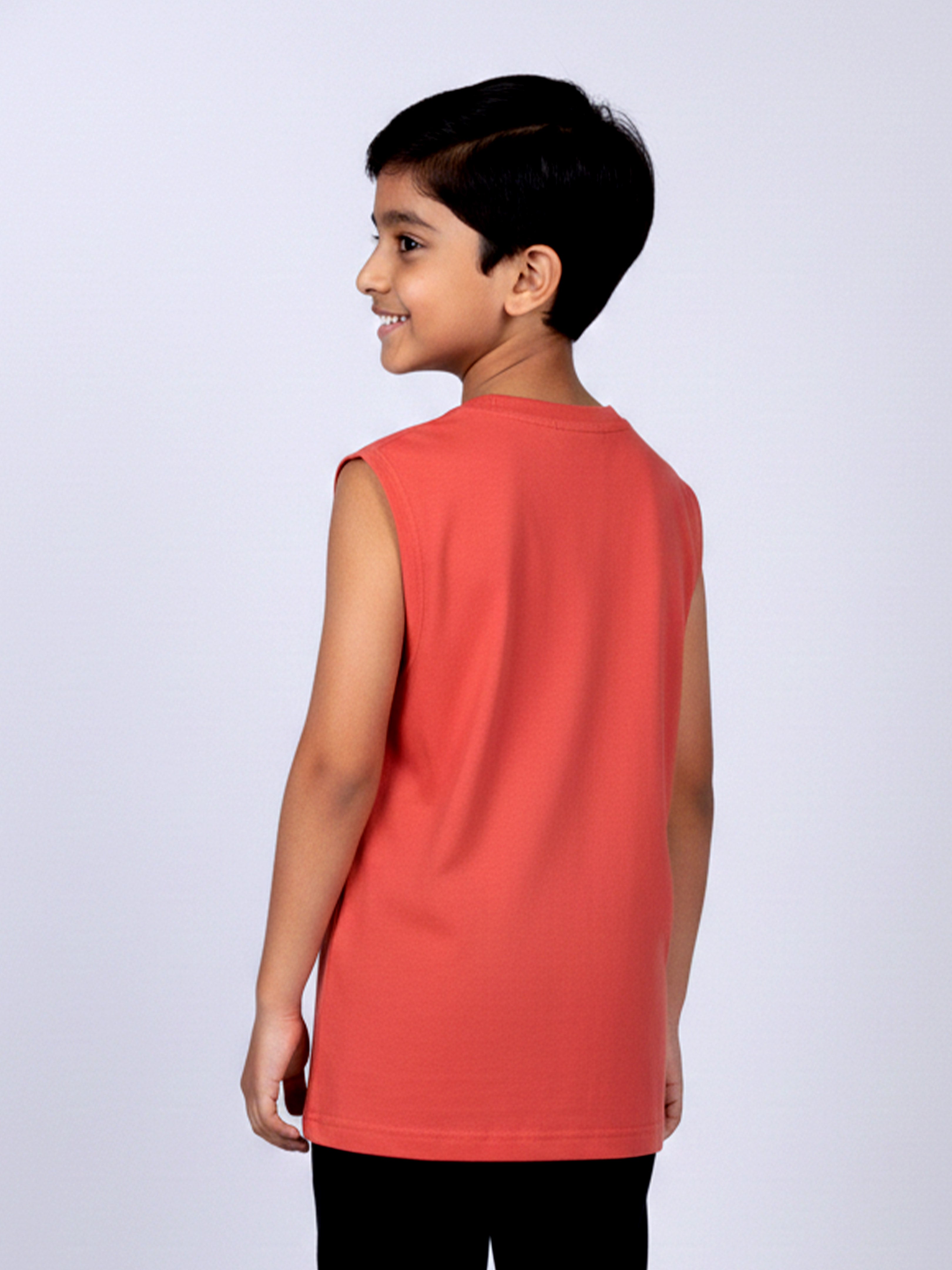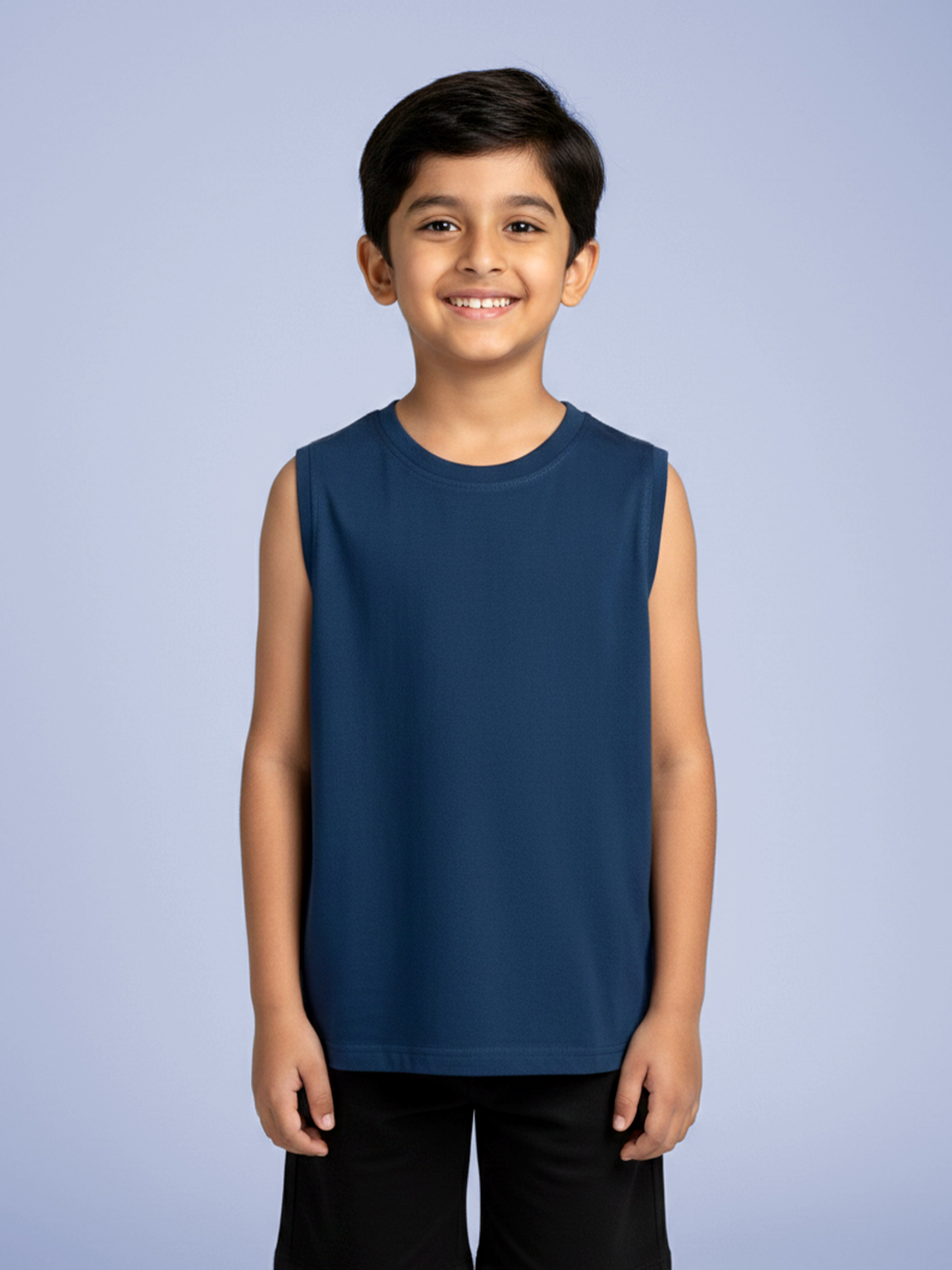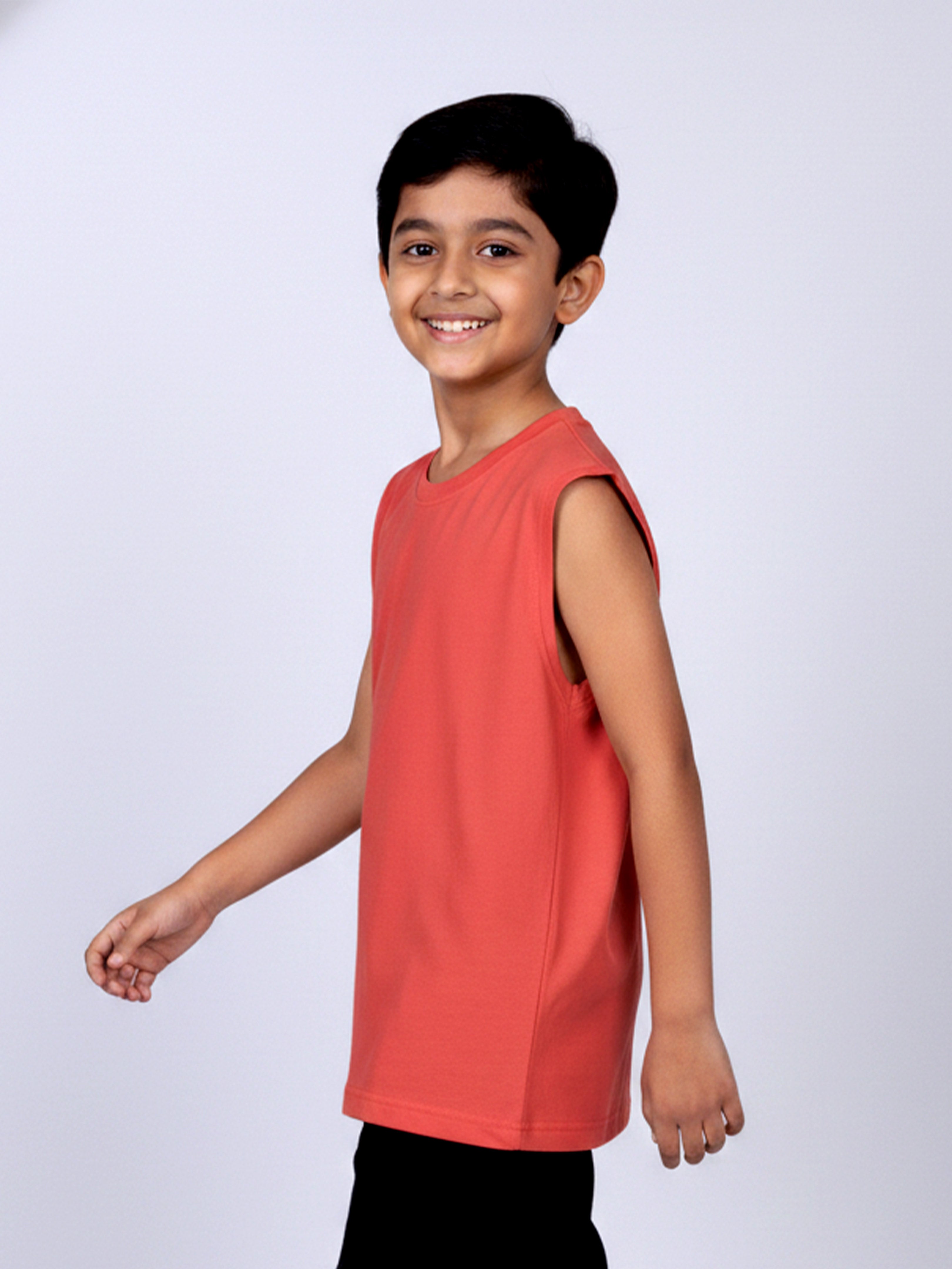 Kiddopanti Boys Cotton Knit Solid Round Neck Sleeveless T-Shirt