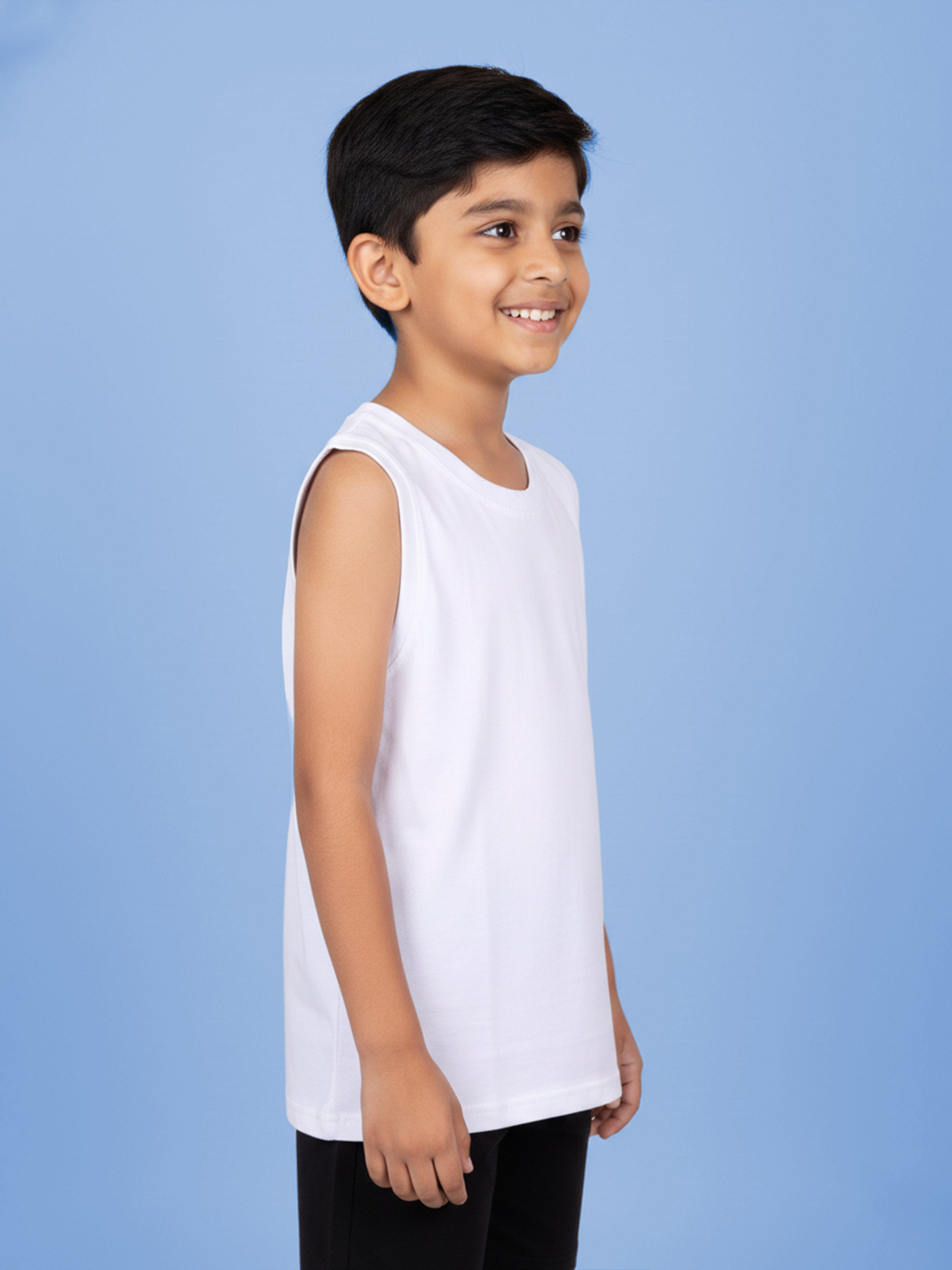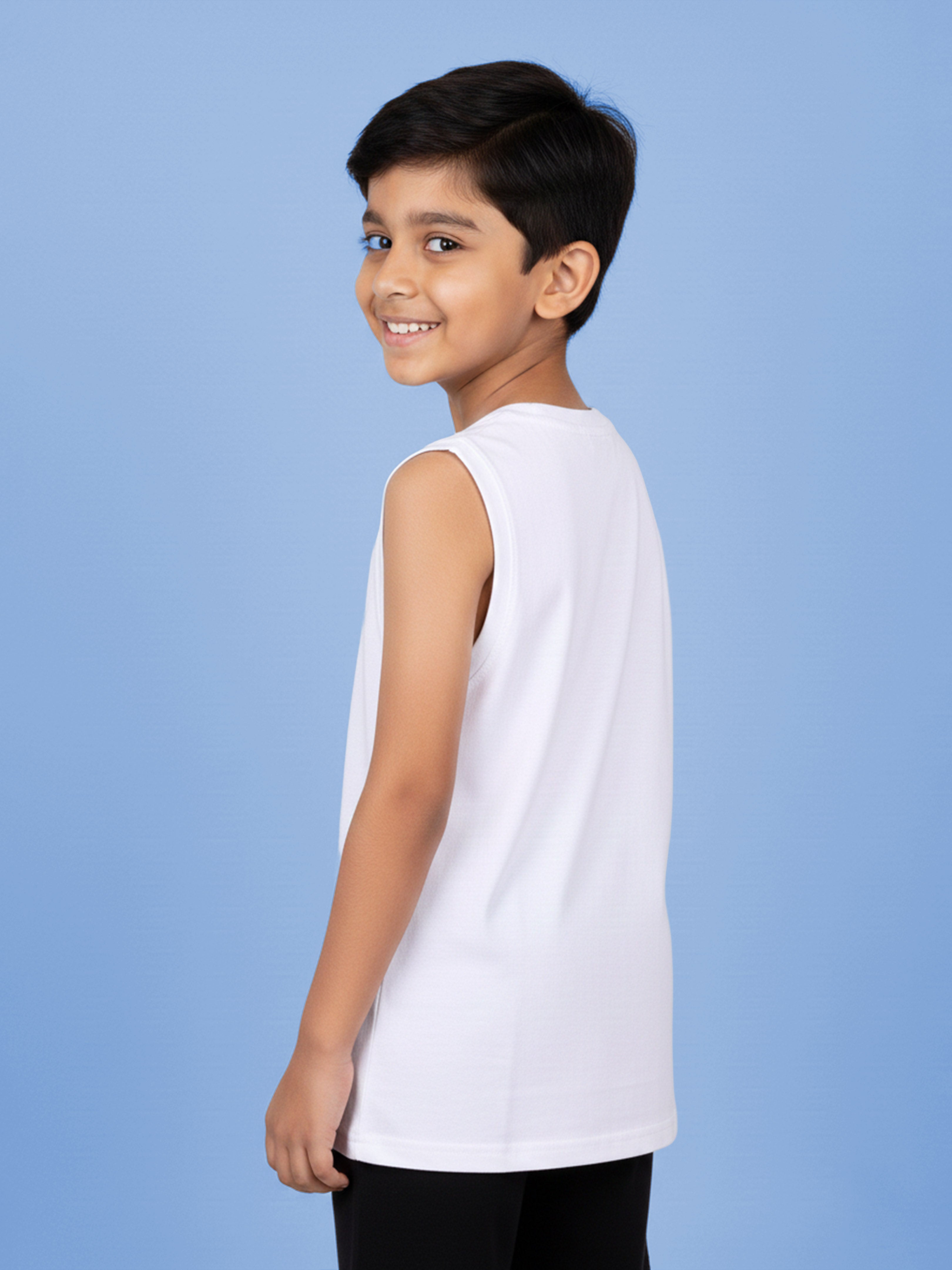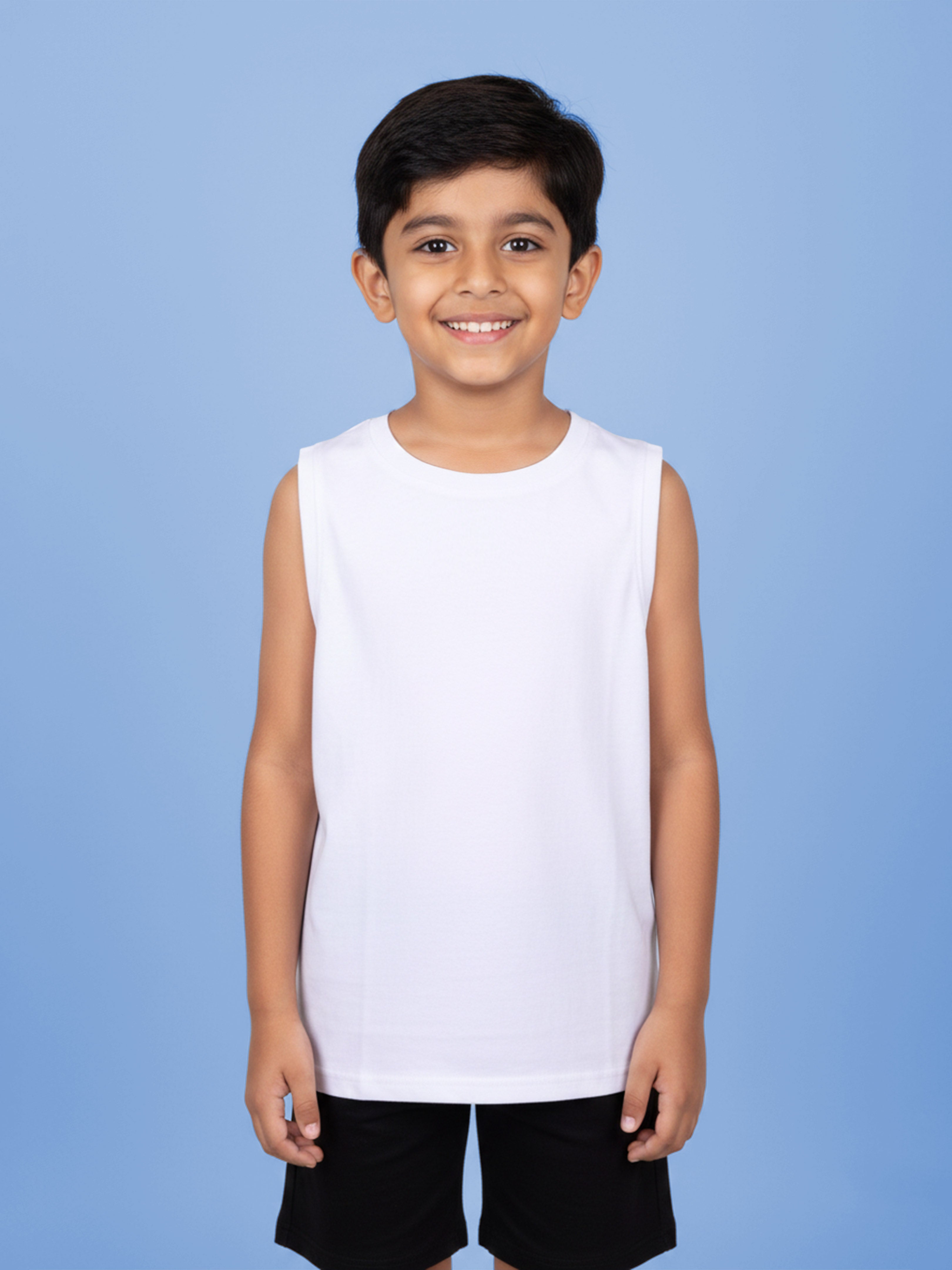 Upgrade your everyday activewear with this Kidsβs Classic Sleeveless Solid Tank Vest, designed for comfort, performance, and style. Crafted from soft, breathable cotton-blend fabric, this vest offers a smooth feel on the skin and excellent airflow, making it perfect for workouts, summer wear, and casual lounging.The round neck design and sleeveless cut provide full freedom of movement, while the regular athletic fit ensures a clean, modern silhouette. Its minimal solid white design makes it a versatile essential that pairs effortlessly with joggers, shorts, jeans. Ideal for running, sports, travel, home wear, and casual outings, this tank vest is a must-have wardrobe staple for every active lifestyle.