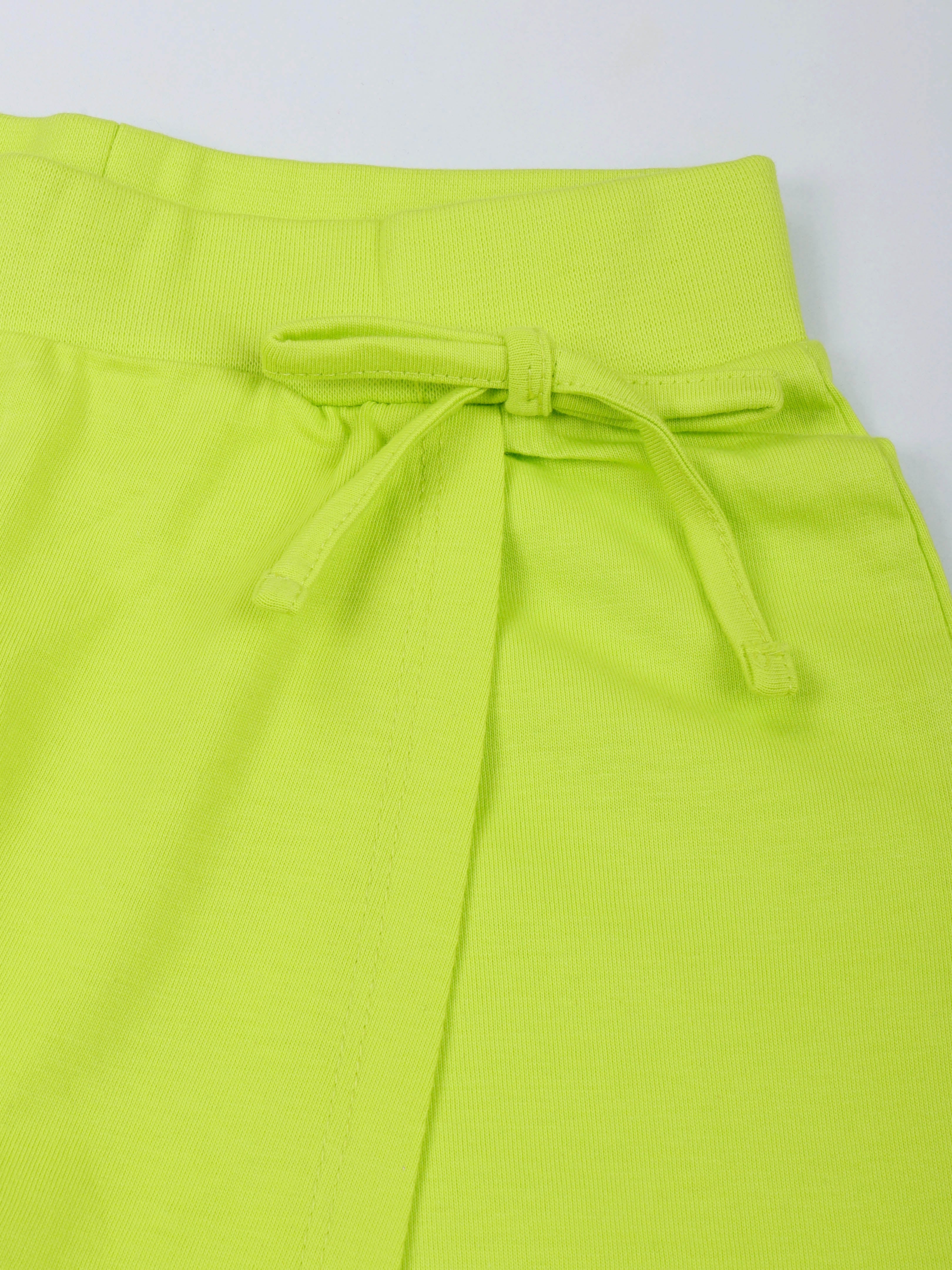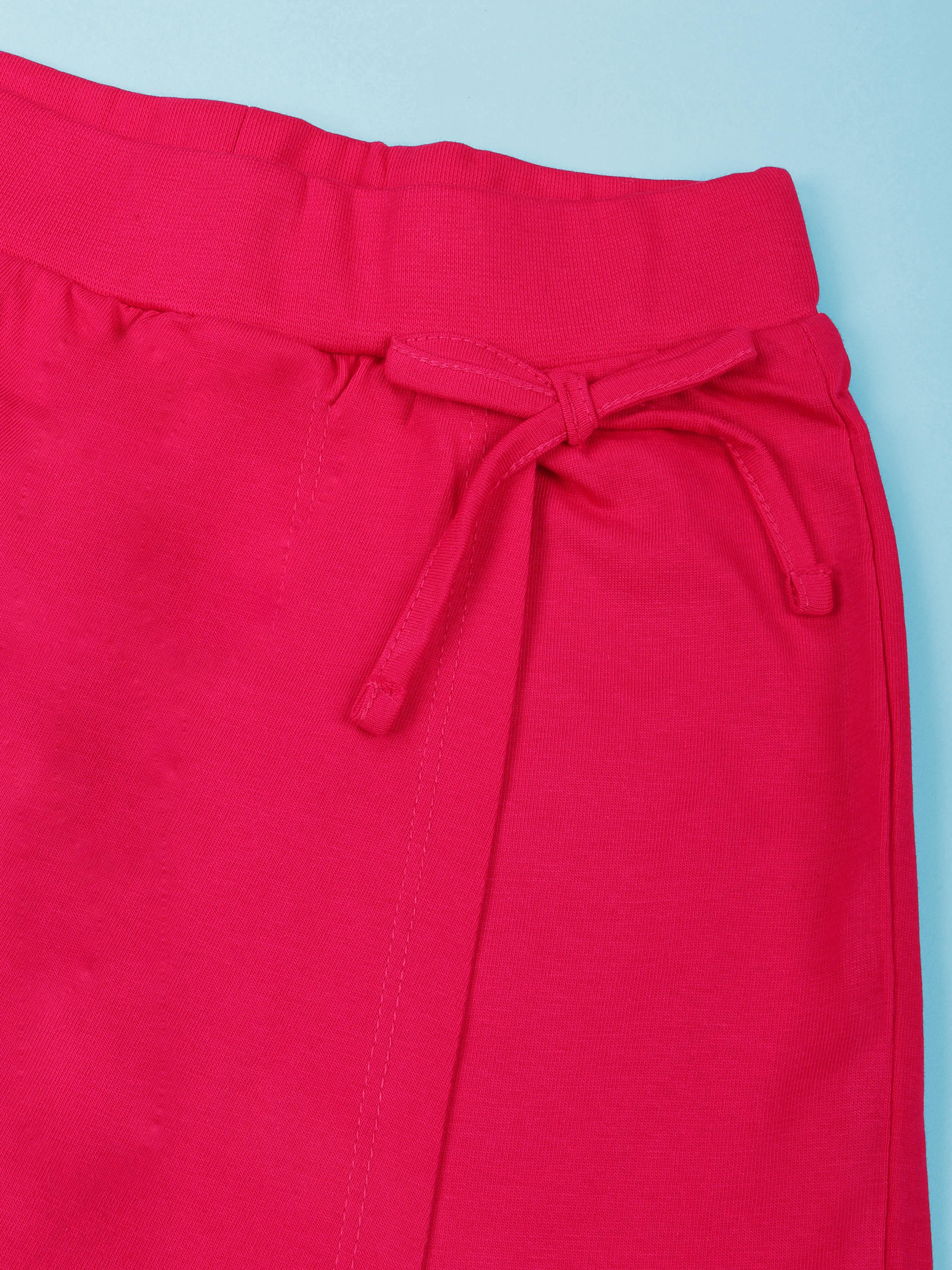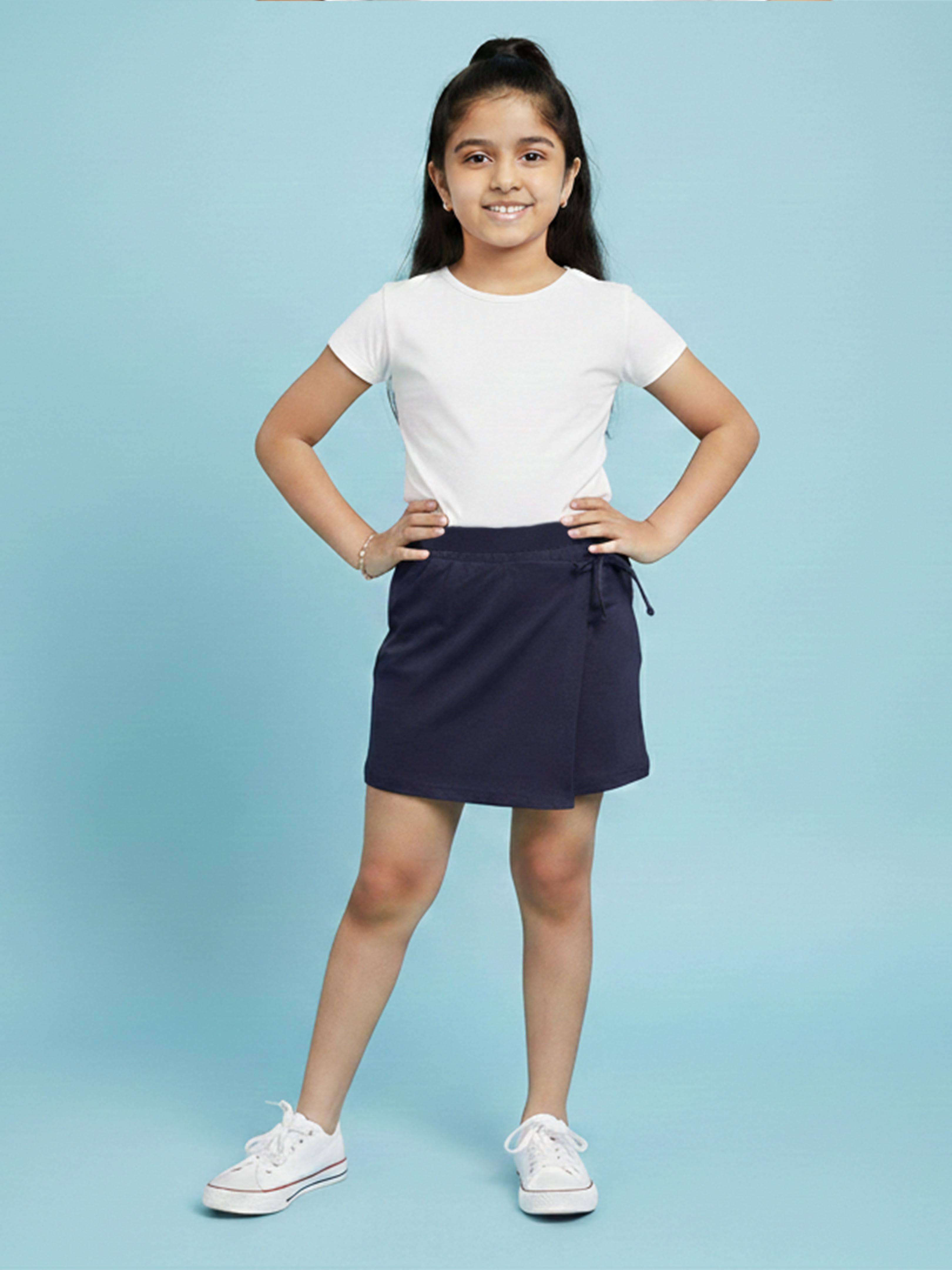 Kiddopanti brings to you the latest fashion clothes for your smart dressing young ones. This Solid Colour Skort with Overlap Front is a stylish and comfortable pick for everyday wear. Designed with a skirt-style wrap look on the front and attached inner shorts, it offers the perfect balance of fashion and functionality. Made from soft, stretchable knit fabric, this skort ensures ease of movement while keeping your little one comfortable and confident all day long.