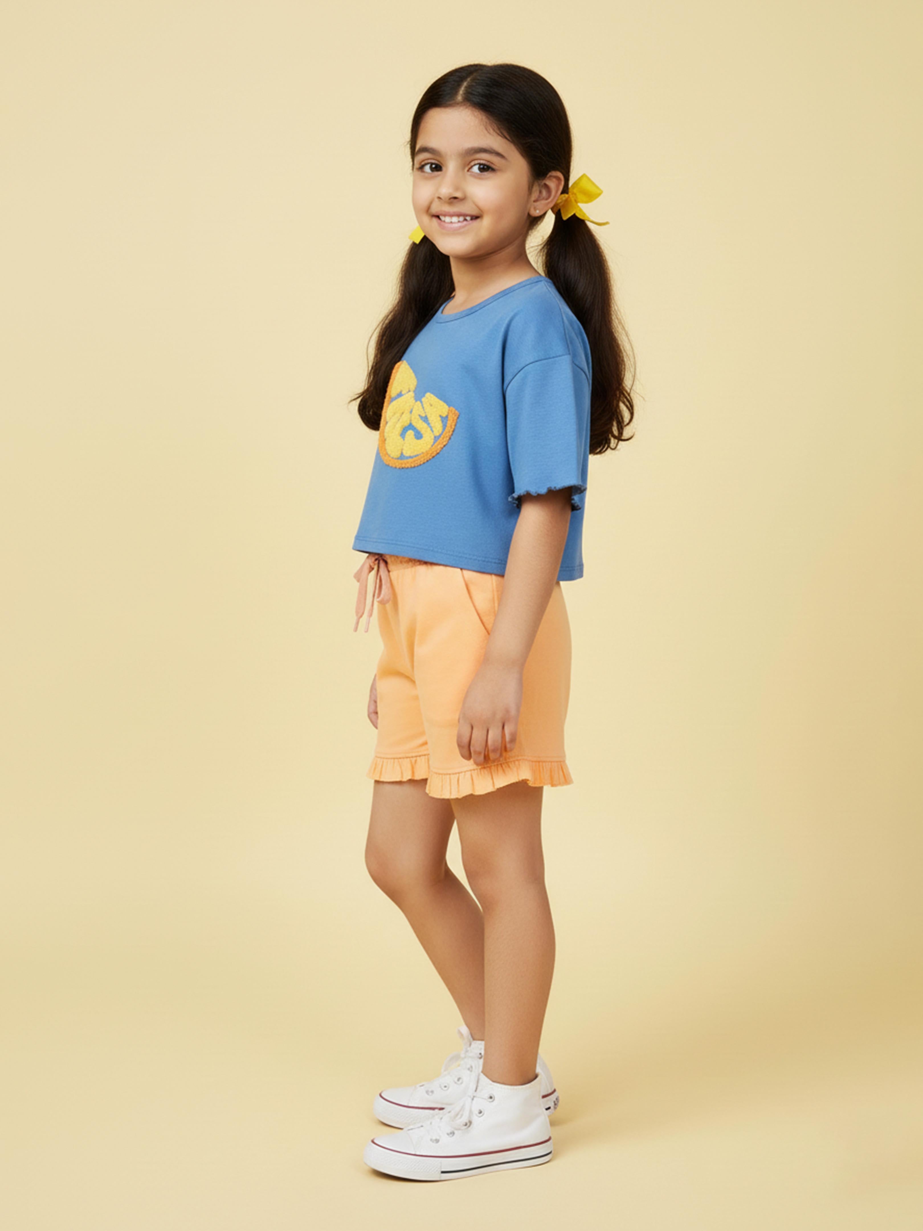Kiddopanti Girls Crop Tee & Bottom Hem Frill Shorts Set