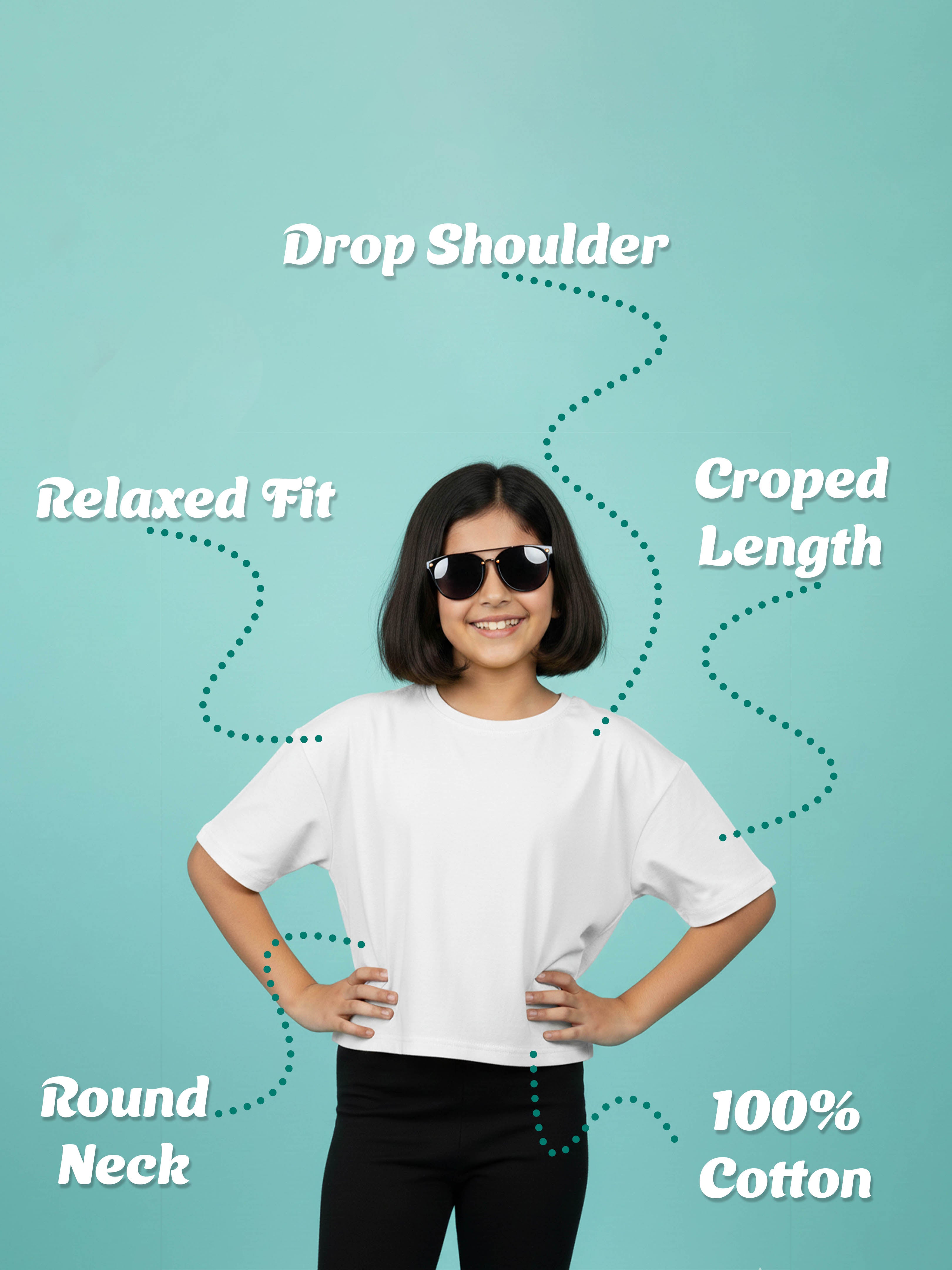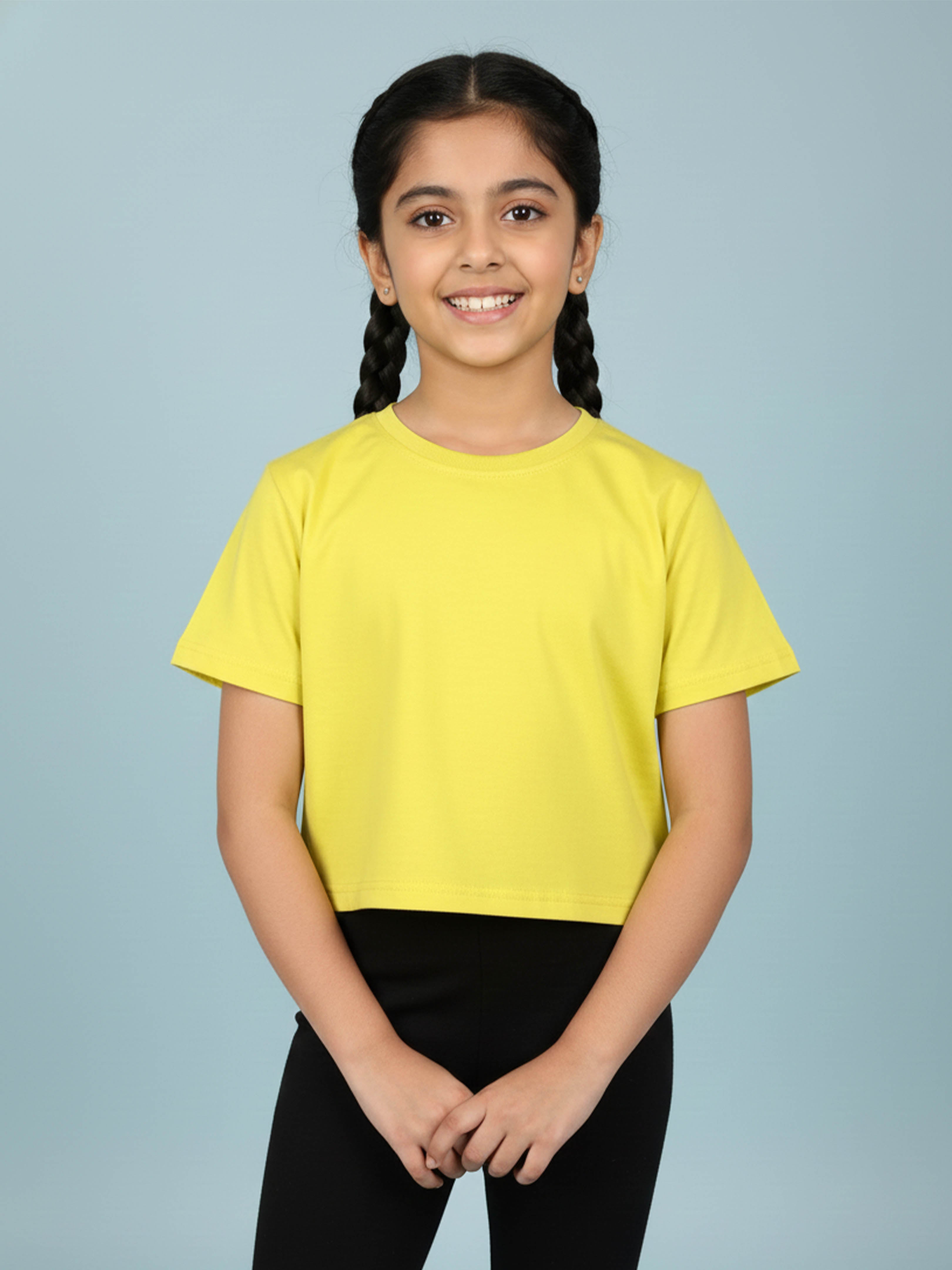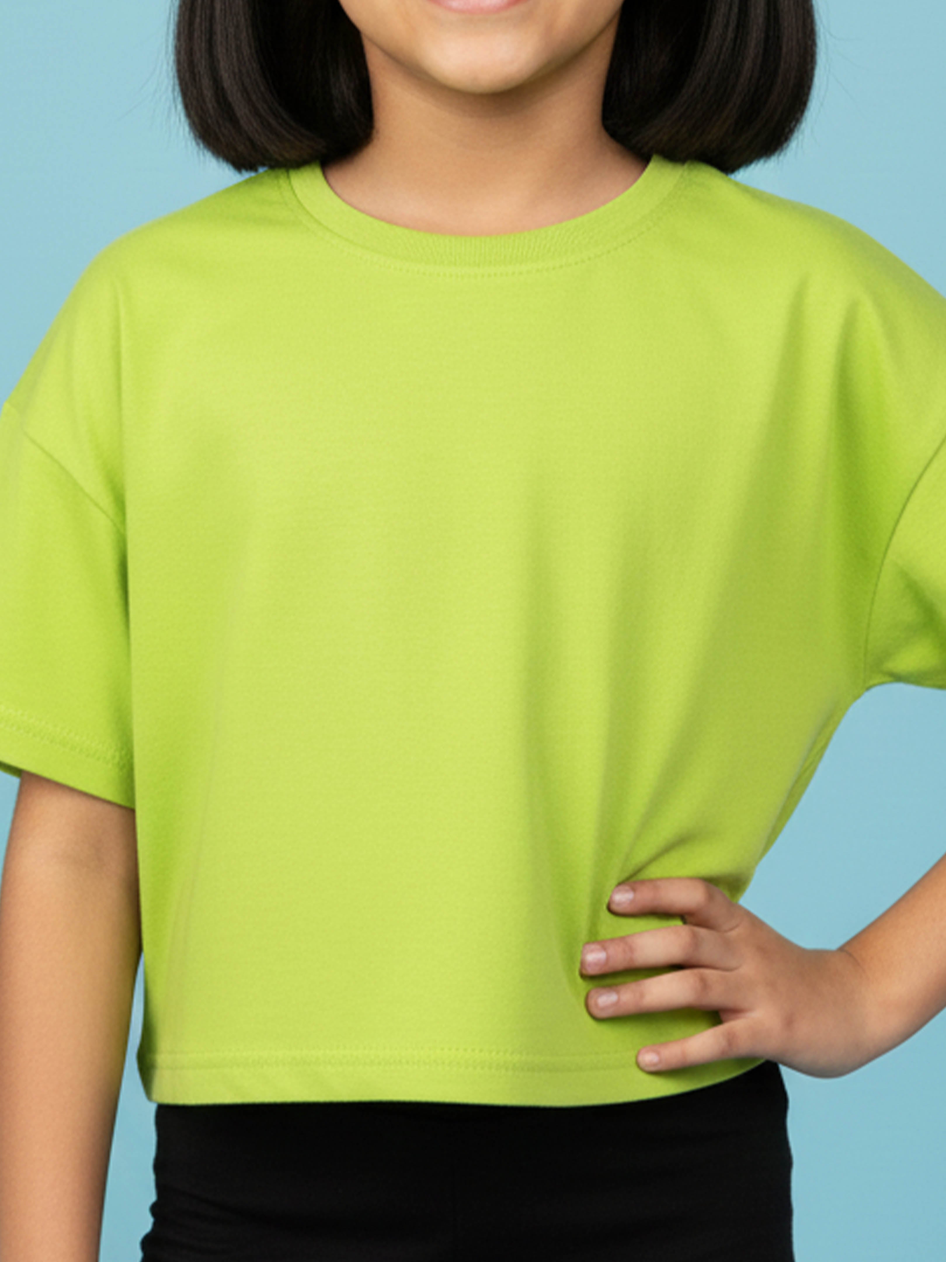 Kiddopanti Girls Cotton Solid Drop Shoulder Half Sleeve Round Neck Crop Tee Pack of 5