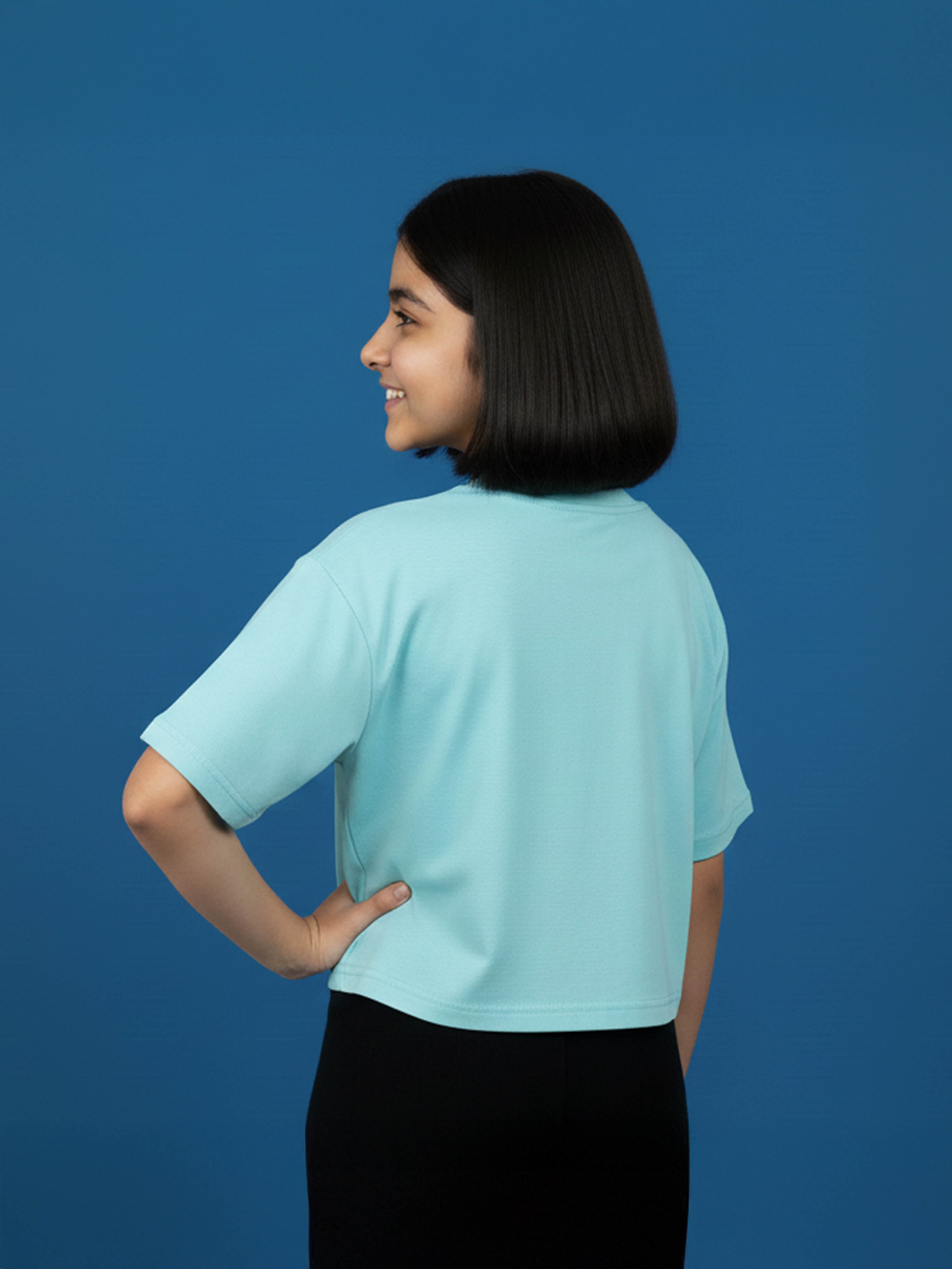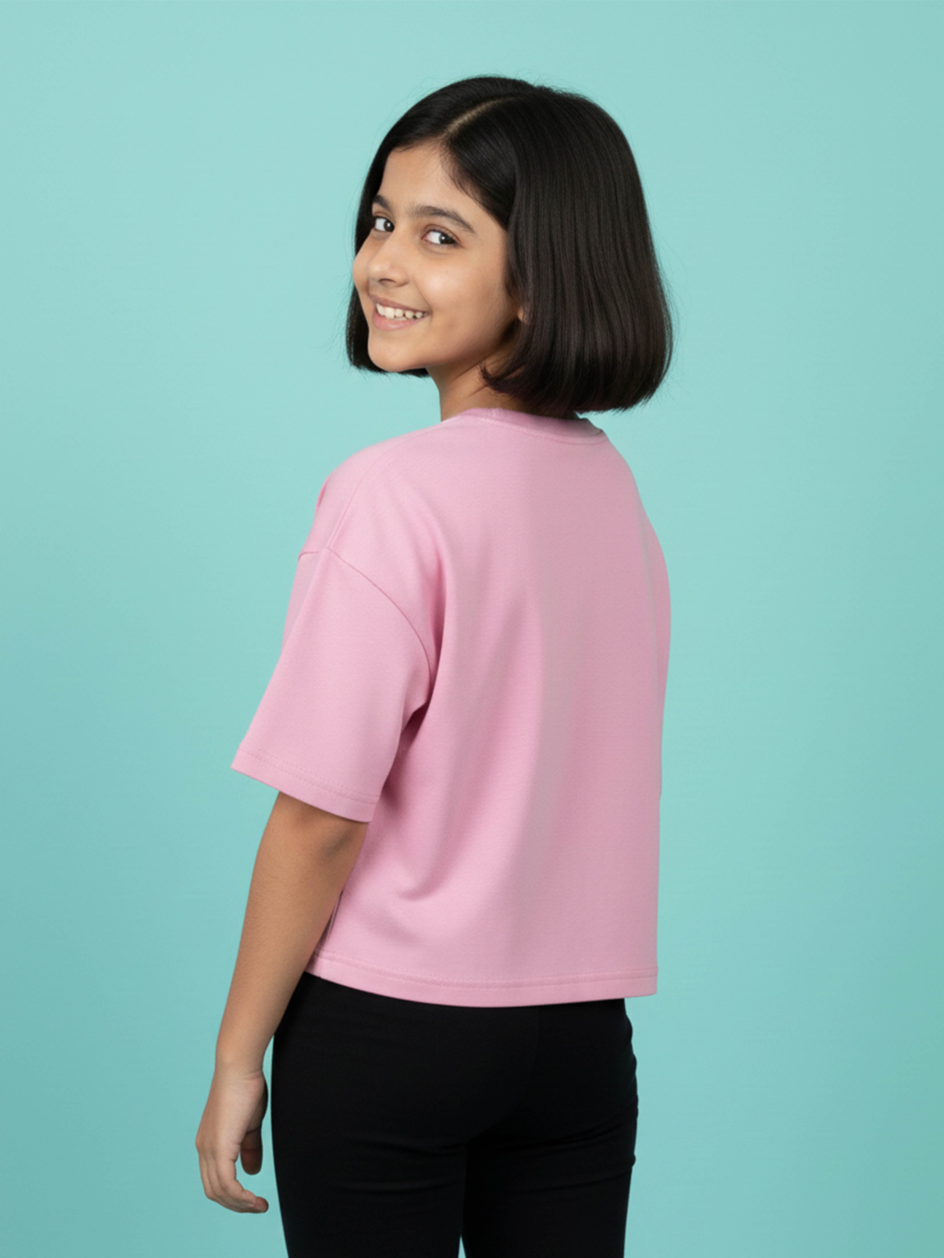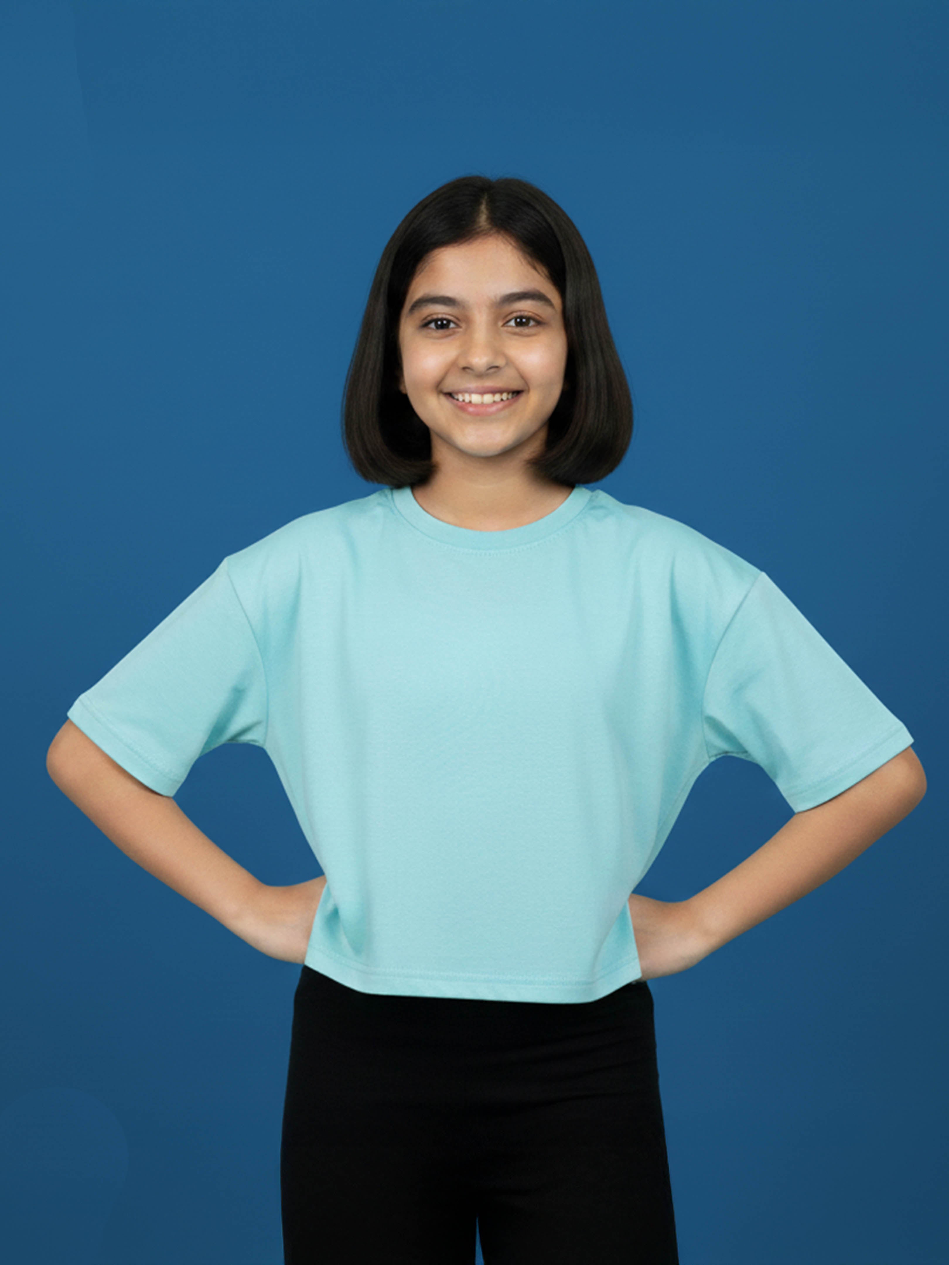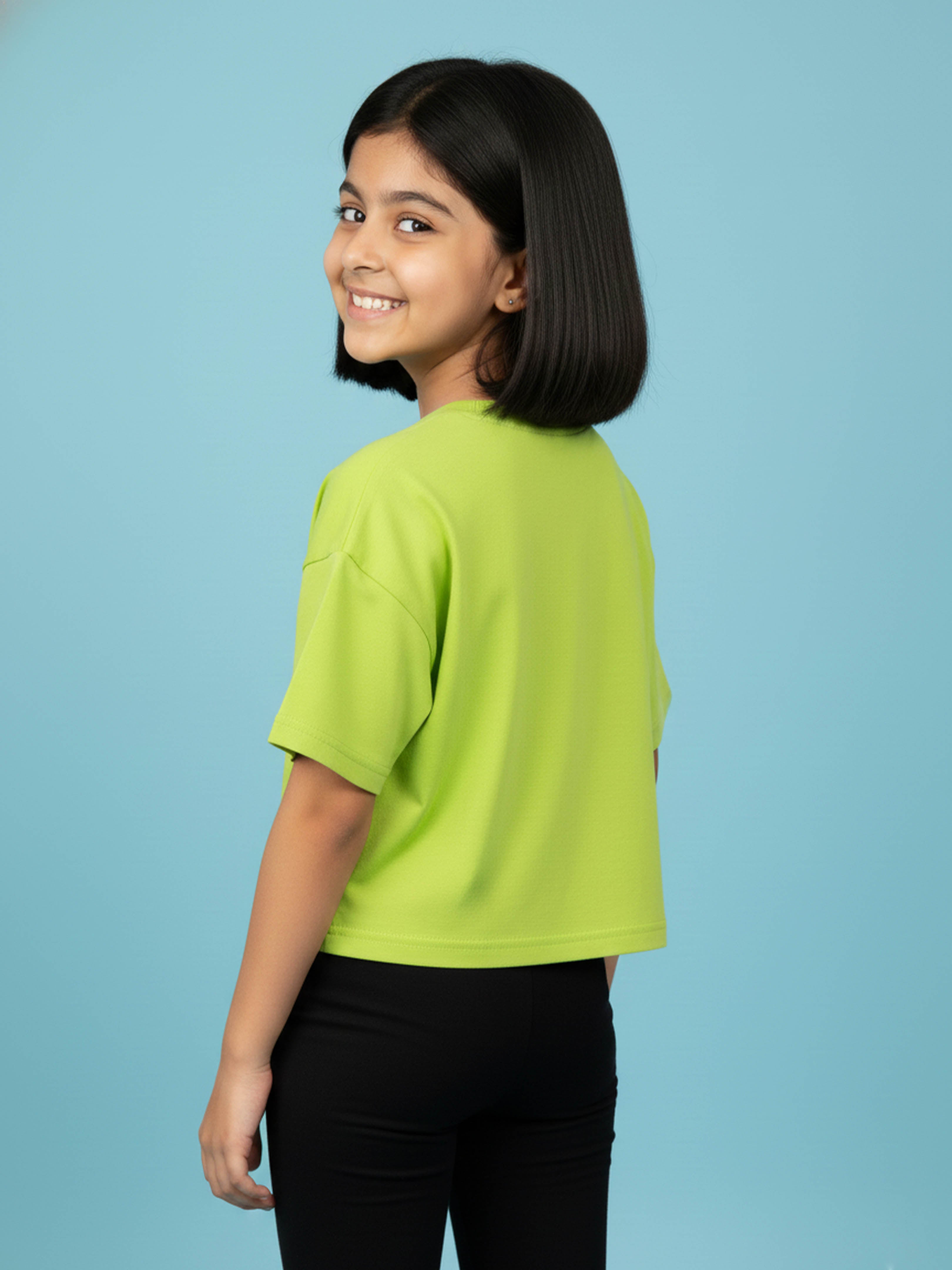 Kiddopanti Girls Cotton Solid Drop Shoulder Half Sleeve Round Neck Crop Tee Pack of 5