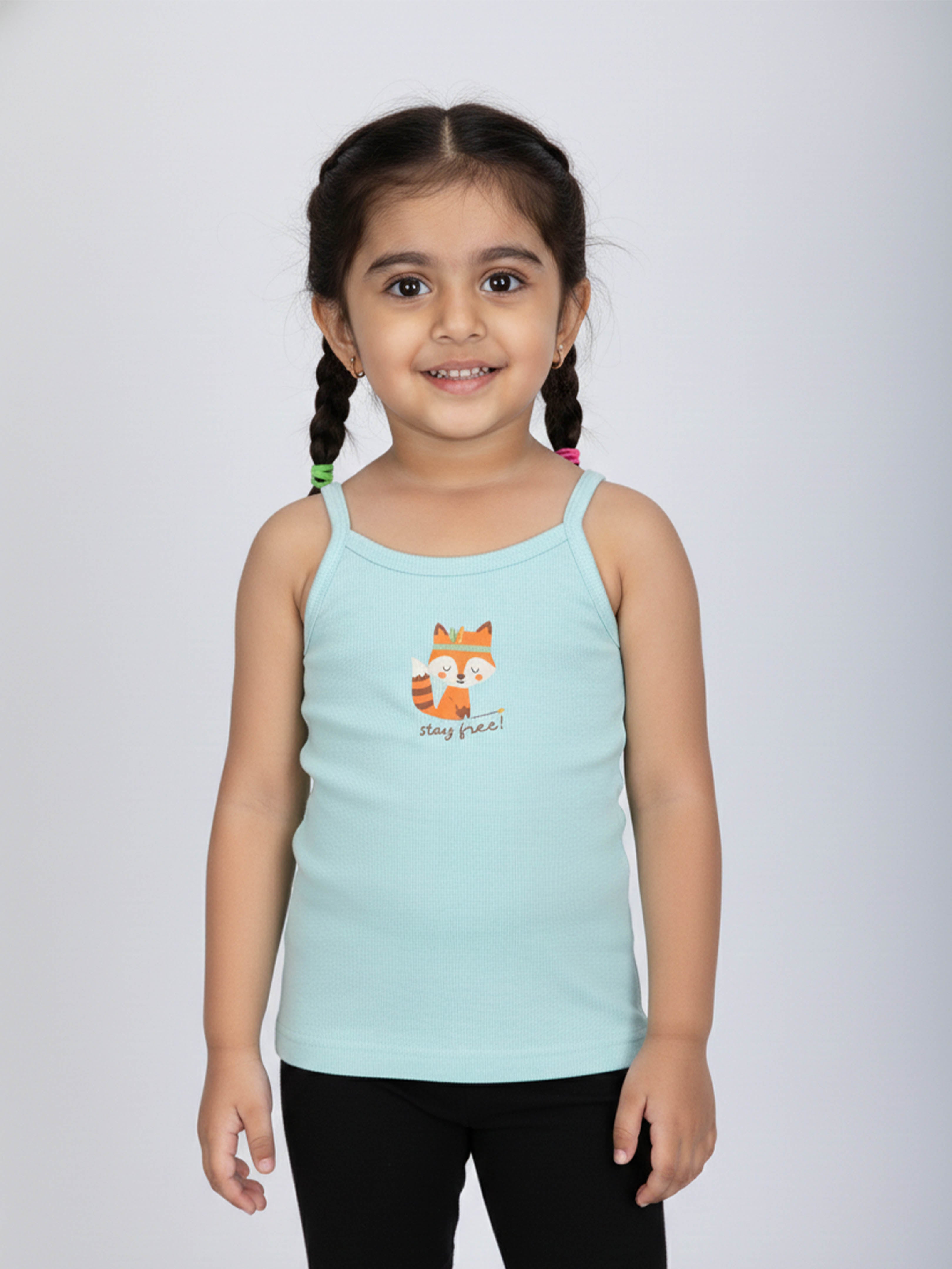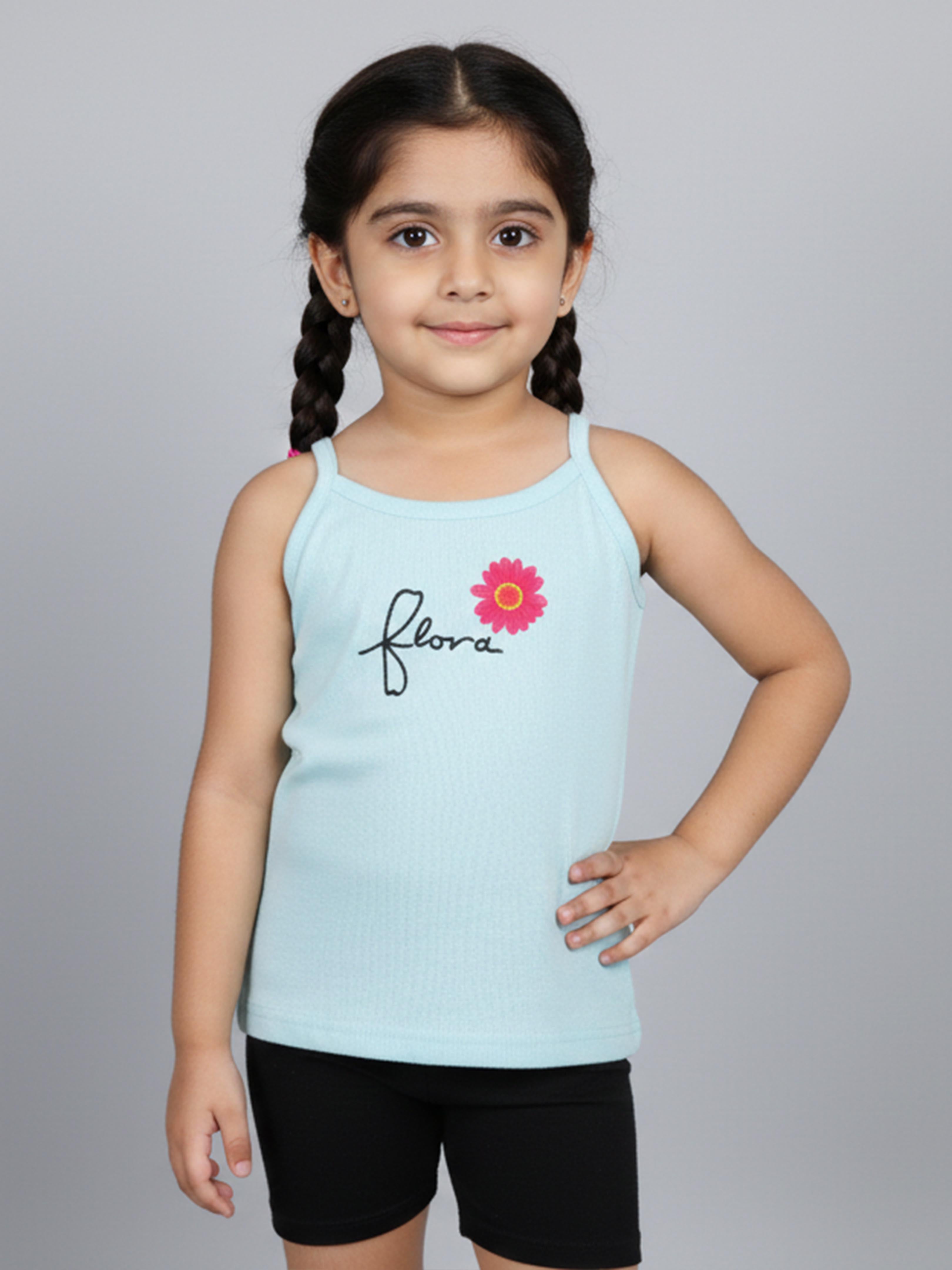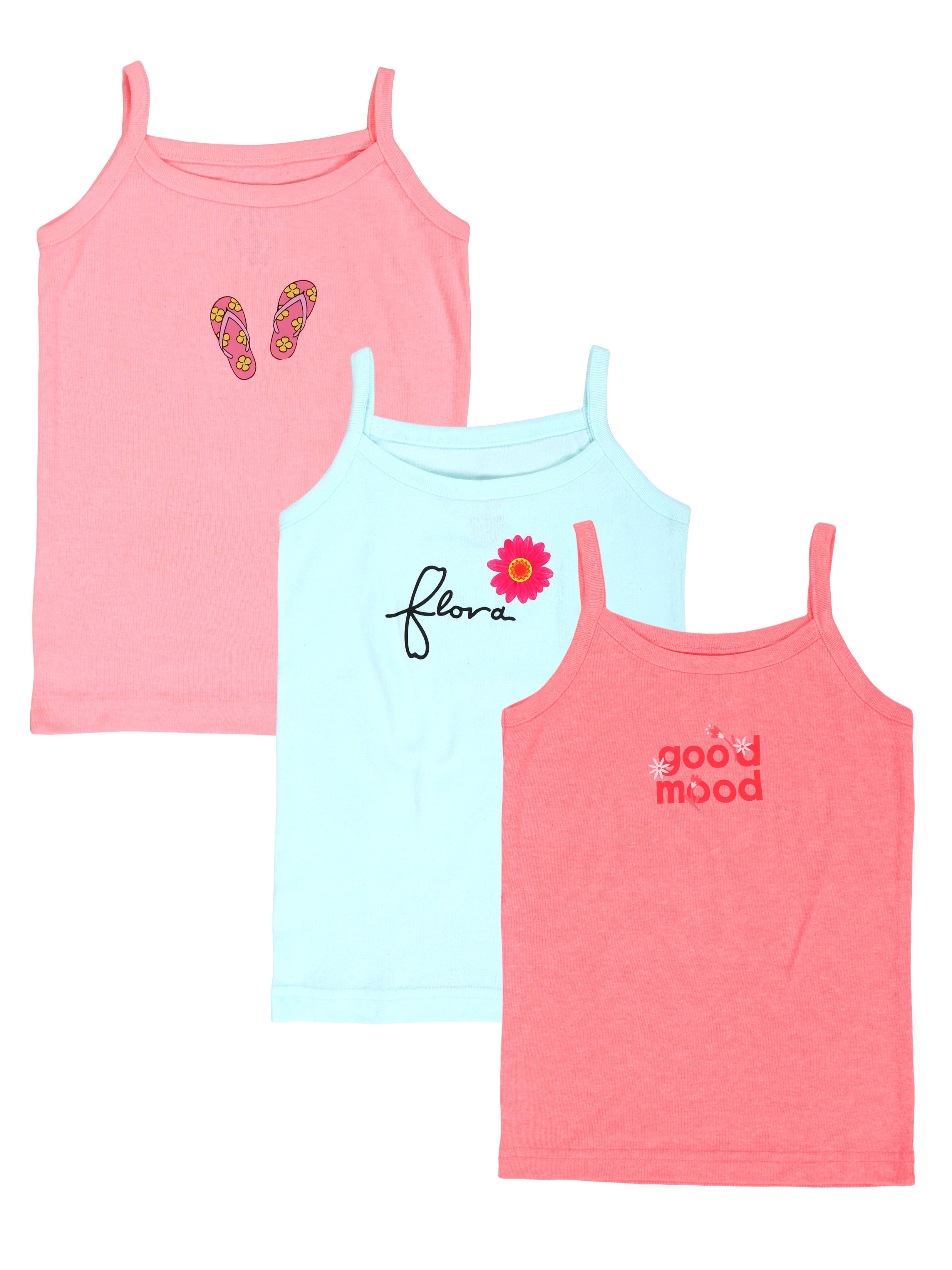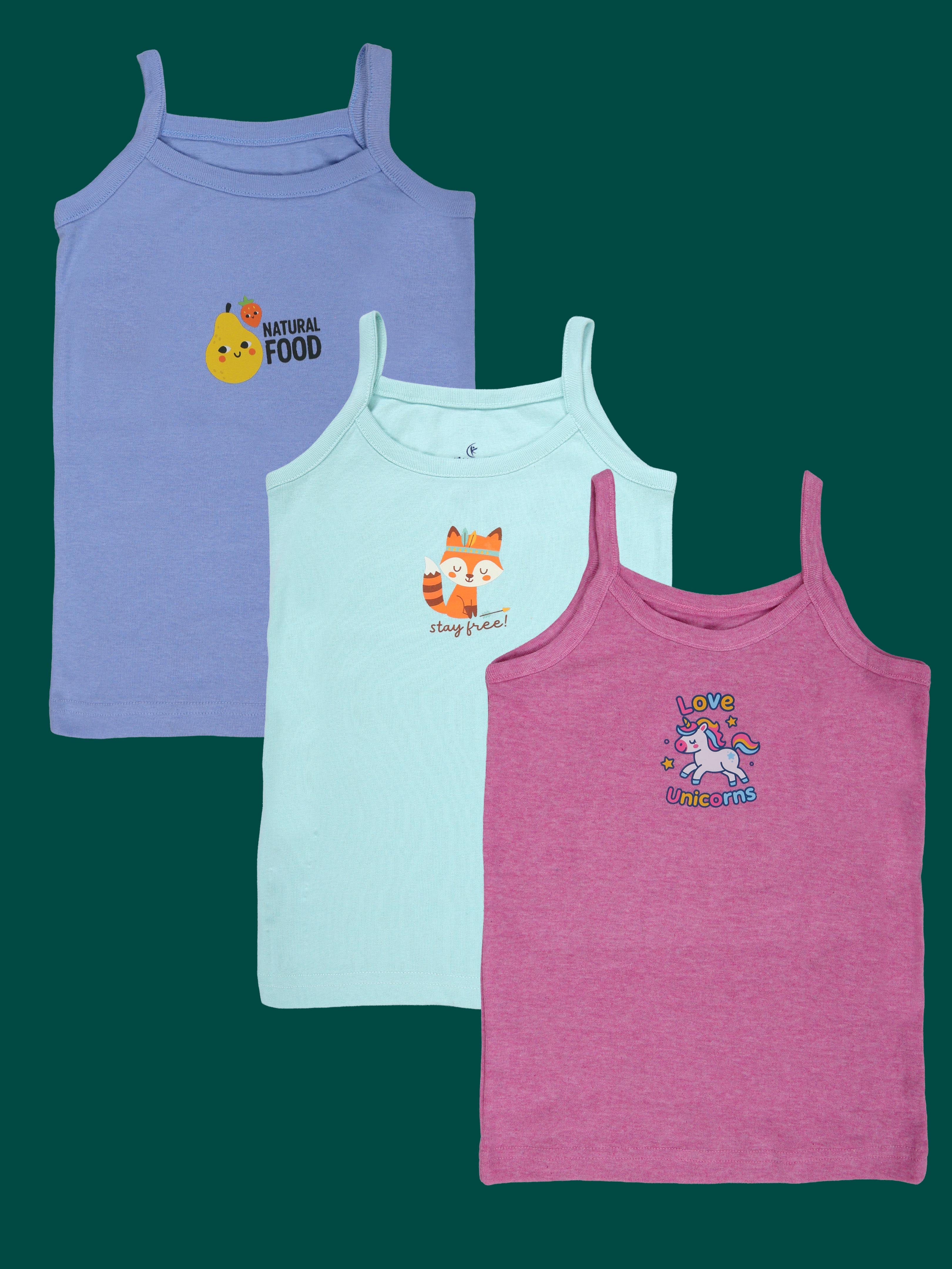 Kiddopanti Girls 100% Cotton Printed Camisoles Slips Pack of 3