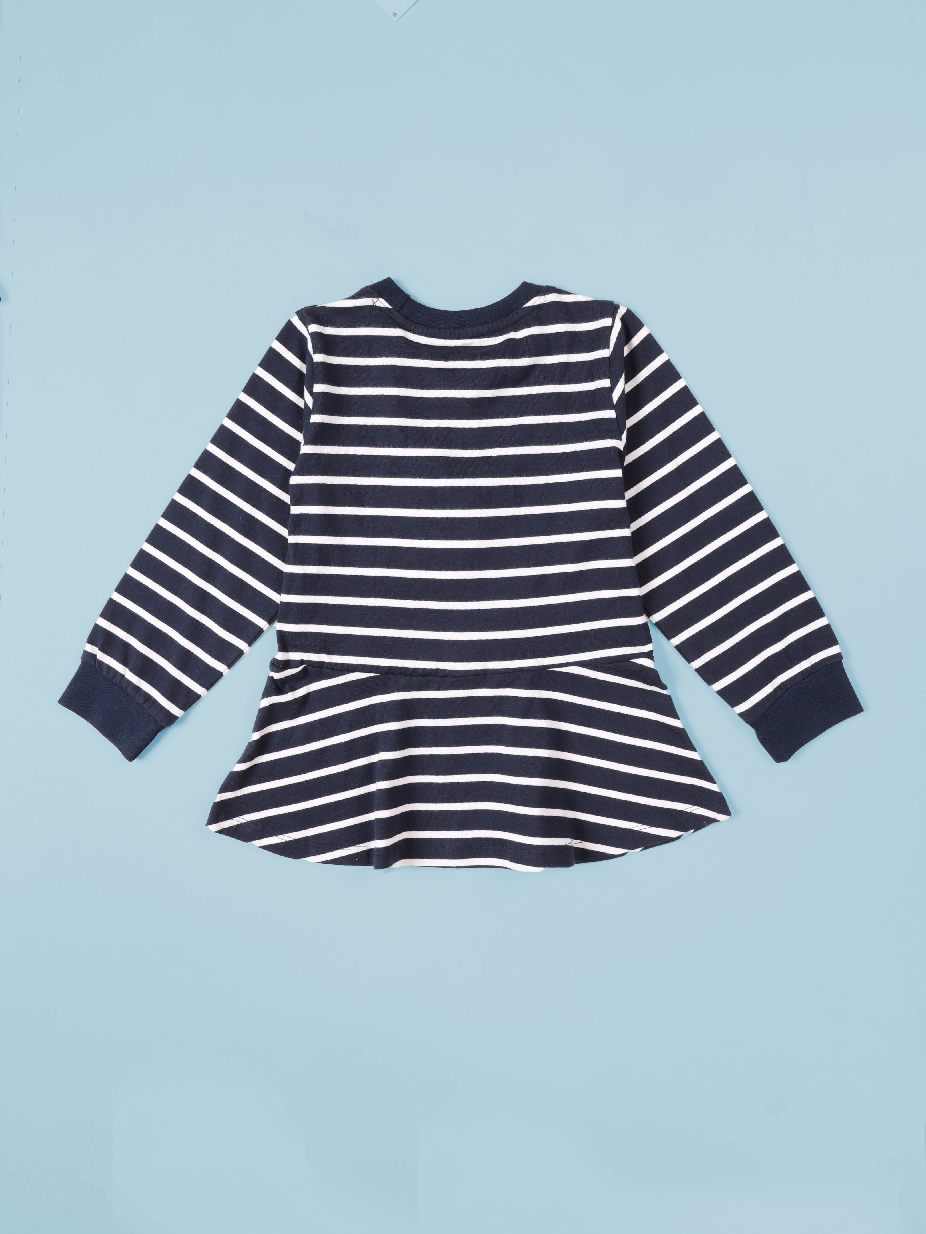 Kiddopanti brings together timeless stripes and playful details in this chic combo set for girls. Designed for moms who love versatile fashion that balances style, comfort, and everyday wearability, this duo is perfect for school, outings, or special occasions. The white and navy striped top offers a classic fit-and-flare silhouette with a twirl-friendly hem, ensuring your little one looks effortlessly stylish whether sheβs at a playdate or a family gathering. Paired with the black embroidered jeggings, detailed with cute bow and heart patches, the outfit combines nautical-inspired elegance with a playful twist. Together, this combo gives her endless styling possibilities β pair as a set or mix-and-match for multiple looks.