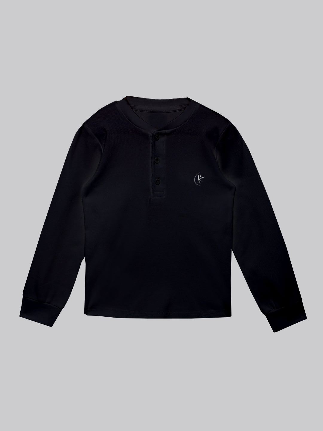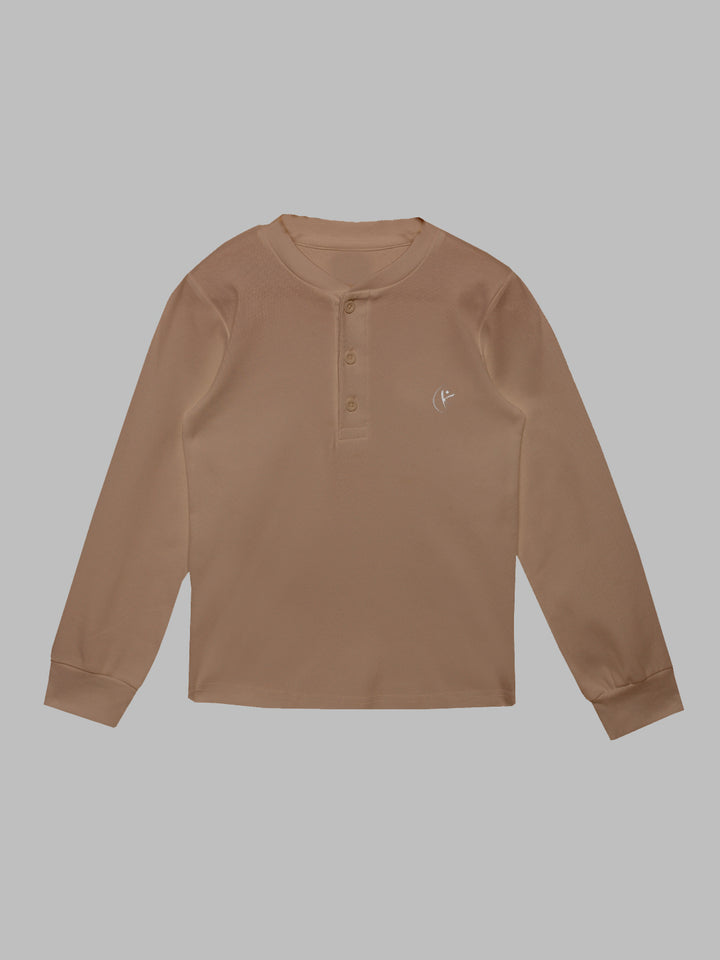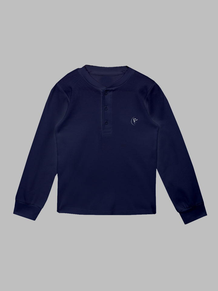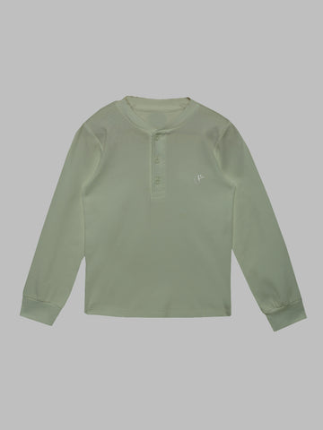 Kiddopanti brings to you the latest fashion clothes for your smart dressing young ones. These Henley Neck Solid Colour Full Sleeve Tee in Rib fabric is an ideal selection for your style icon this season.