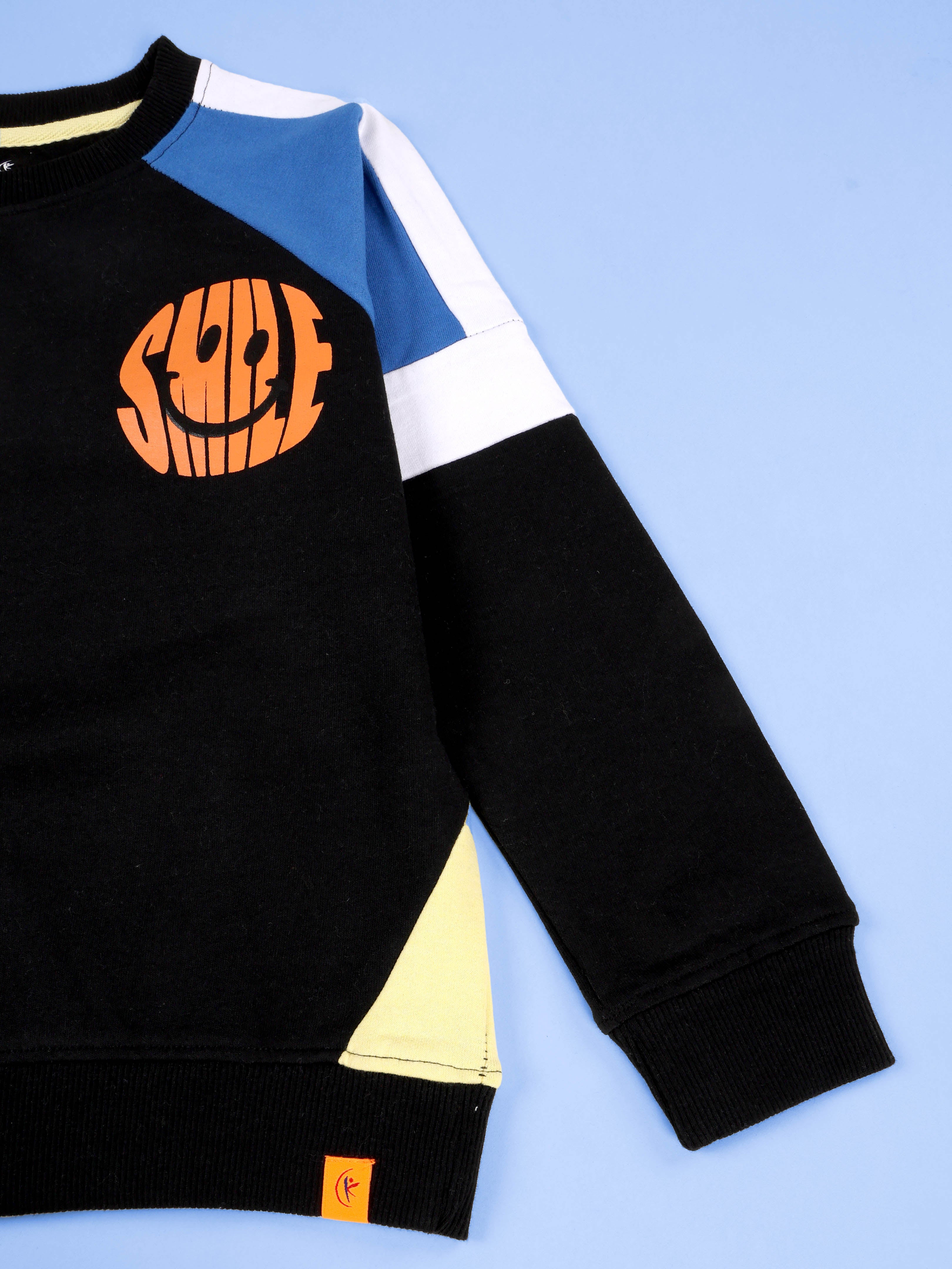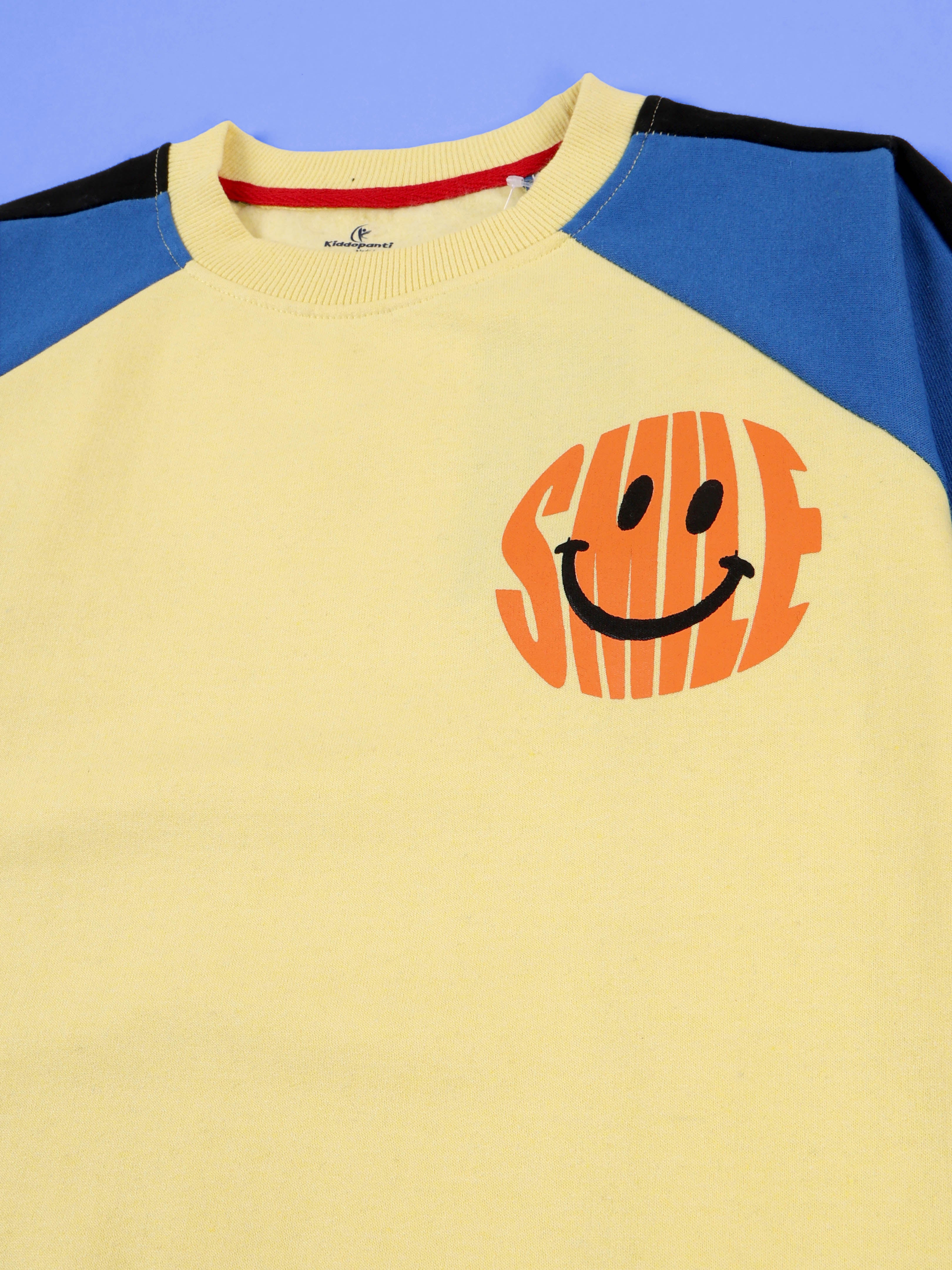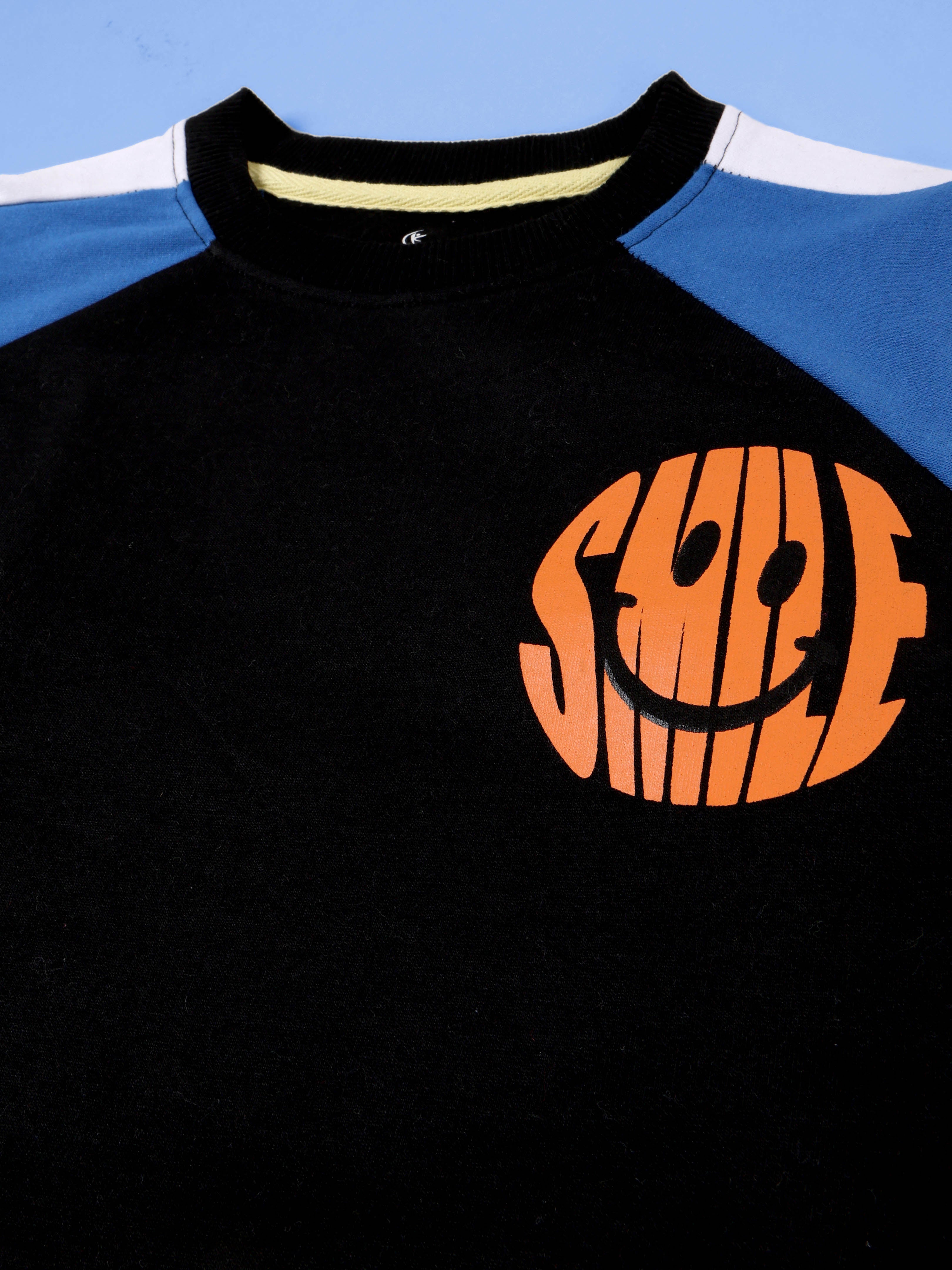 Boys Cut and Sew Smiley Print Round Neck Sweatshirt