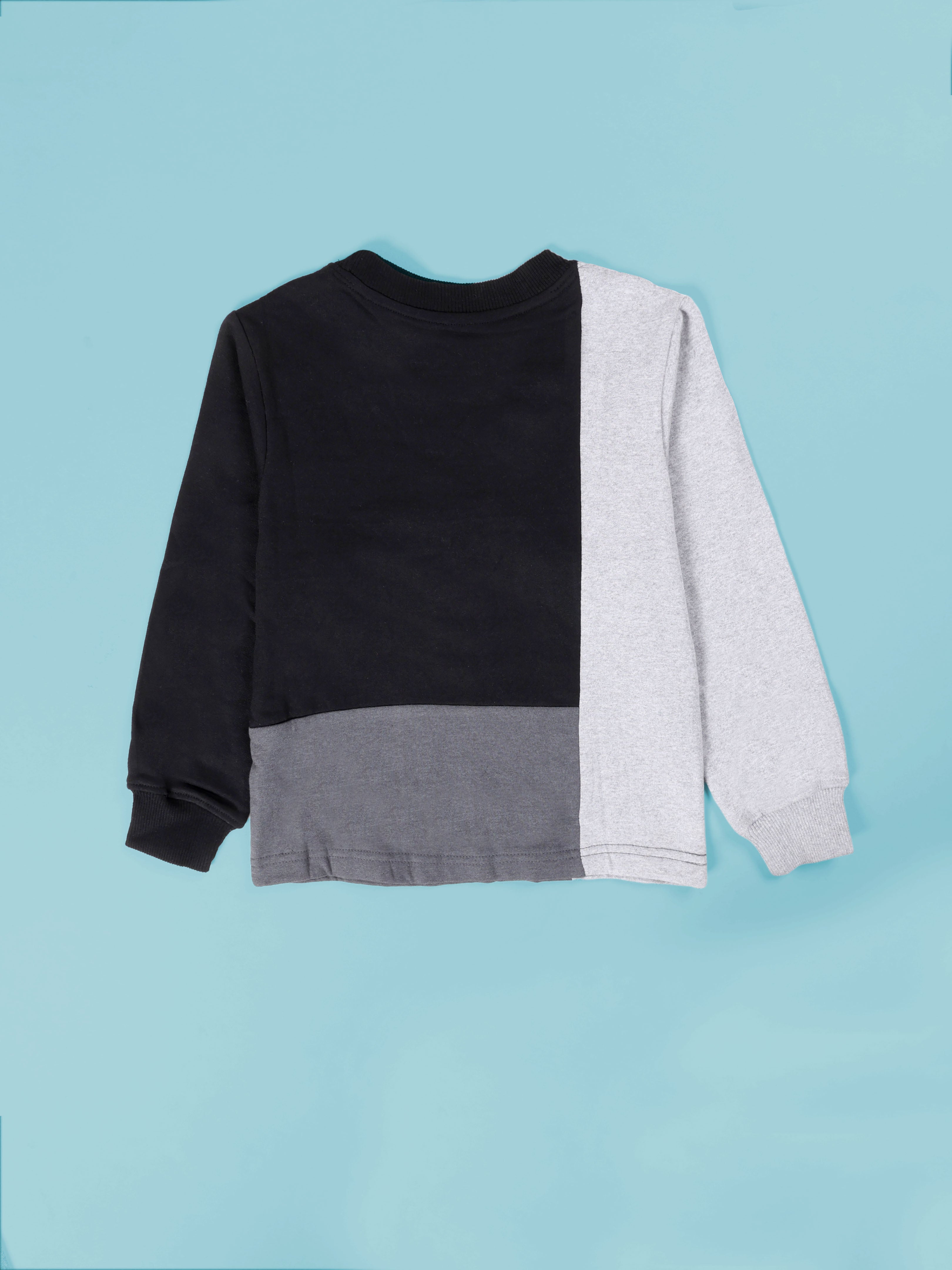 Fuel your little explorer’s imagination with this Kiddopanti Space-Themed Colourblock Sweatshirt. Designed with a fun astronaut graphic, planet artwork, and a playful “Space Out” patch, this sweatshirt brings together comfort and cosmic style. The modern colourblock pattern adds a sporty edge, making it perfect for everyday winter wear. Crafted from soft fleece fabric, this sweatshirt provides warmth without compromising on comfort. The ribbed neckline, cuffs, and hem ensure a snug fit that holds its shape, while the full-sleeve crew neck design makes it ideal for school, playtime, or casual outings.