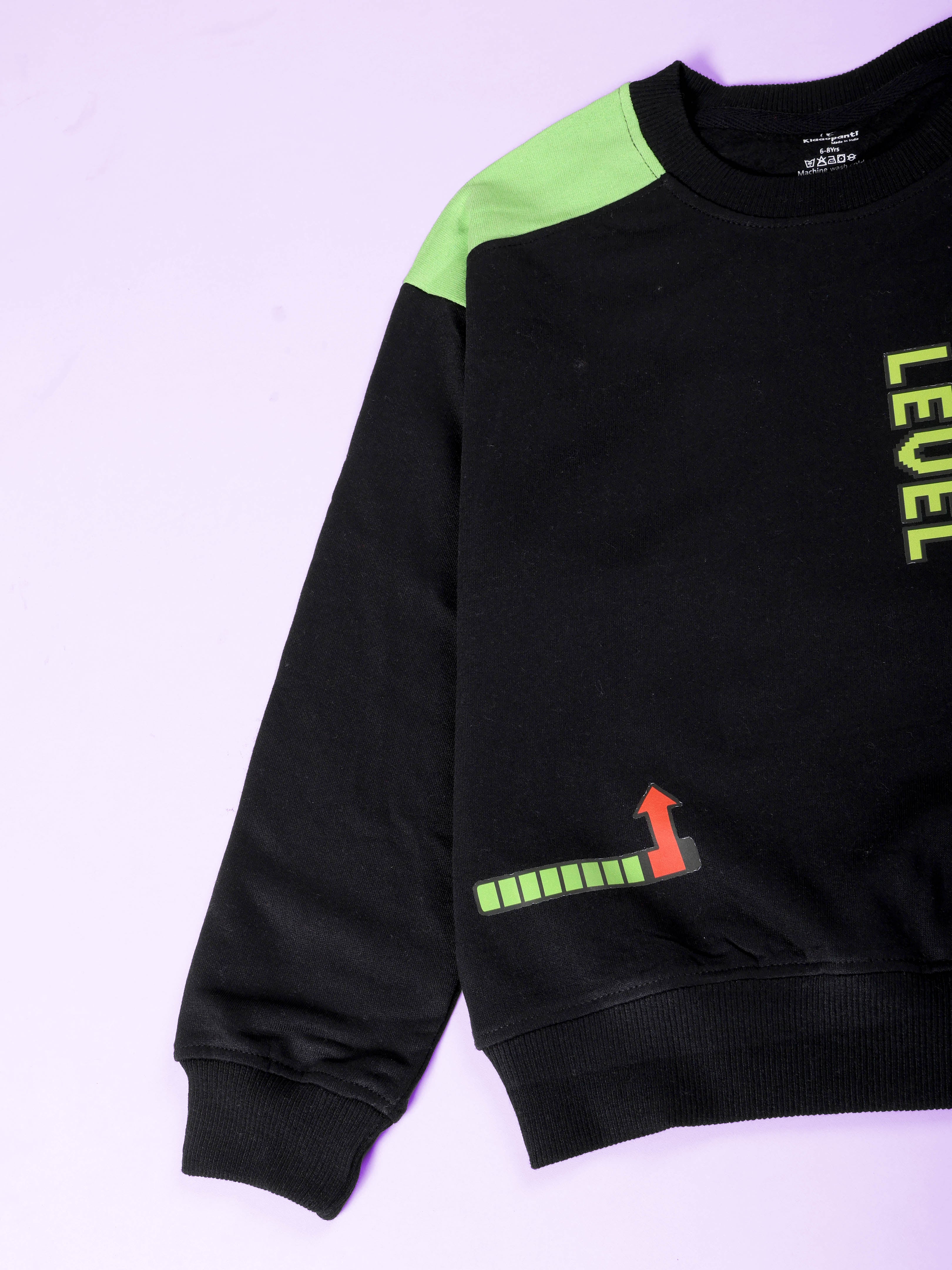 Boys Cotton Fleece Full Sleeves Drop Shoulder Printed Sweatshirts With Front Pocket