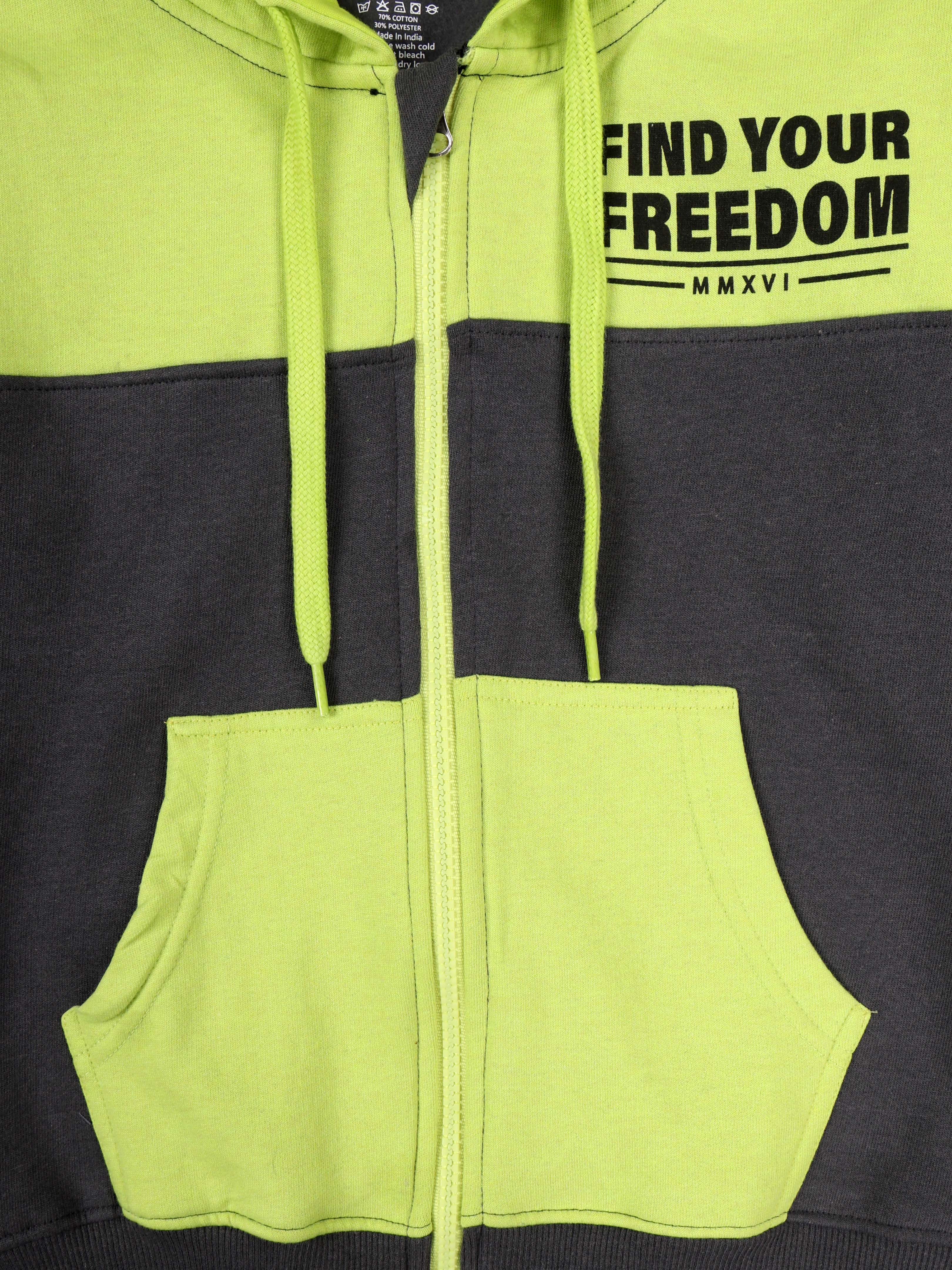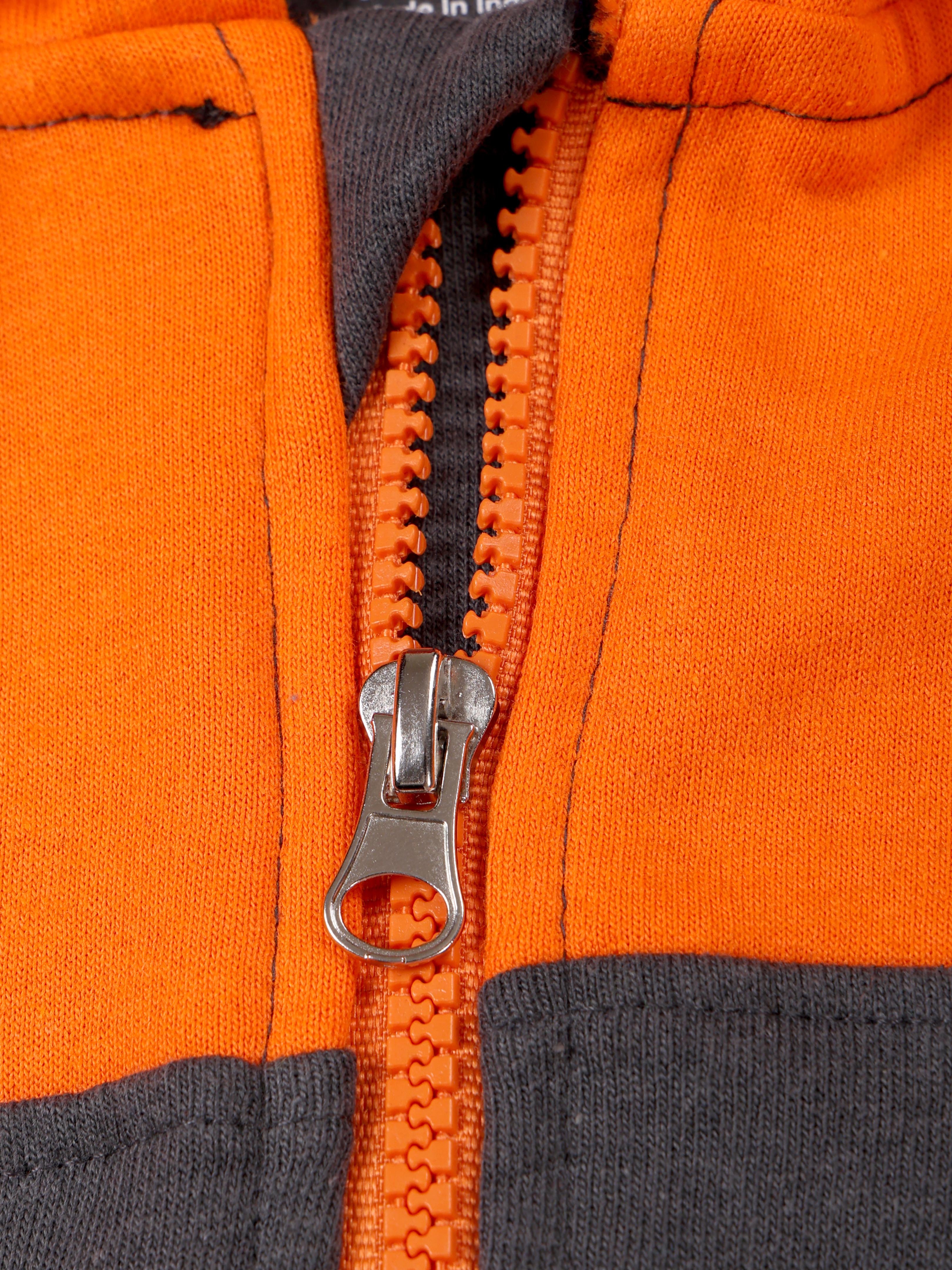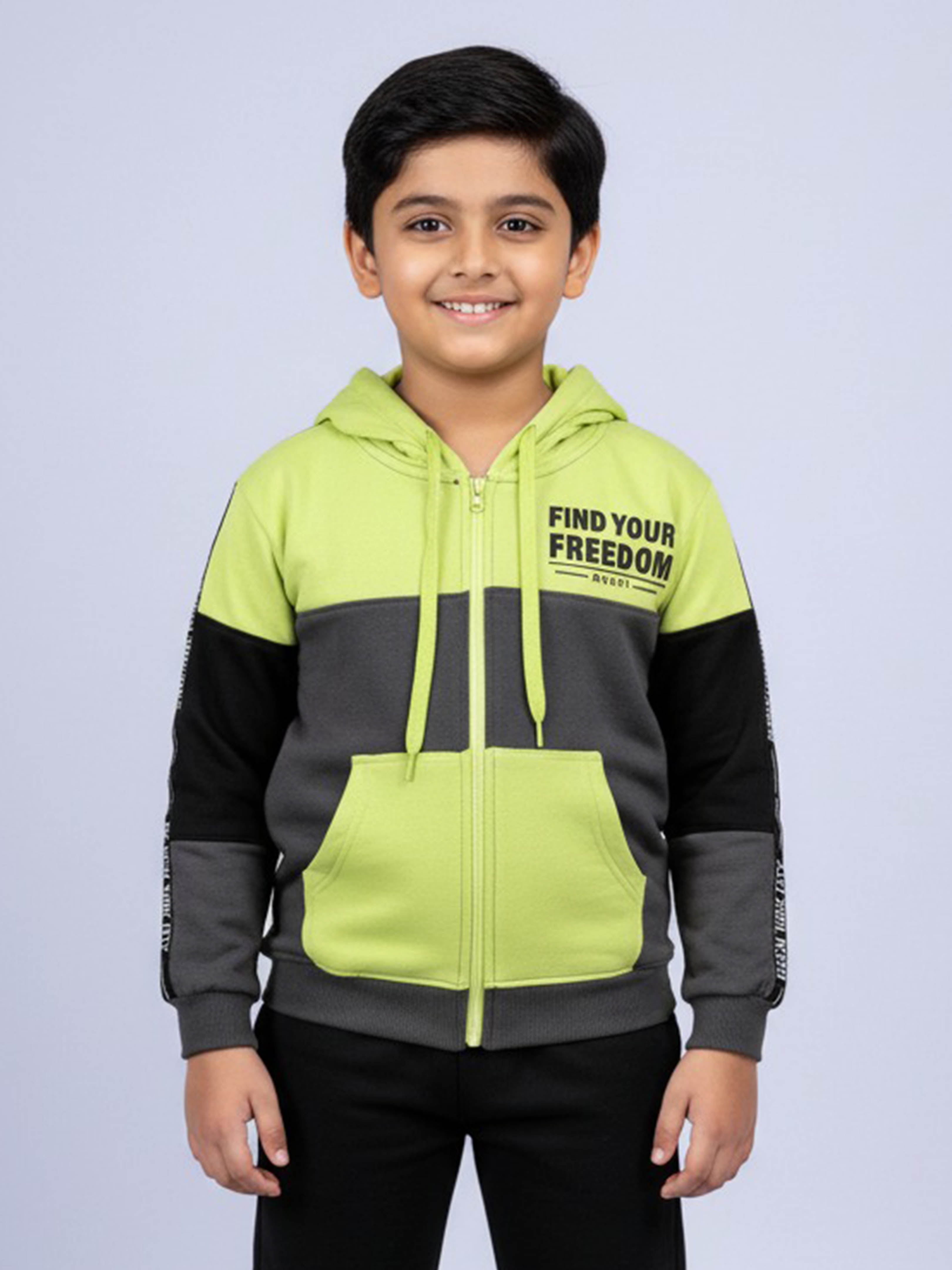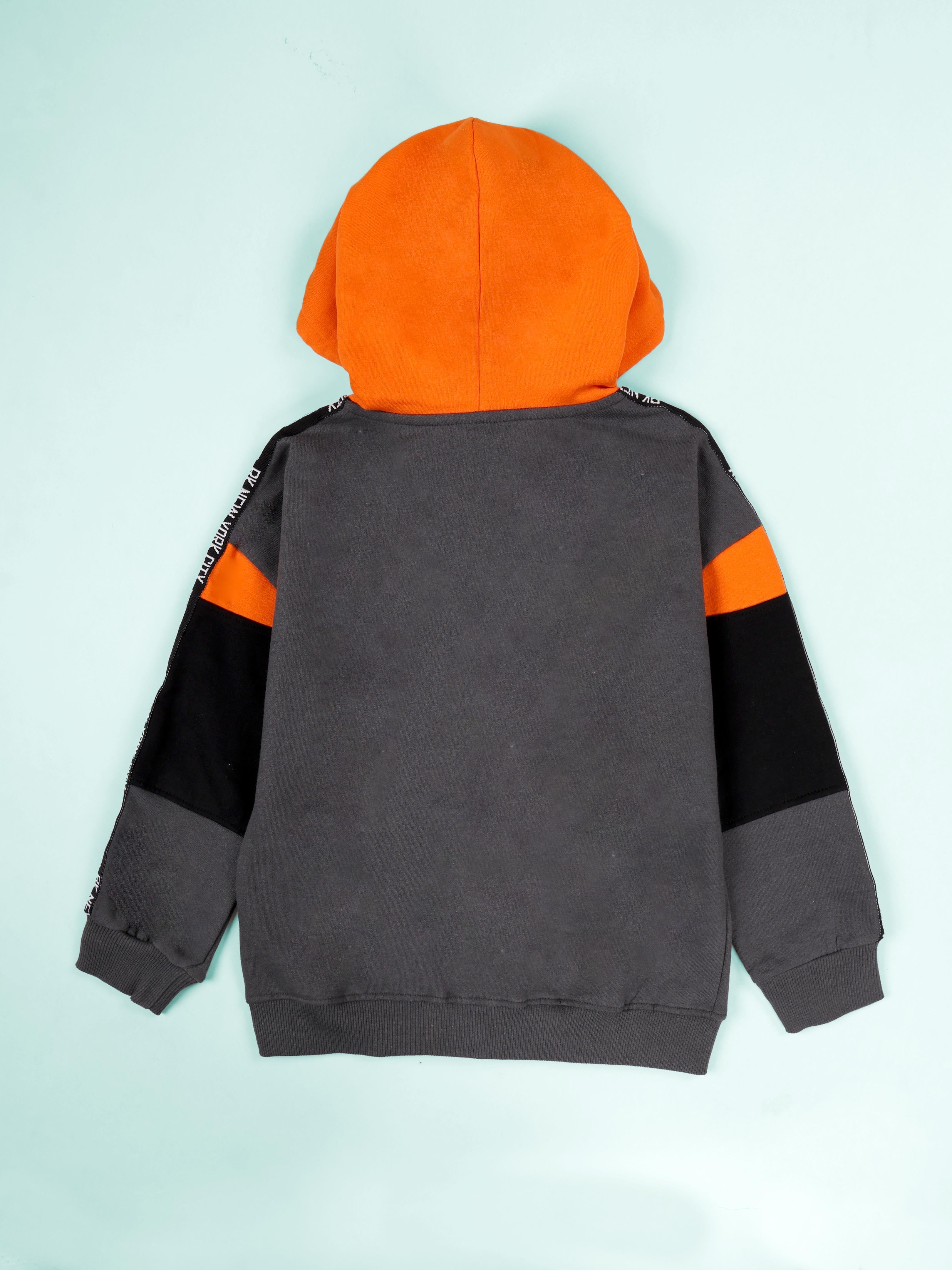 Unleash your little rebel’s style with the bold and energetic "Find Your Freedom" hoodie from Kiddopanti. Designed in an eye-catching colorblock pattern combining vibrant orange, cool grey, and classic black, this hoodie is a perfect blend of statement-making fashion and everyday comfort. The front features a motivational chest print that reads “Find Your Freedom,” encouraging self-expression and confidence. Stylish branded taping on the sleeves adds a sporty, trendy edge, making it a standout piece for school days, weekend outings, or casual play. Crafted in a soft fleece knit, the hoodie ensures all-day warmth and coziness. With its full front zipper, practical kangaroo pockets, and ribbed cuffs and hem, it’s both functional and fashion-forward.