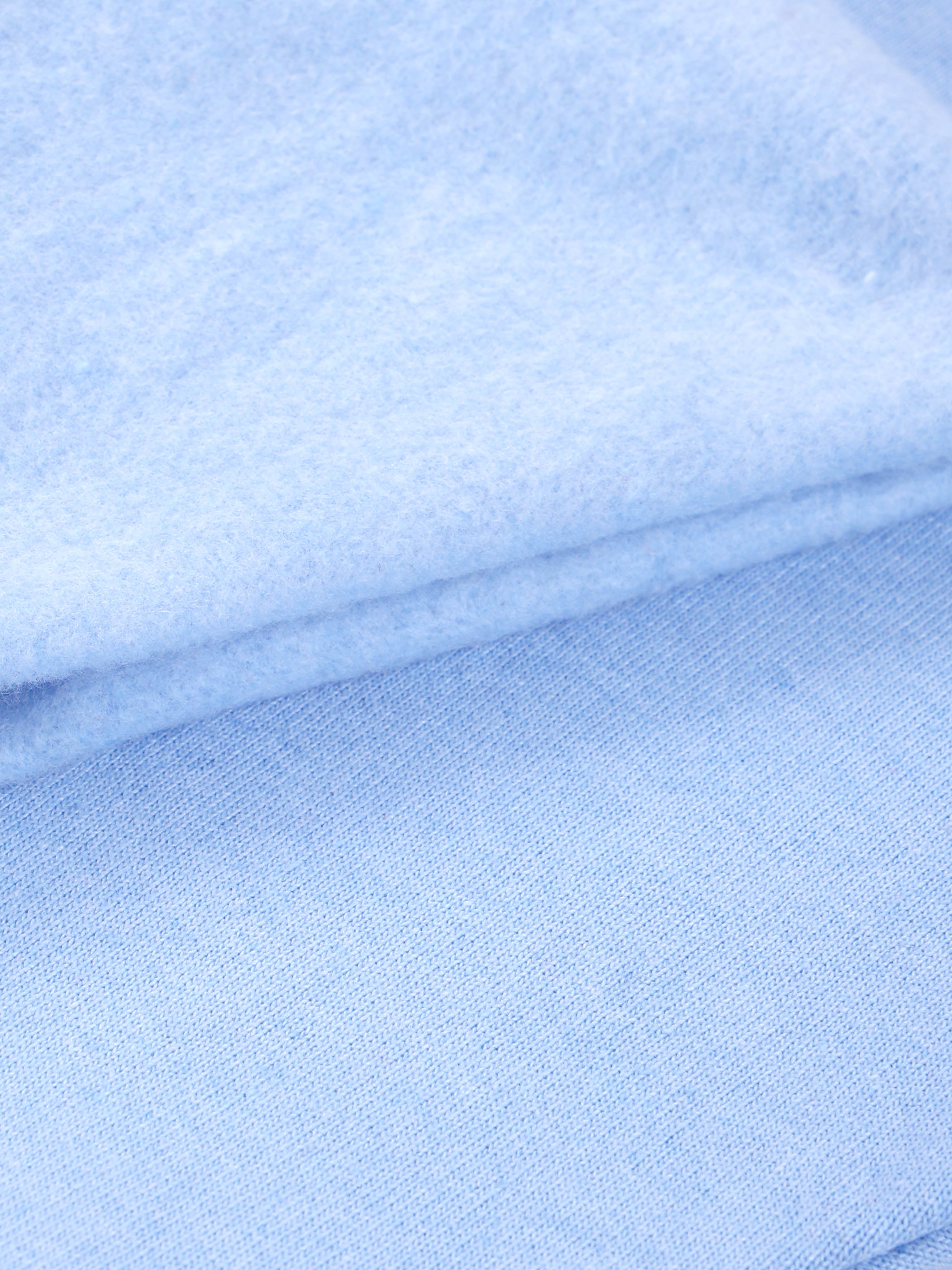 Cotton-poly brushed fleece fabric ensuring lightweight warmth with soft hand feel