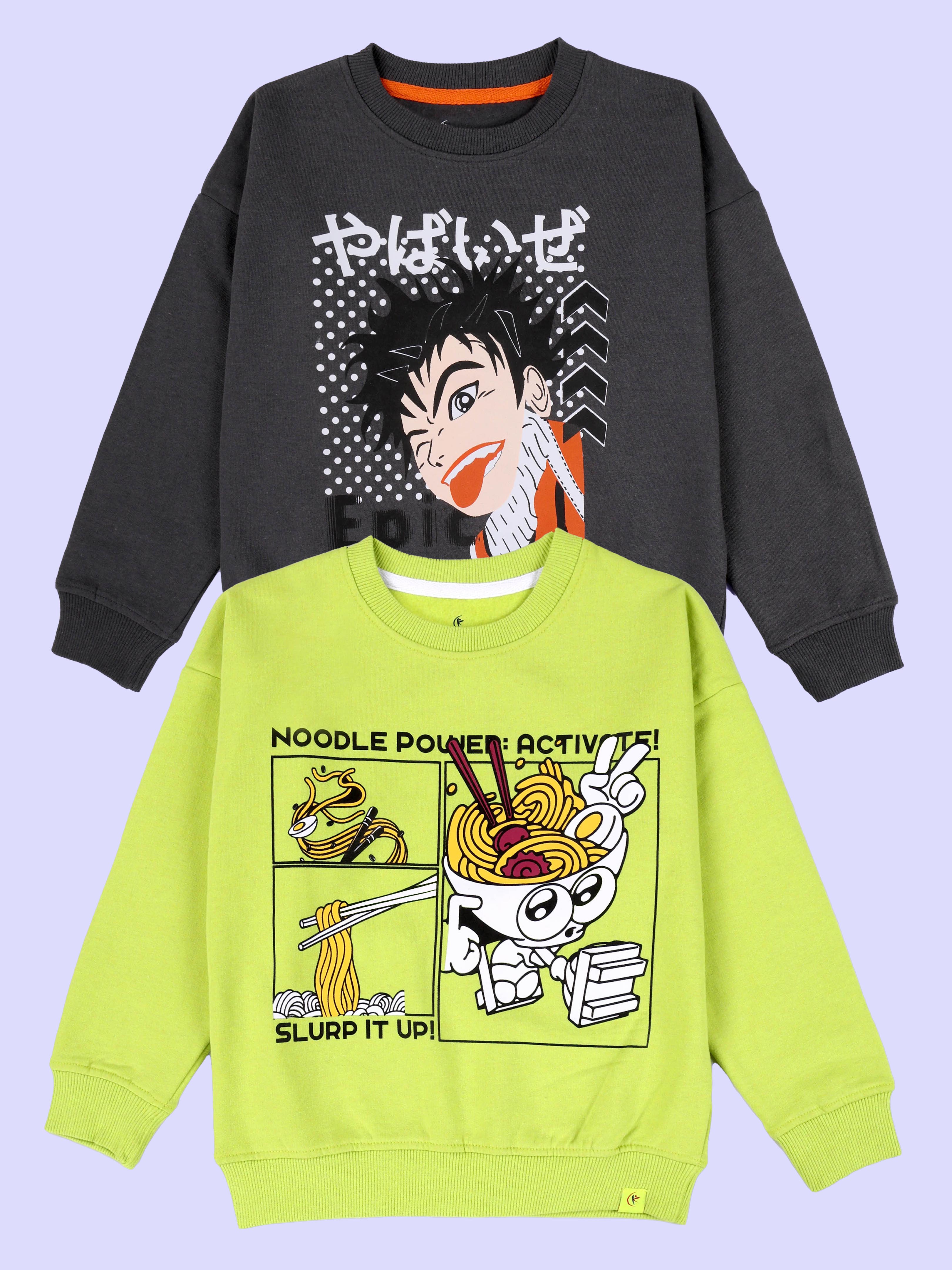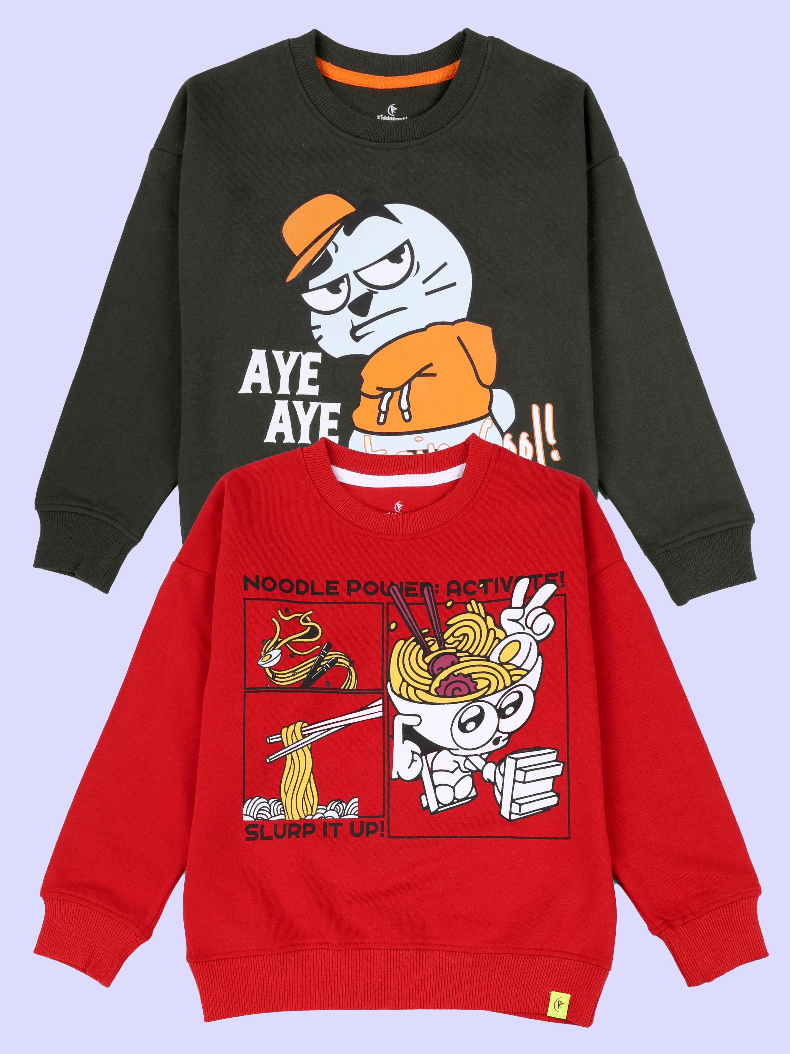 KiddoPanti Boys Cotton Fleece Printed Round Neck Full Sleeve Sweatshirt Pack of 2