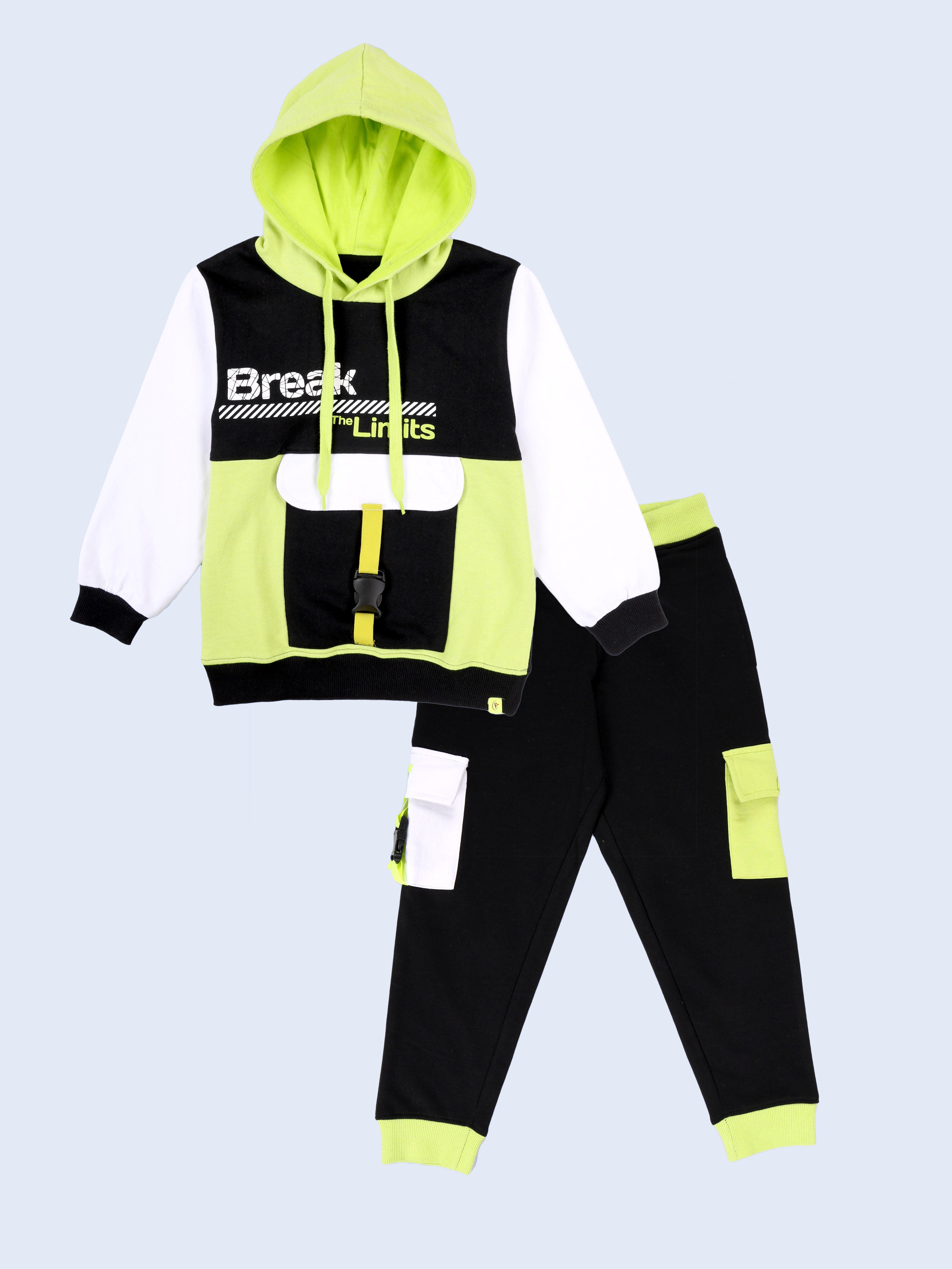 Kiddopanti Boys "Break Limits" Colorblock Hoodie with Buckle Pocket With Fleece Track Pant Set