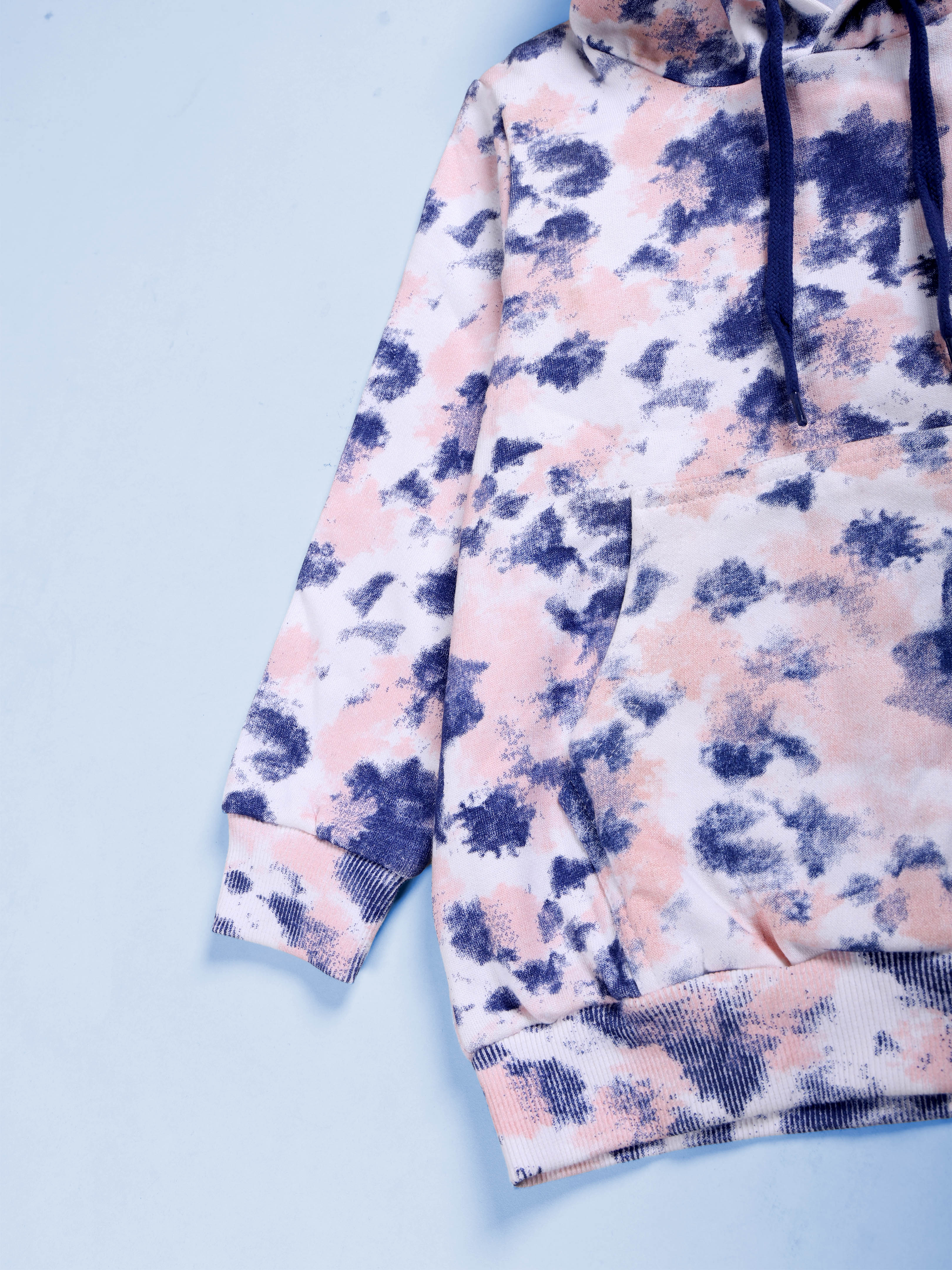 Boys Cotton Fleece Full Sleeves Tie & Dye Hooded Sweatshirt & Fleece Track Pant Set