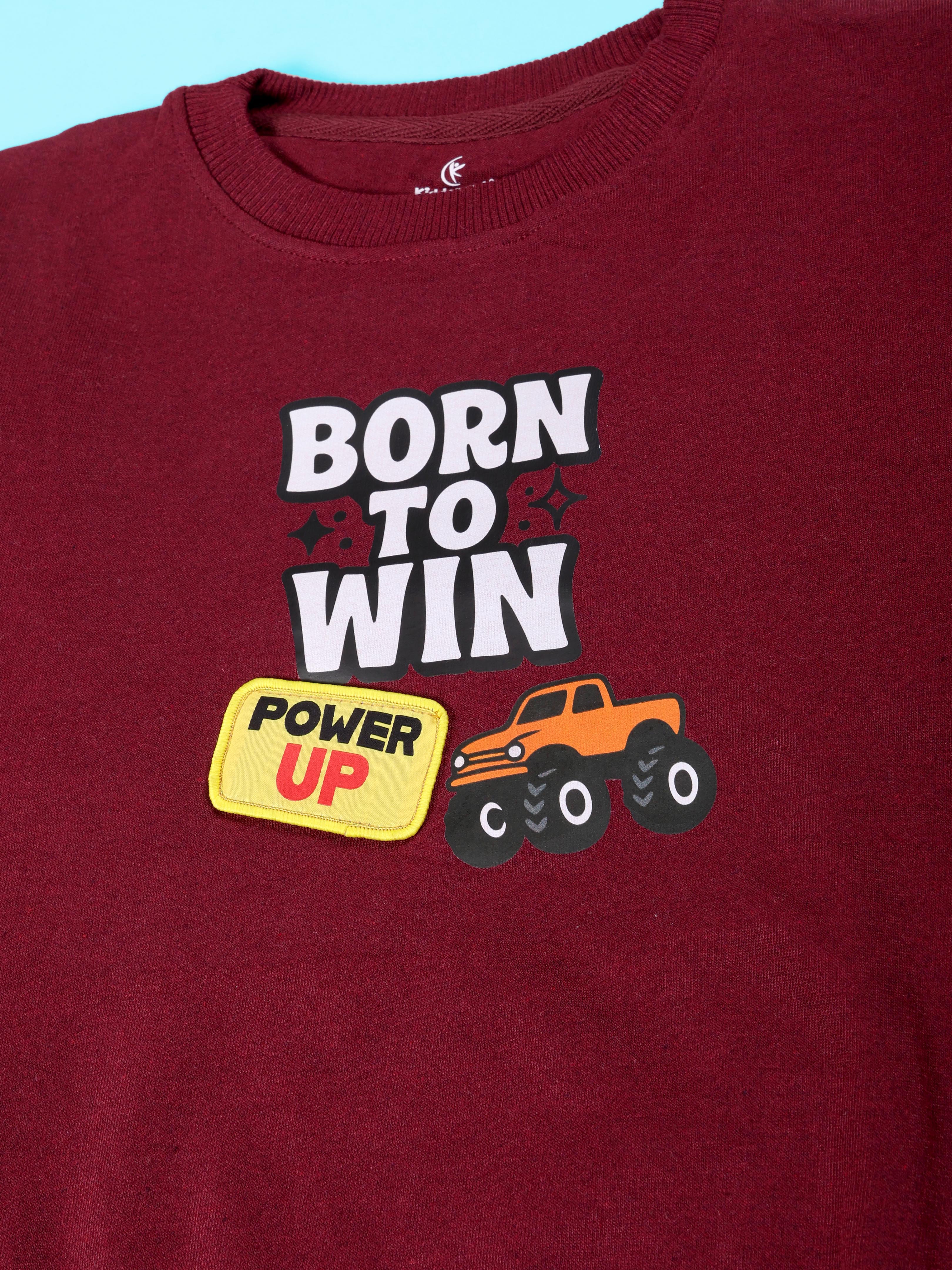 Let your little champ step out in confidence and comfort with this sporty “Born to Win” winter combo set from Kiddopanti. Designed for energetic kids who love bold styles and all-day ease, this coordinated set pairs a motivational graphic sweatshirt with classic solid fleece track pants—perfect for school, playtime, or casual winter outings. The maroon sweatshirt features a powerful “Born to Win” chest print, a playful Power Up patch, and a fun monster truck graphic that adds an action-packed vibe kids will love. The matching fleece track pant completes the look with a relaxed jogger fit, making this combo a go-to winter essential for active young ones.