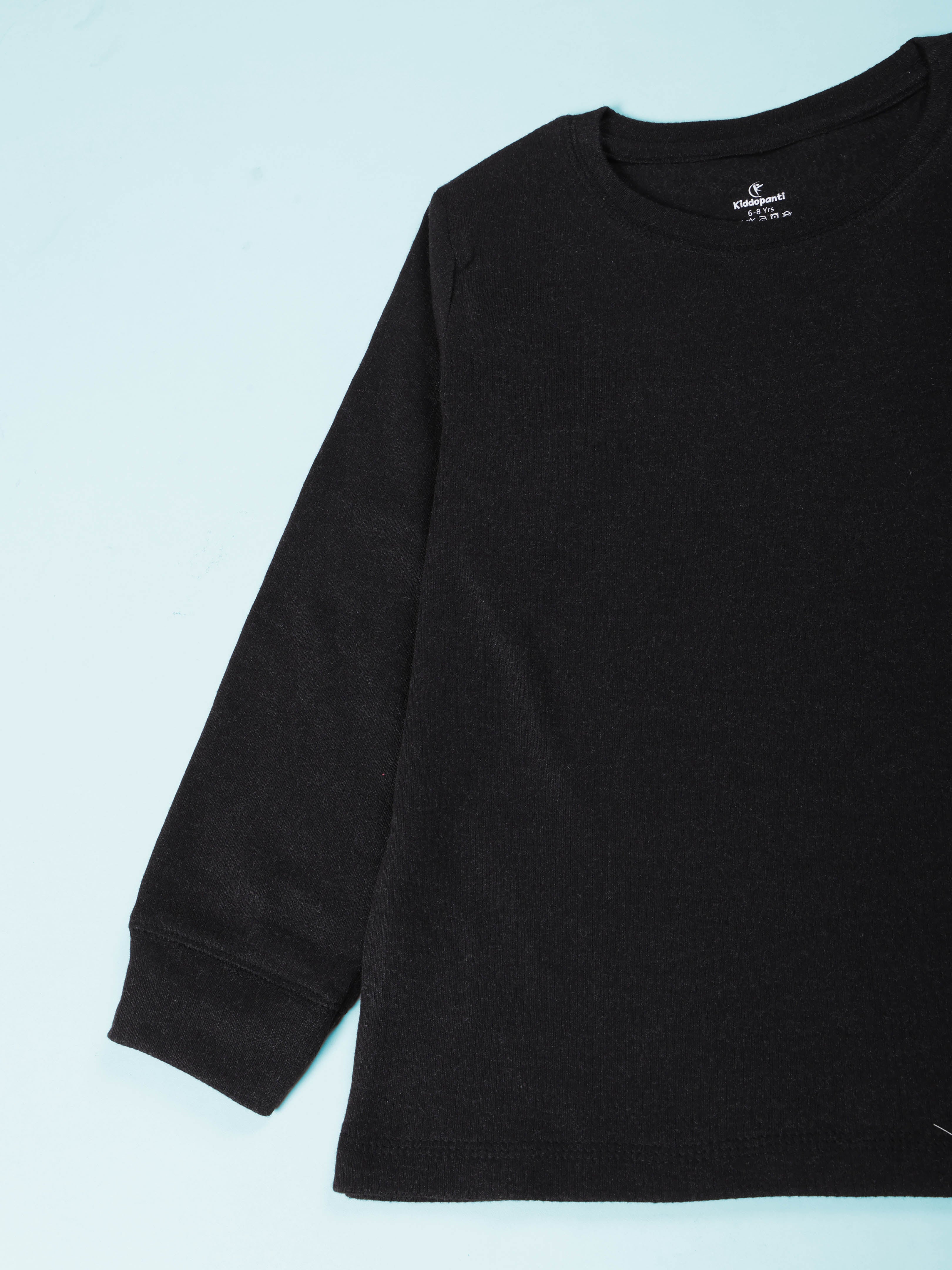Kiddopanti Unisex Cotton Knit Full Sleeves Solid Tee And Pant Thermal Set