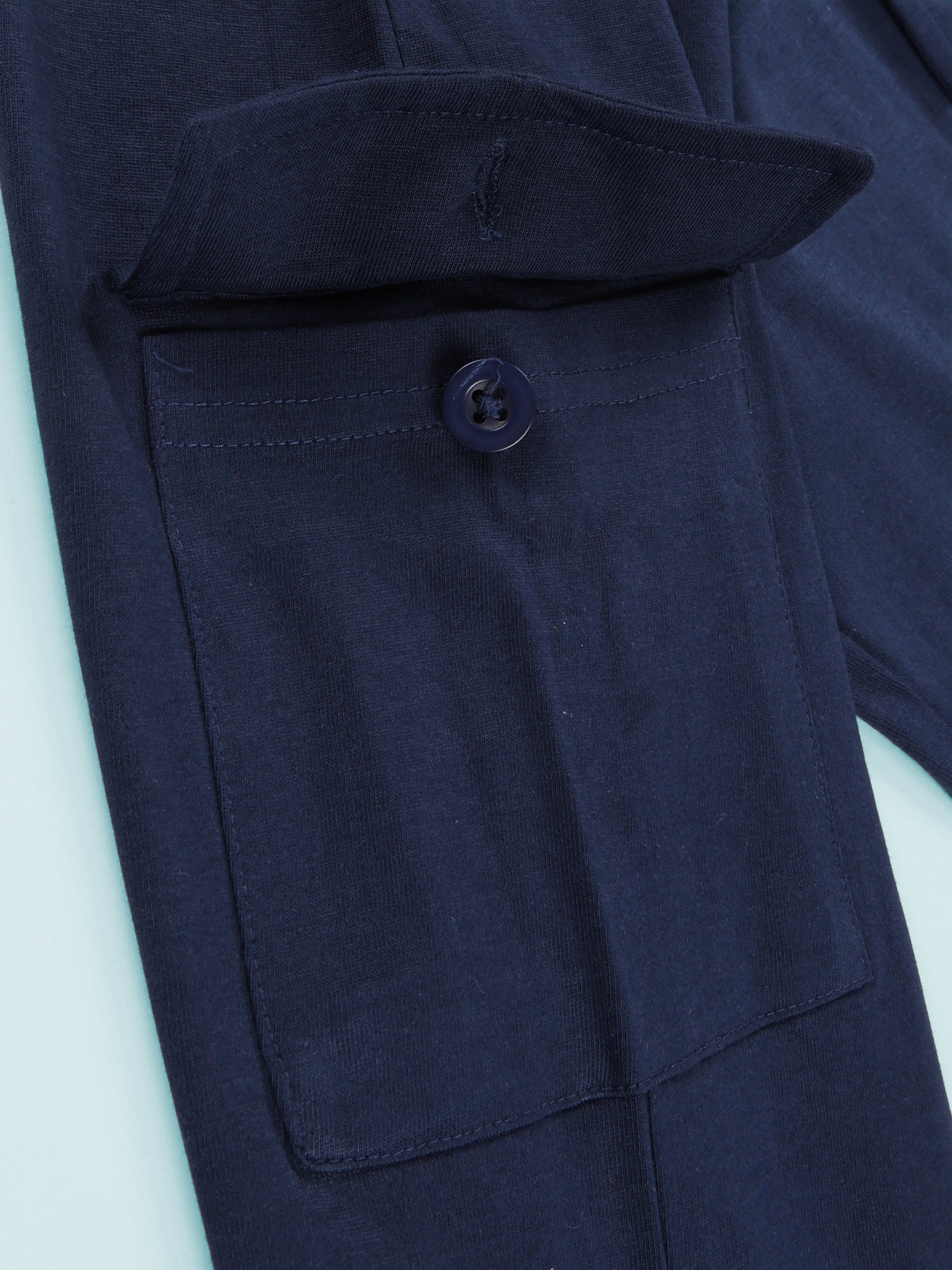 Give your boy the perfect balance of style, function, and freedom with these Kiddopanti cargo jogger pants Pack of 2. Tailored for comfort and movement, these joggers feature a relaxed fit with elasticated cuffs and waistband to ensure a snug yet flexible feel during playtime or downtime. The multiple utility-style cargo pockets β on both sides β add a cool, rugged vibe while giving him plenty of space to carry his essentials (or secret treasures). With their simple silhouette and timeless structure, these joggers easily pair with sweatshirts, tees, or hoodies for a look thatβs ready for anything.