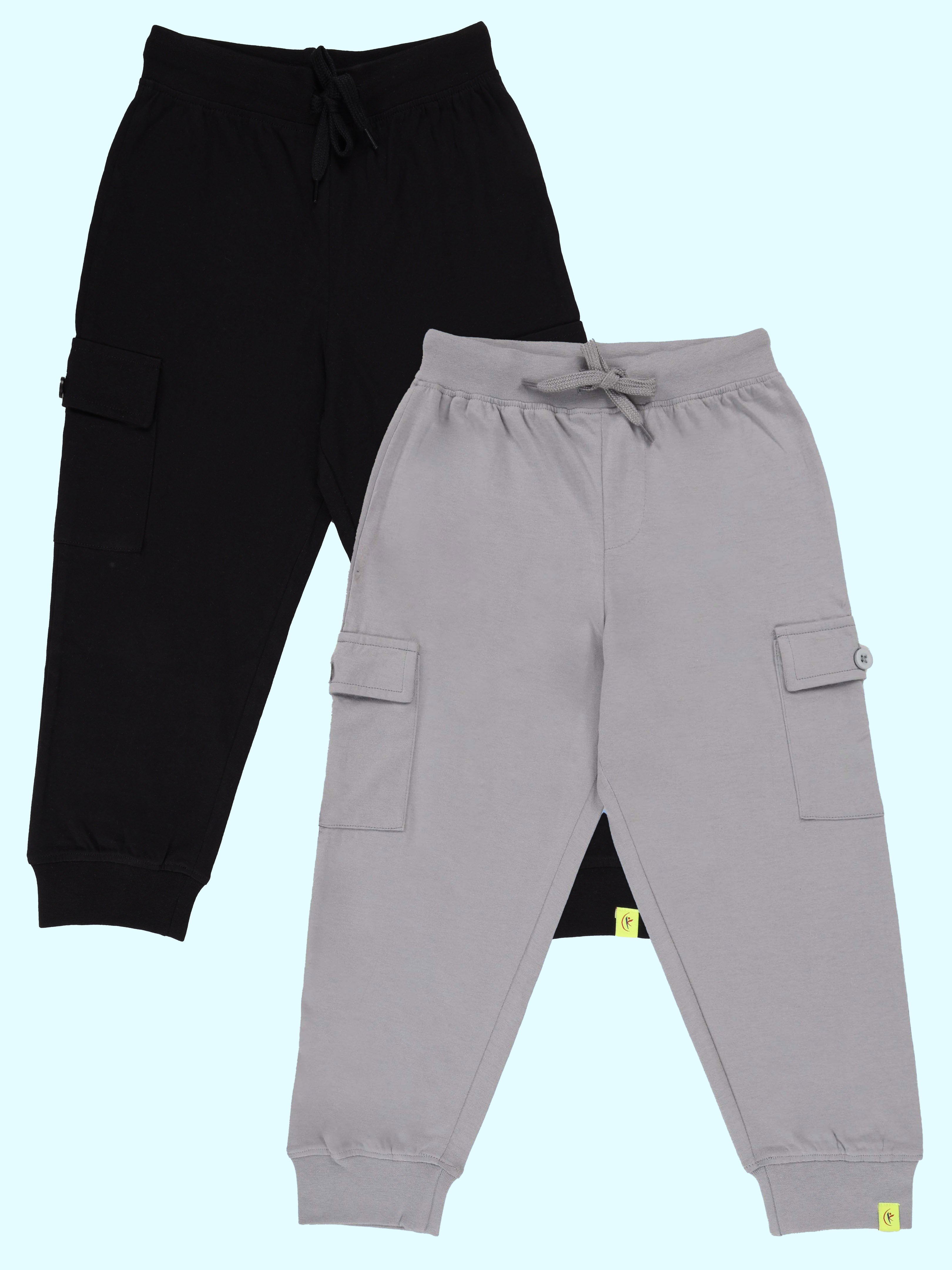 KiddoPanti Boys Cotton Knit Cargo Jogger Pants Pack of 2